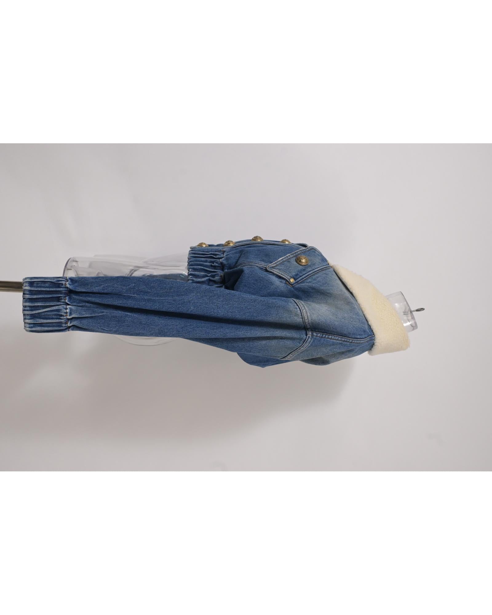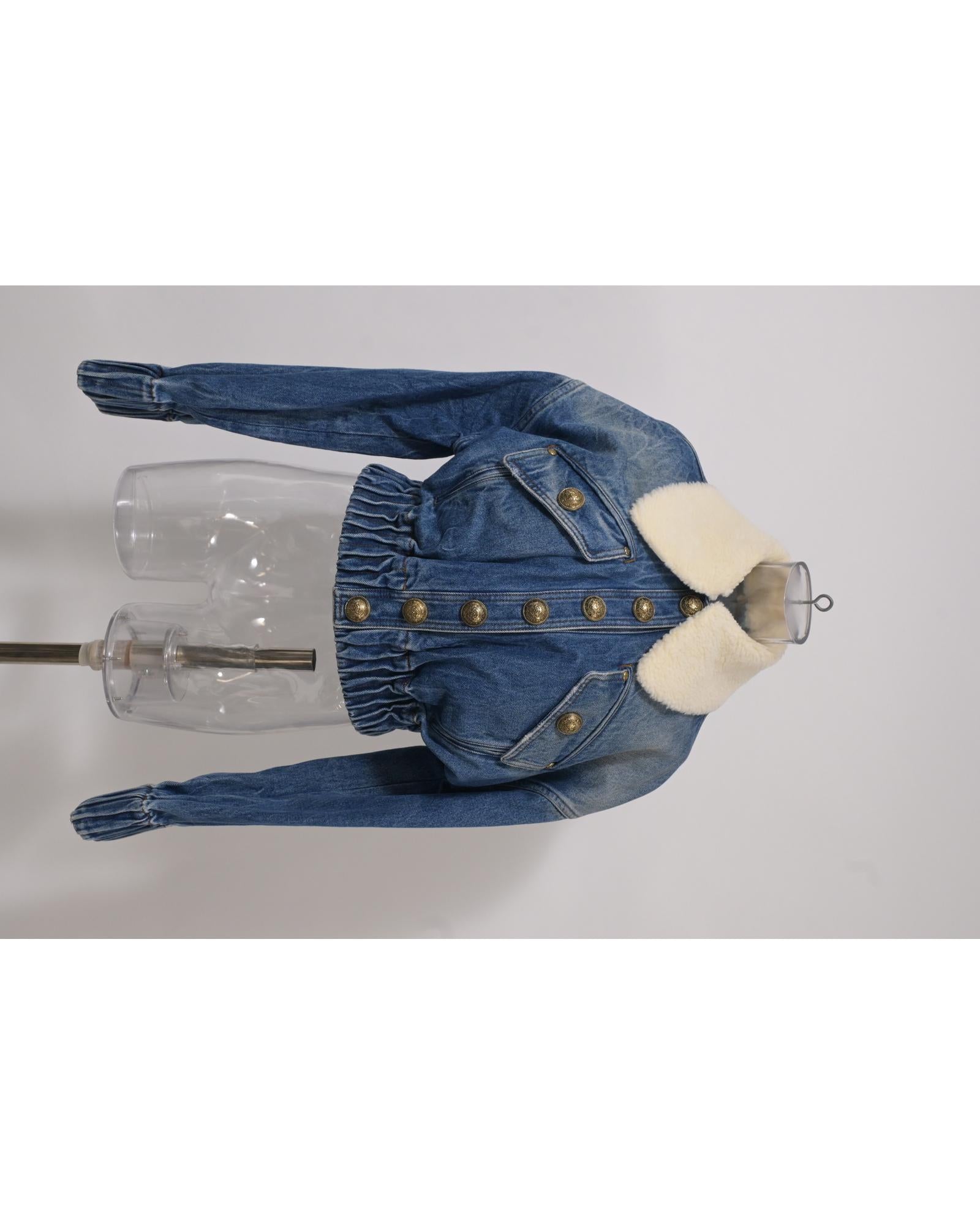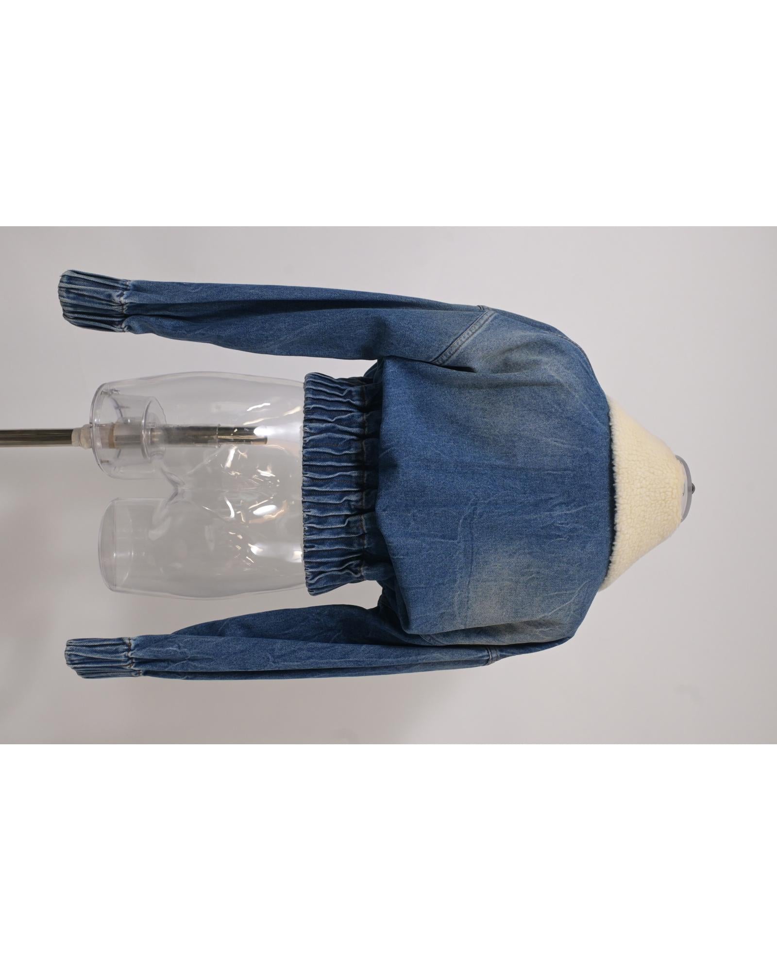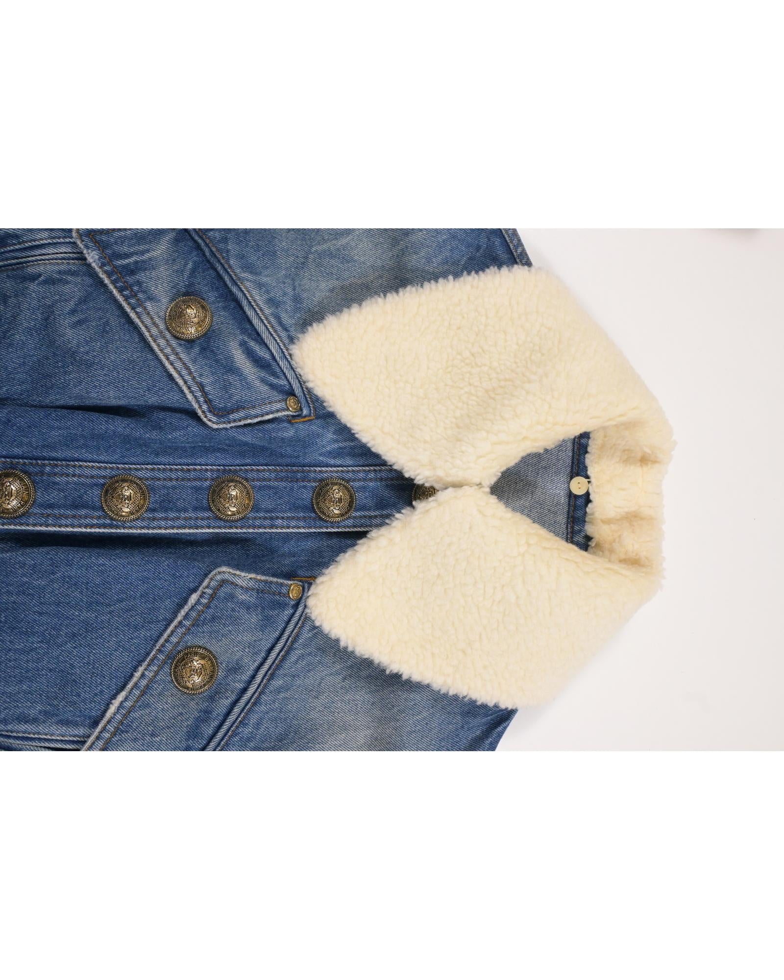 Pre-owned Cropped Denim Jacket with Sherpa Collar
