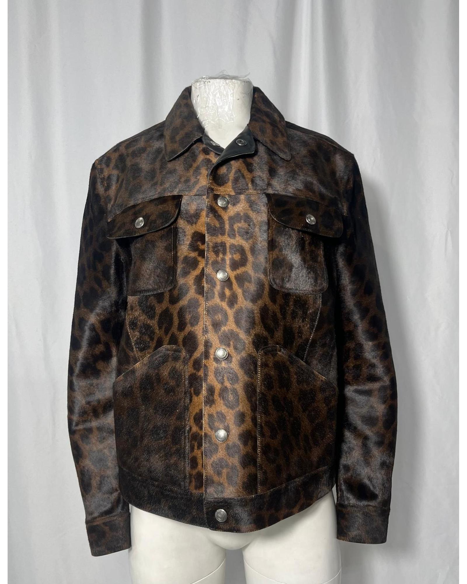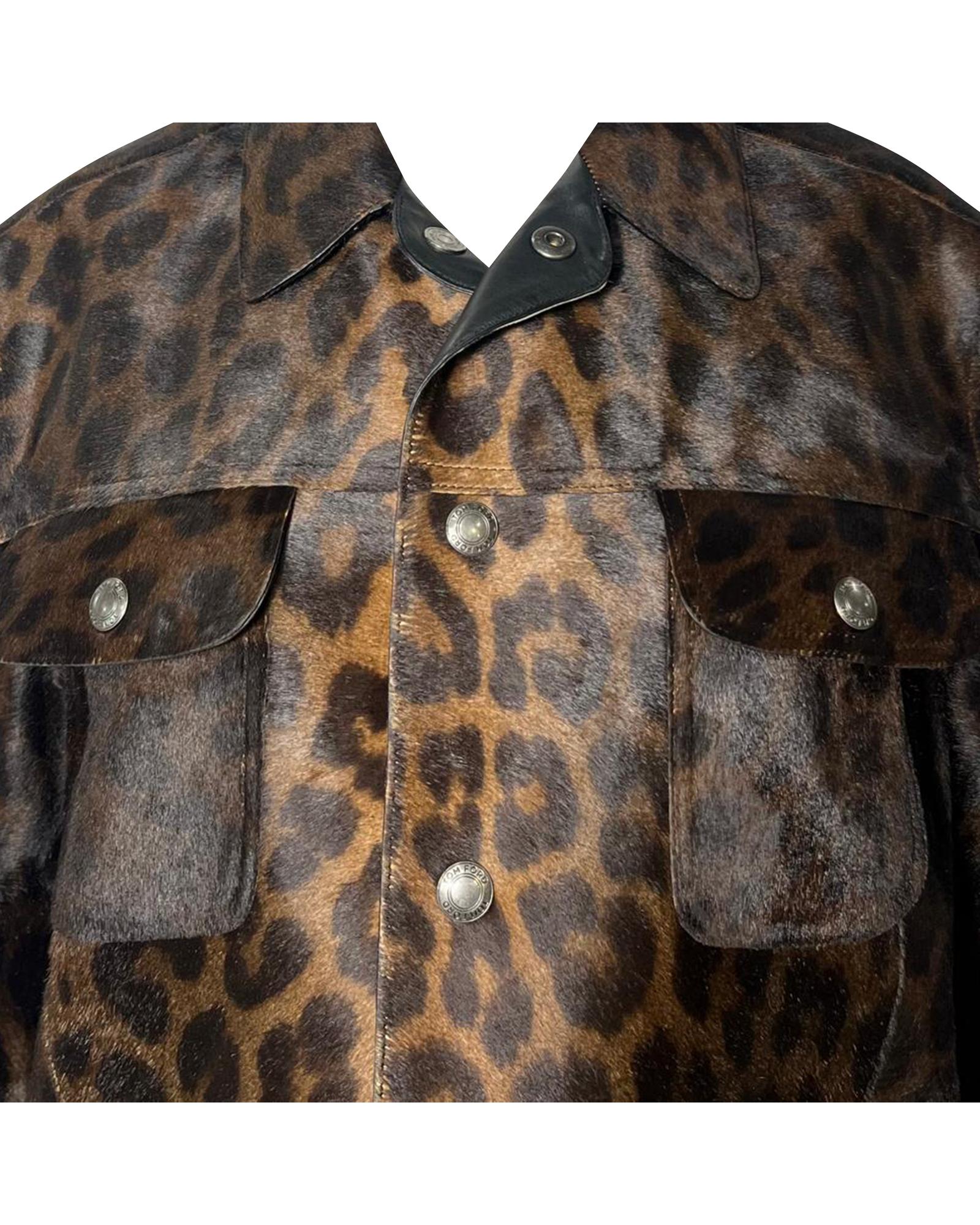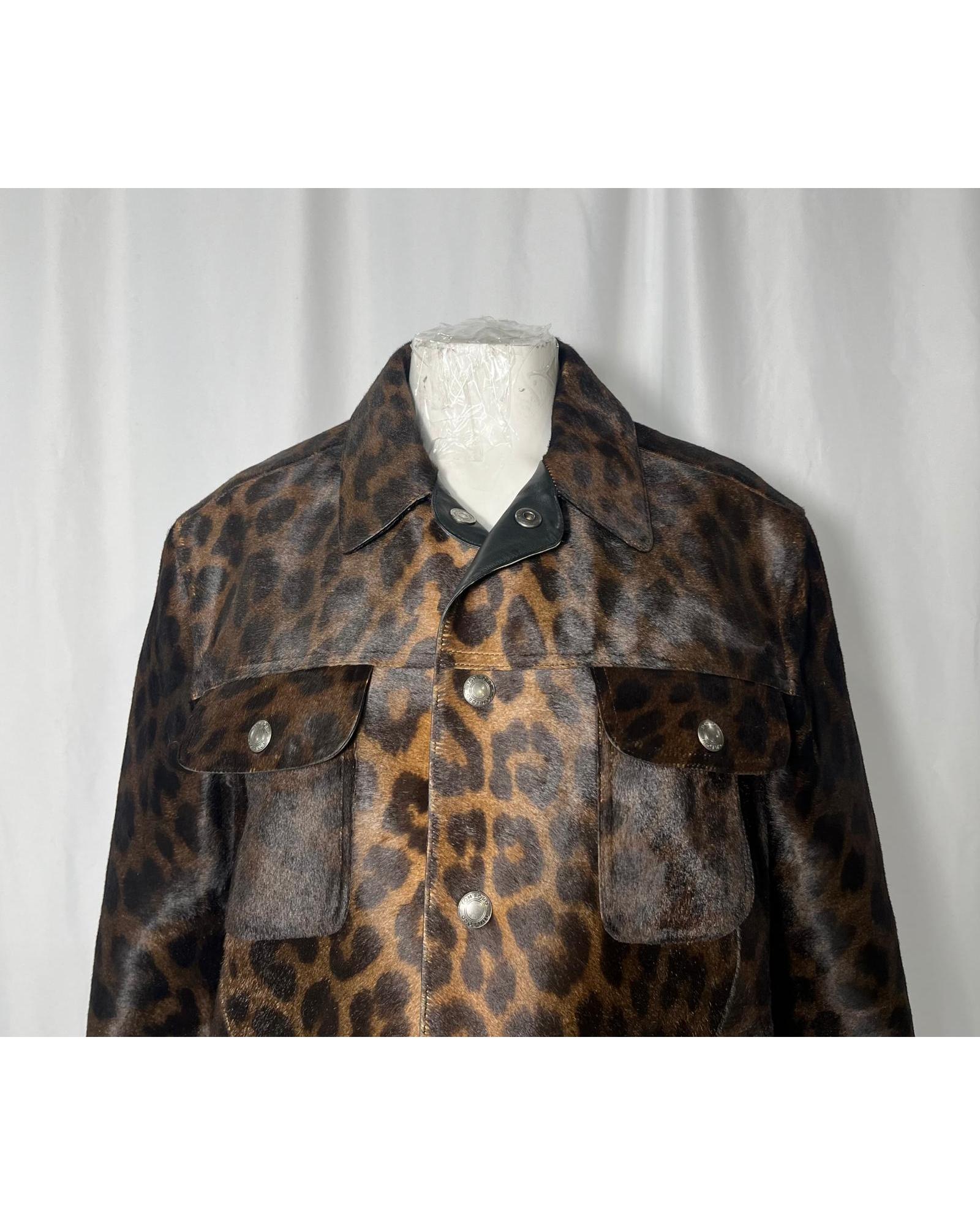 - Tom Ford Leopard Print Buttoned Jacket with Pockets in Brown Calf Hair