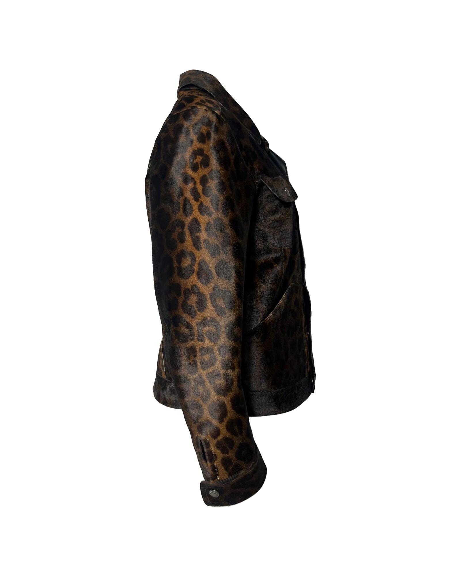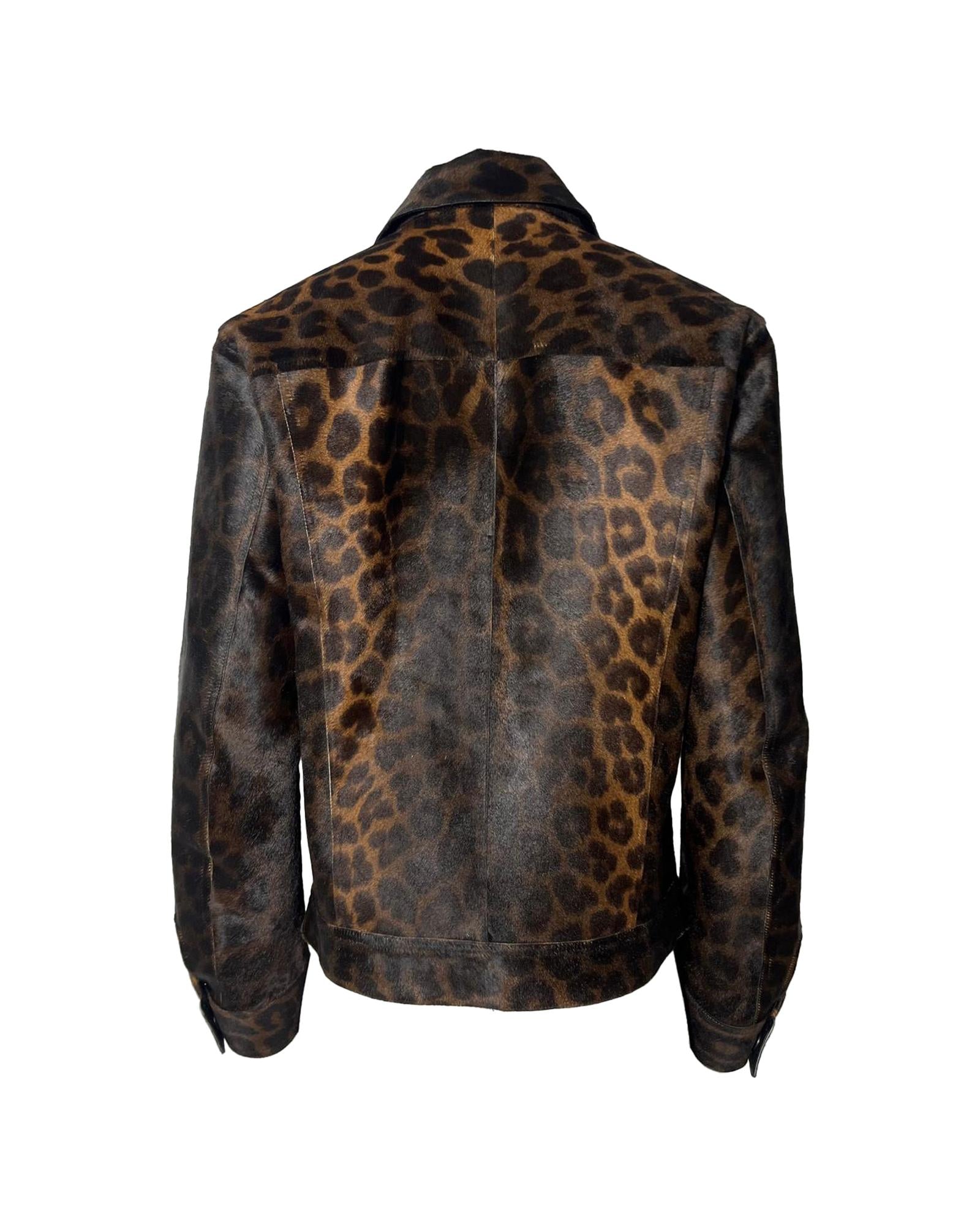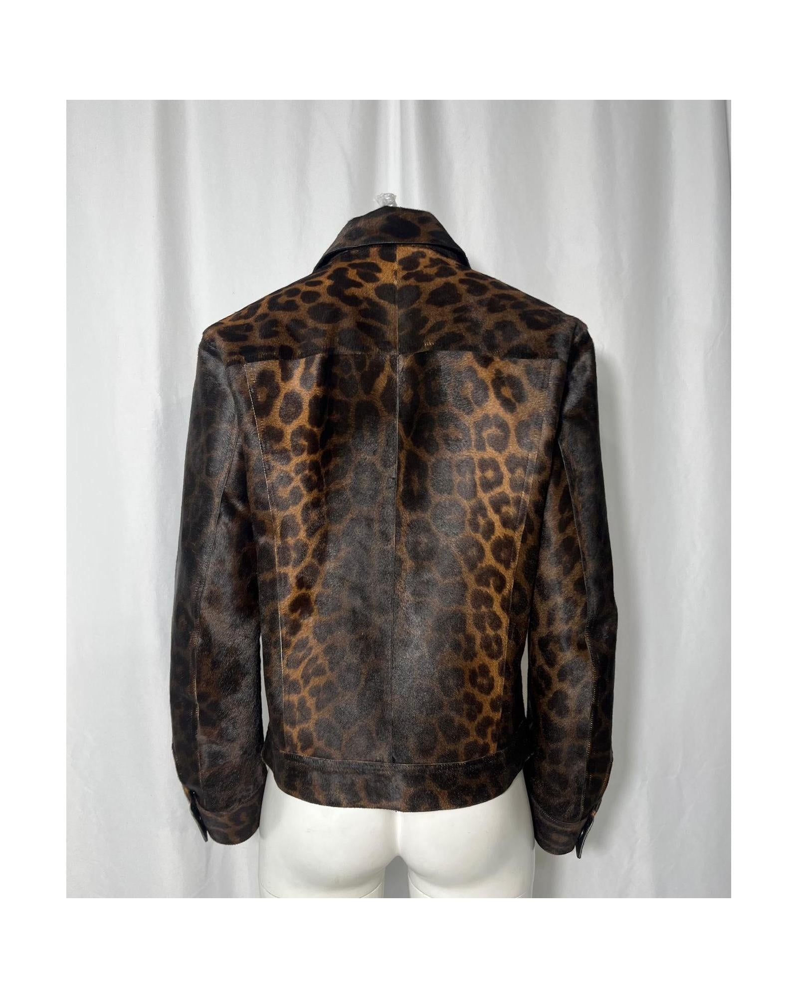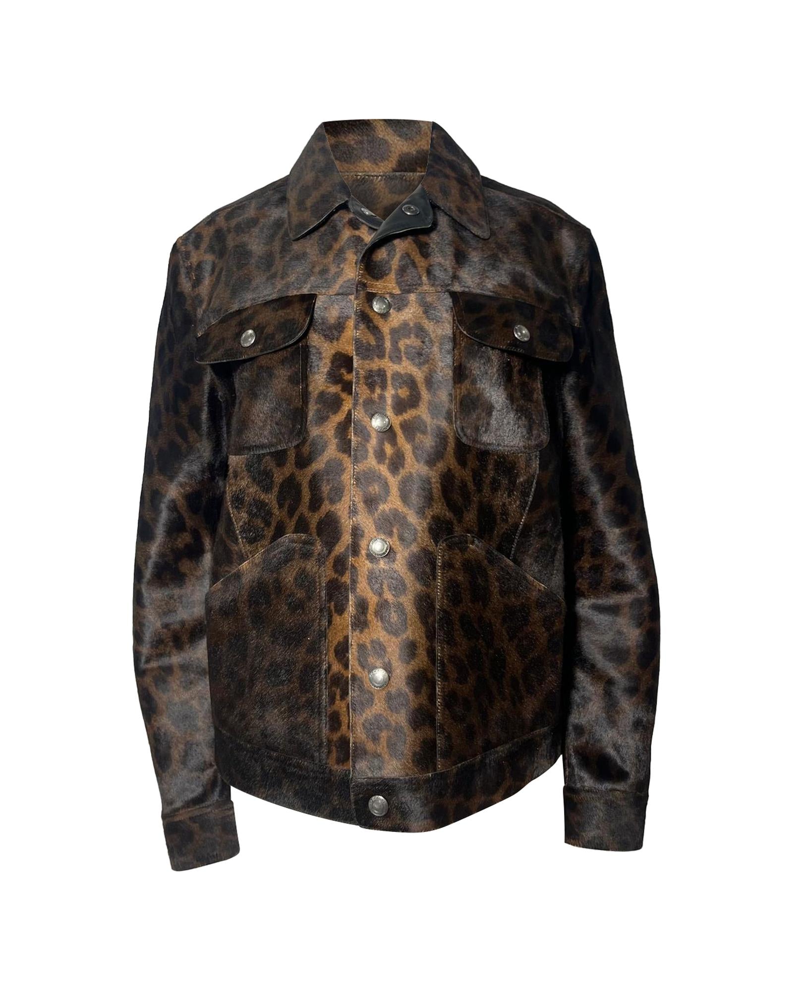- Tom Ford Leopard Print Buttoned Jacket with Pockets in Brown Calf Hair