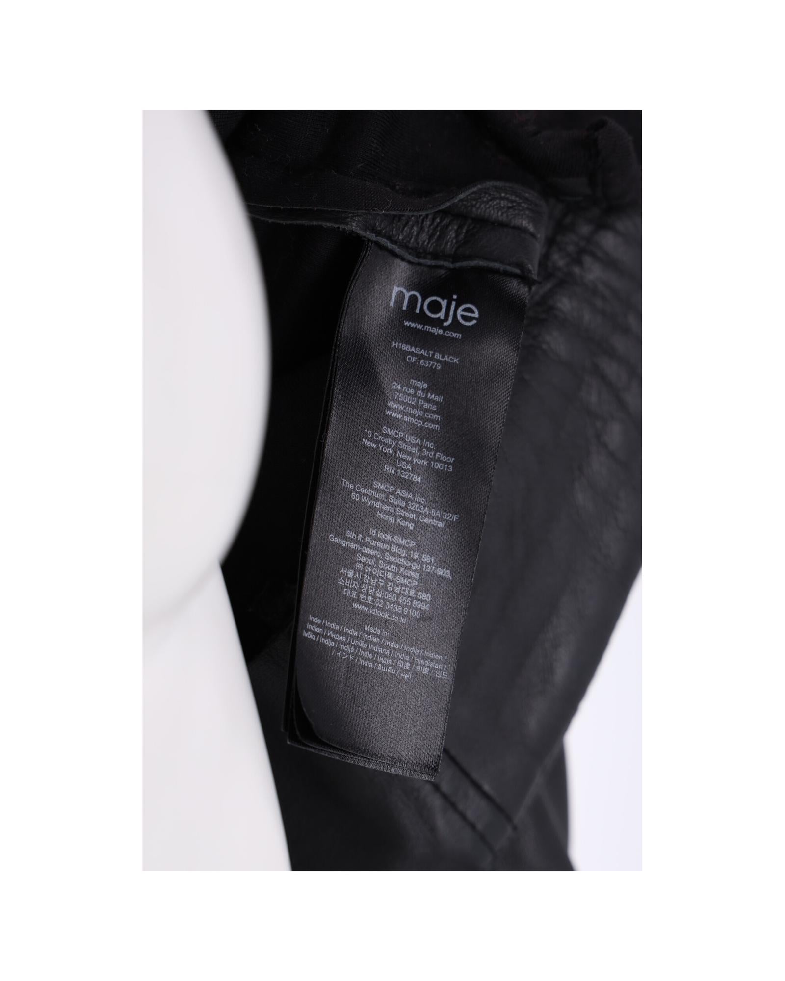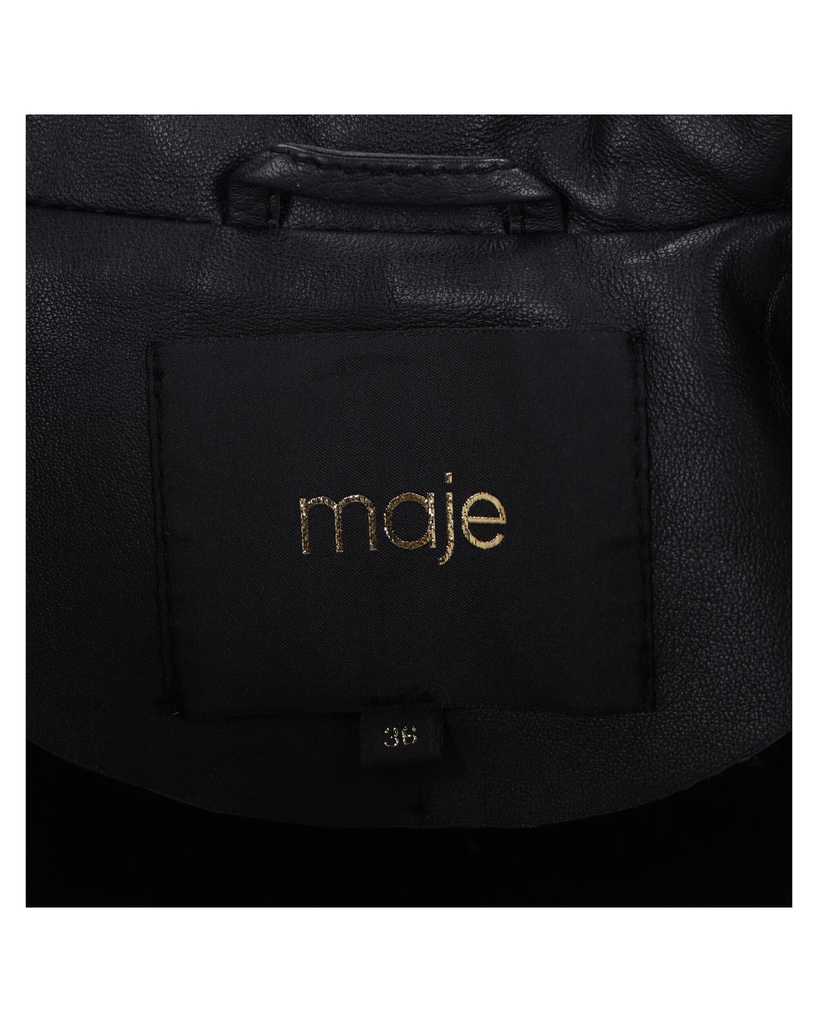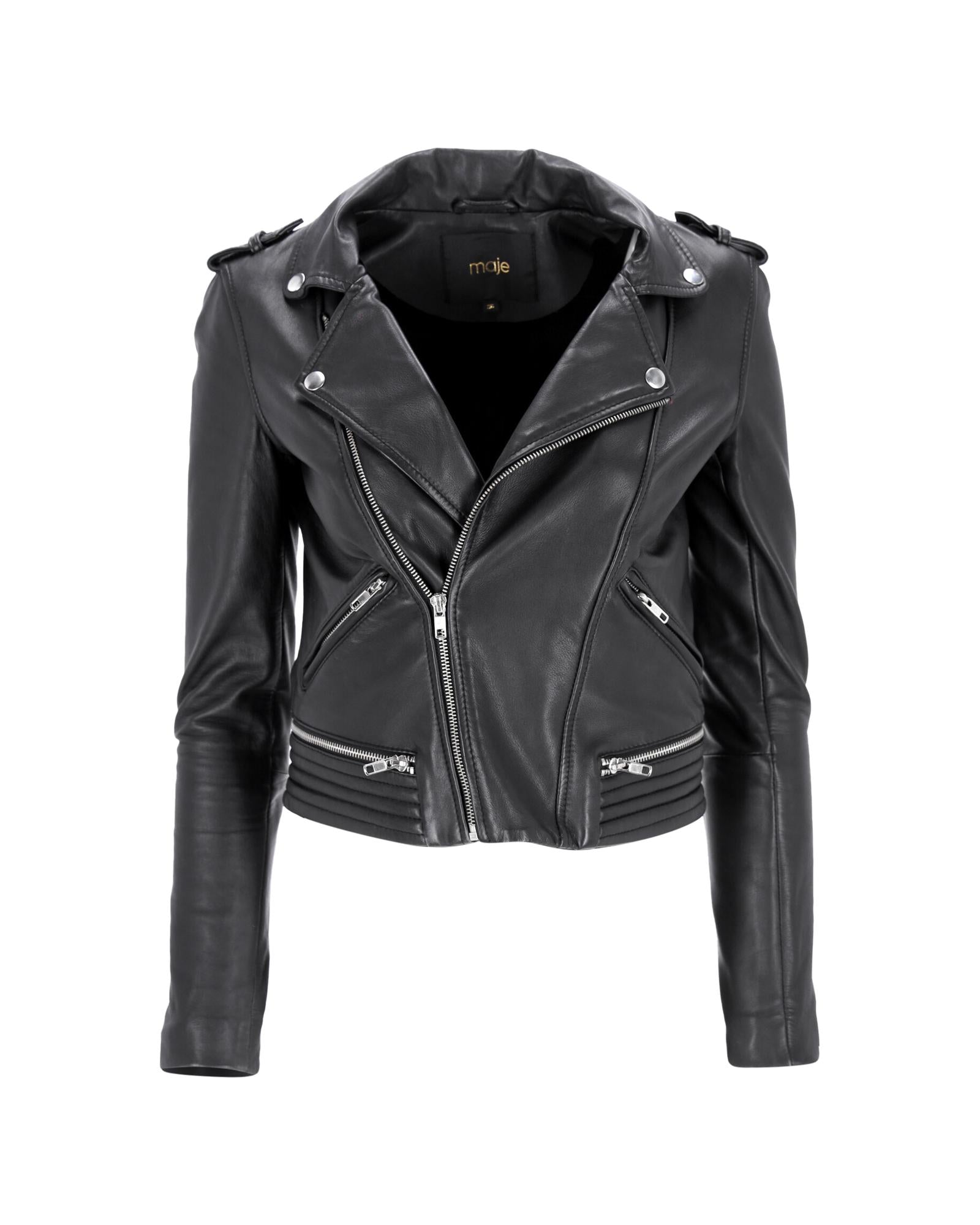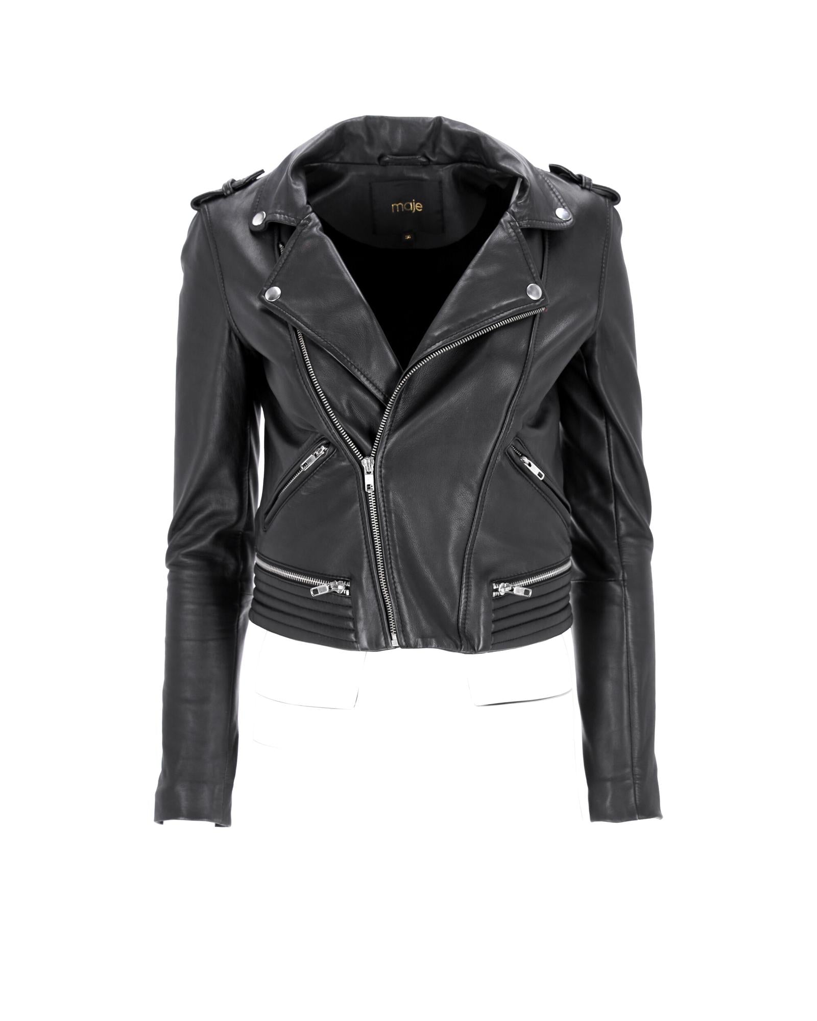 - Maje Maya Biker Jacket with Quilt Detail in Black Leather