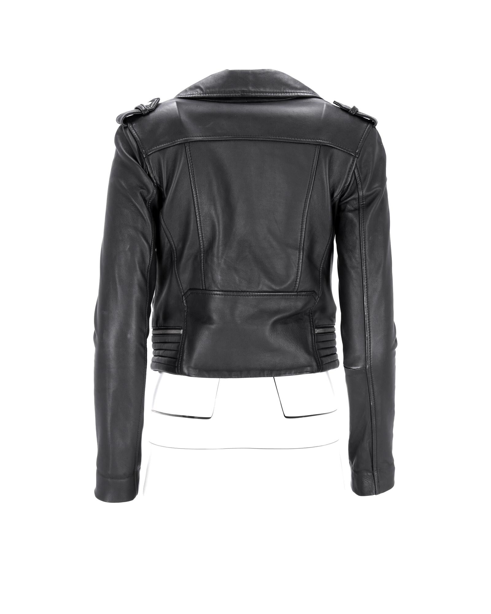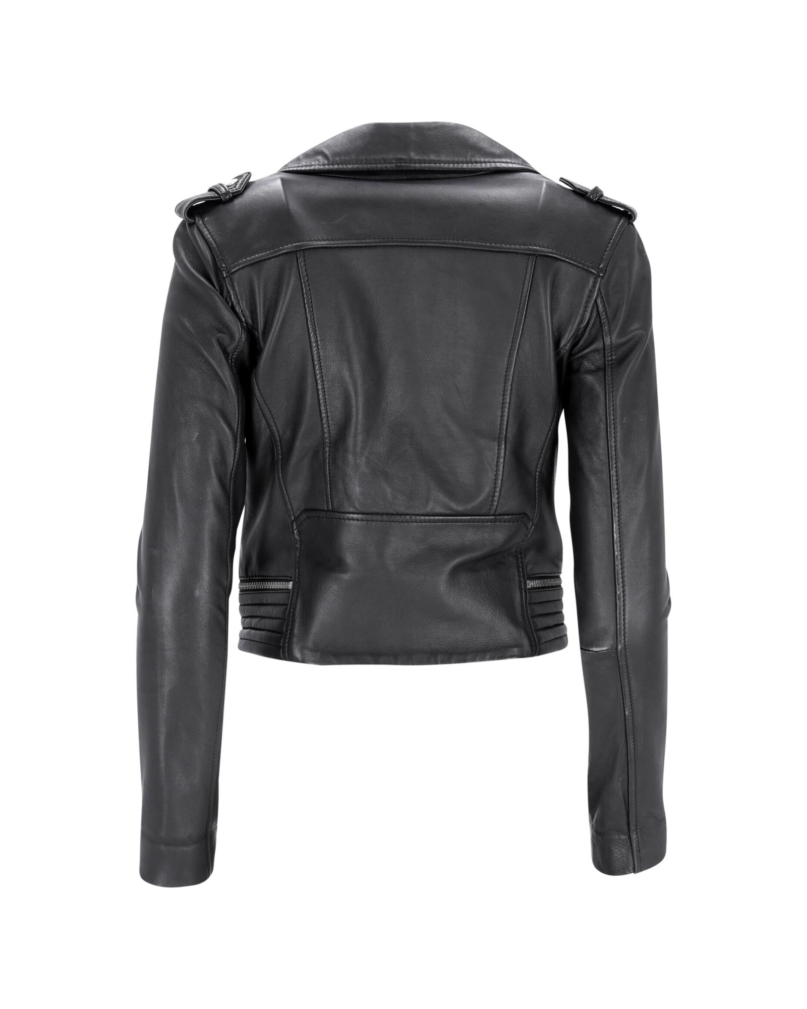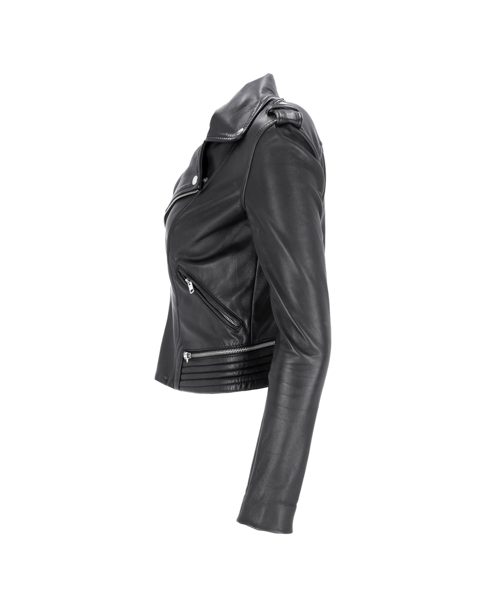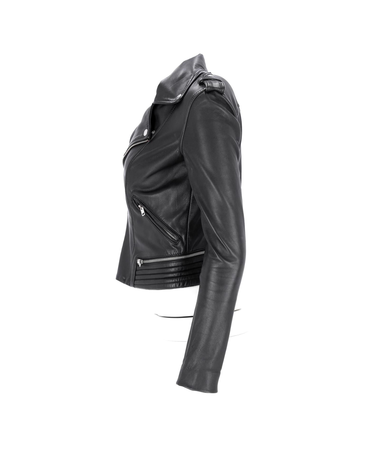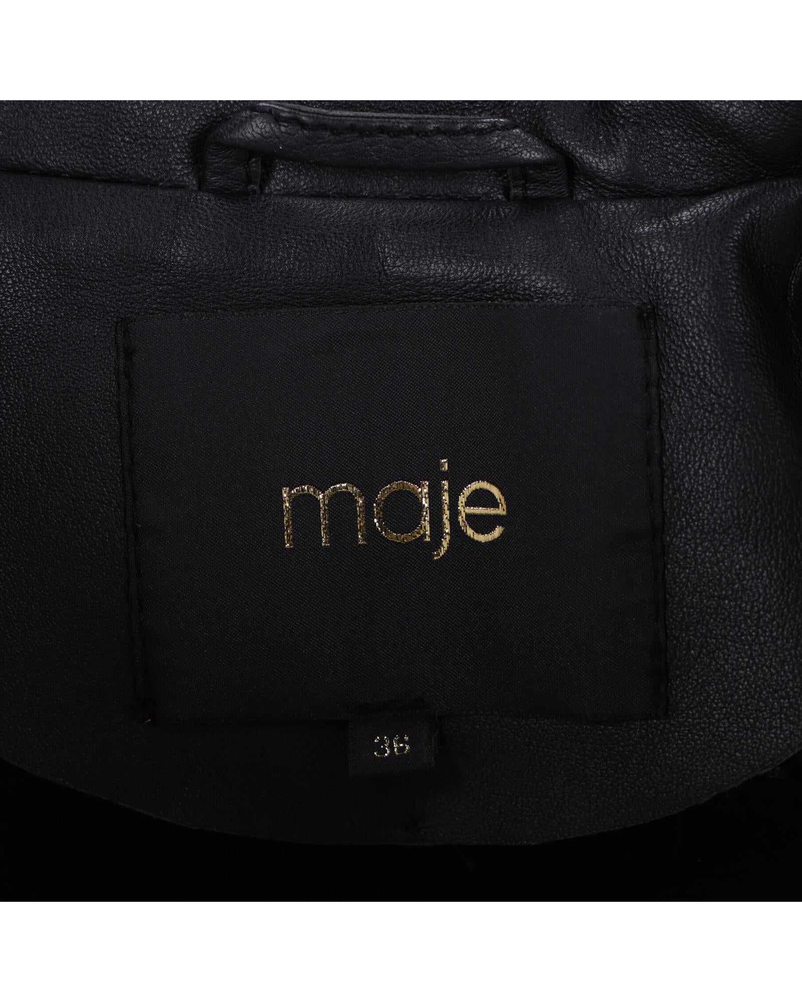 - Maje Maya Biker Jacket with Quilt Detail in Black Leather