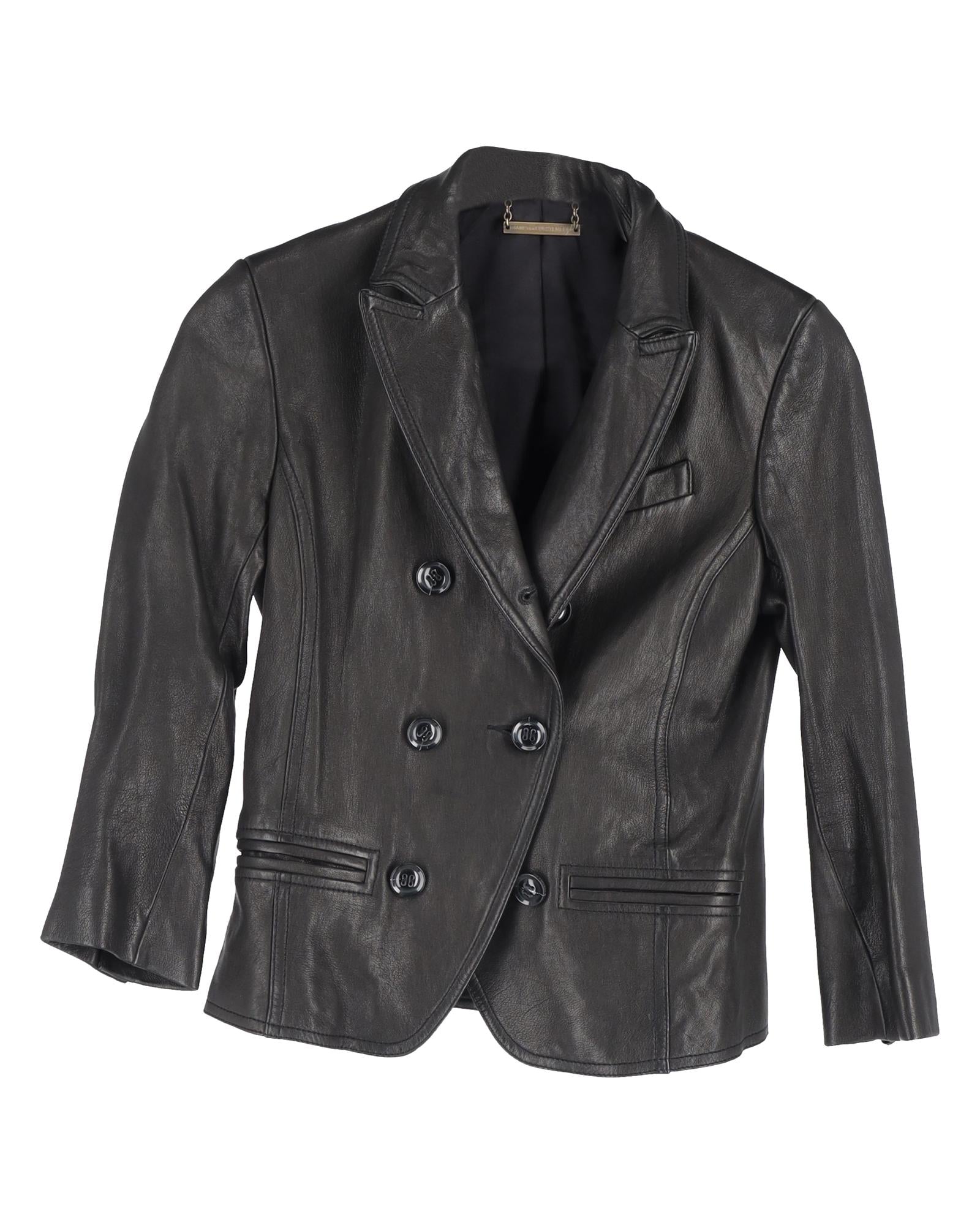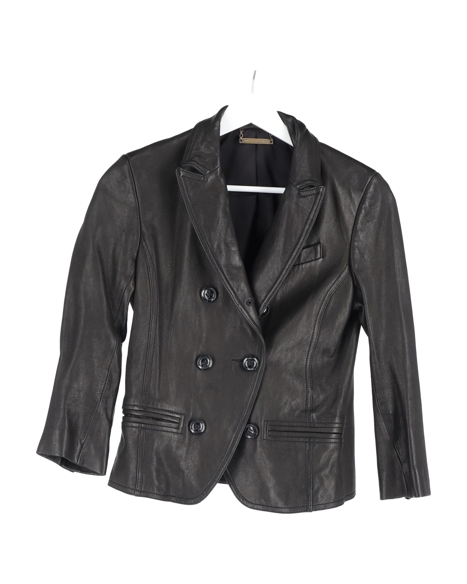 - Diane von Furstenberg Double Breasted Blazer in Black Leather