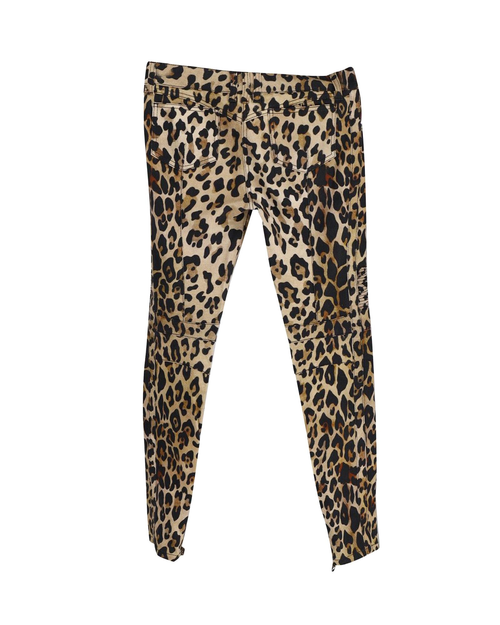 Pre-owned Leopard Print Skinny Jeans with Zipper Detail