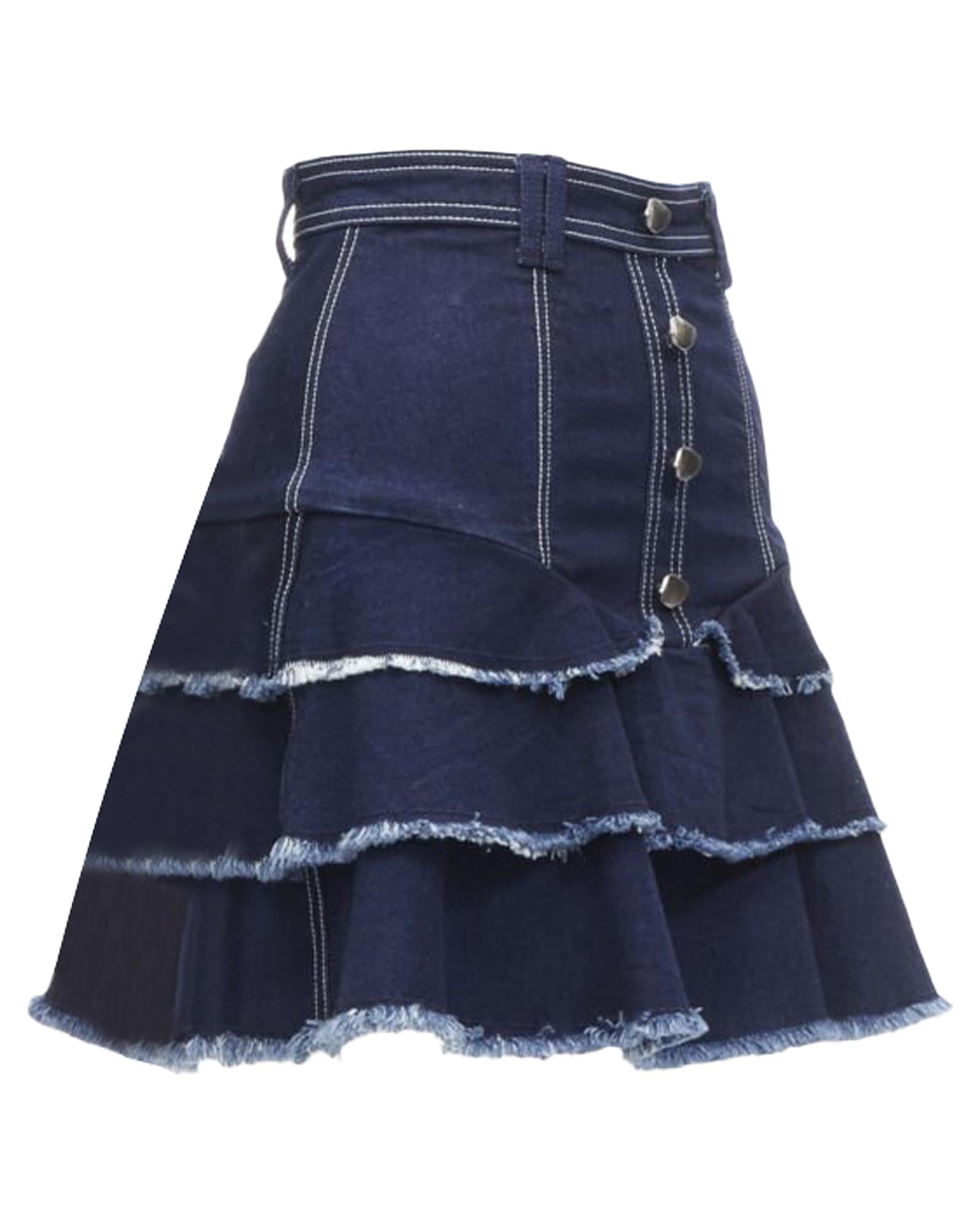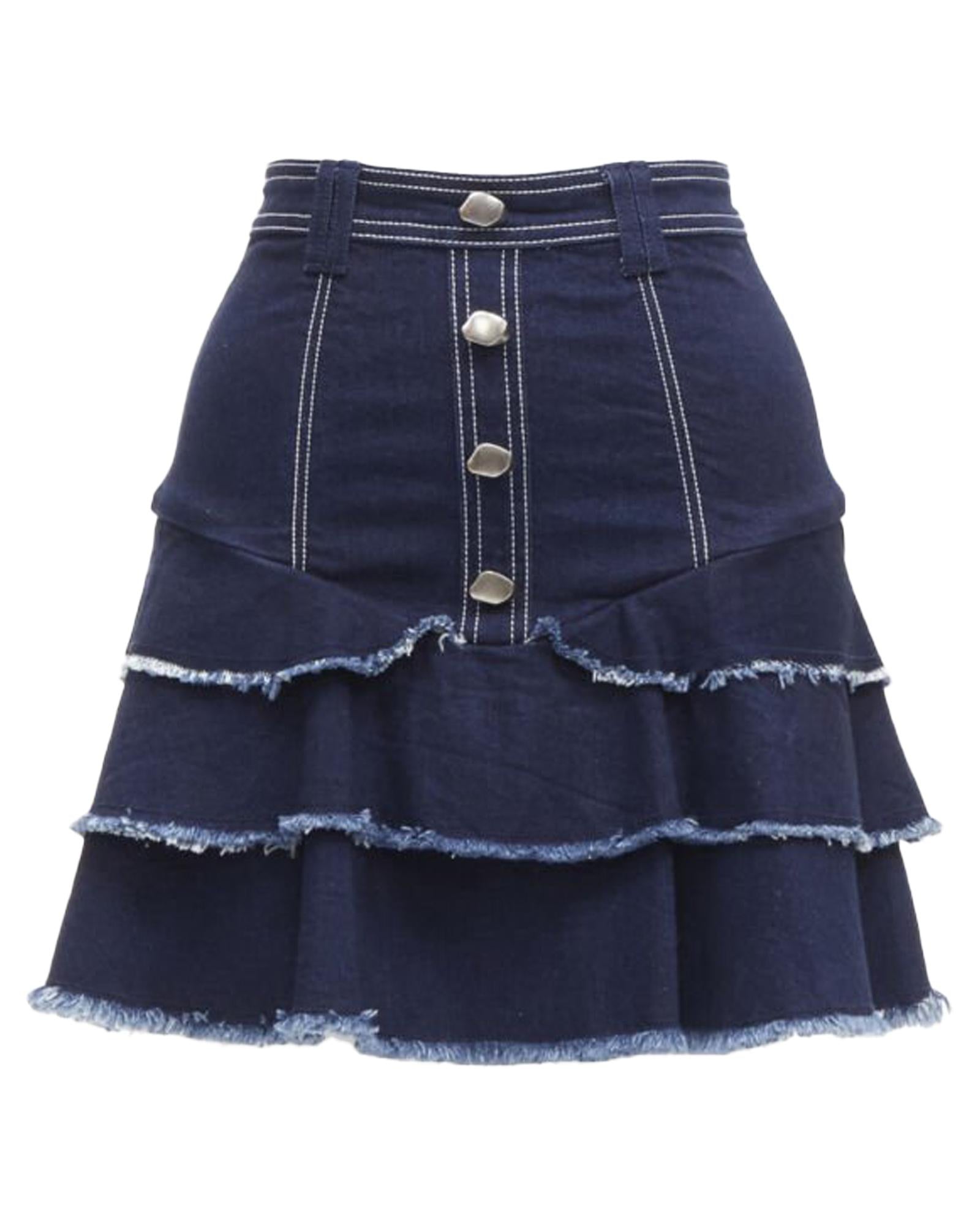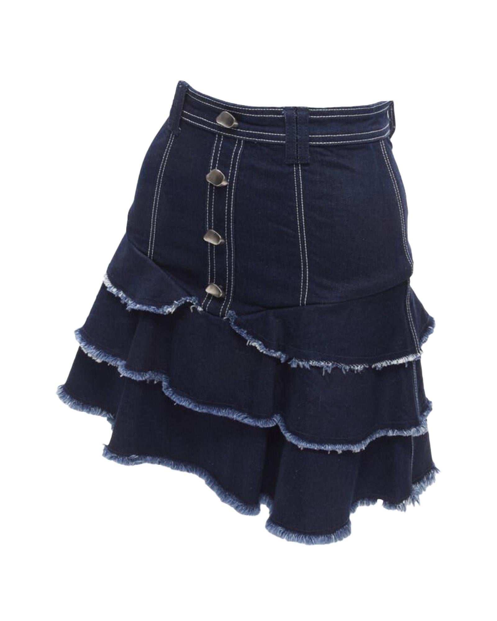 Pre-owned Ruffled Hem Denim Skirt with Button Front Closure