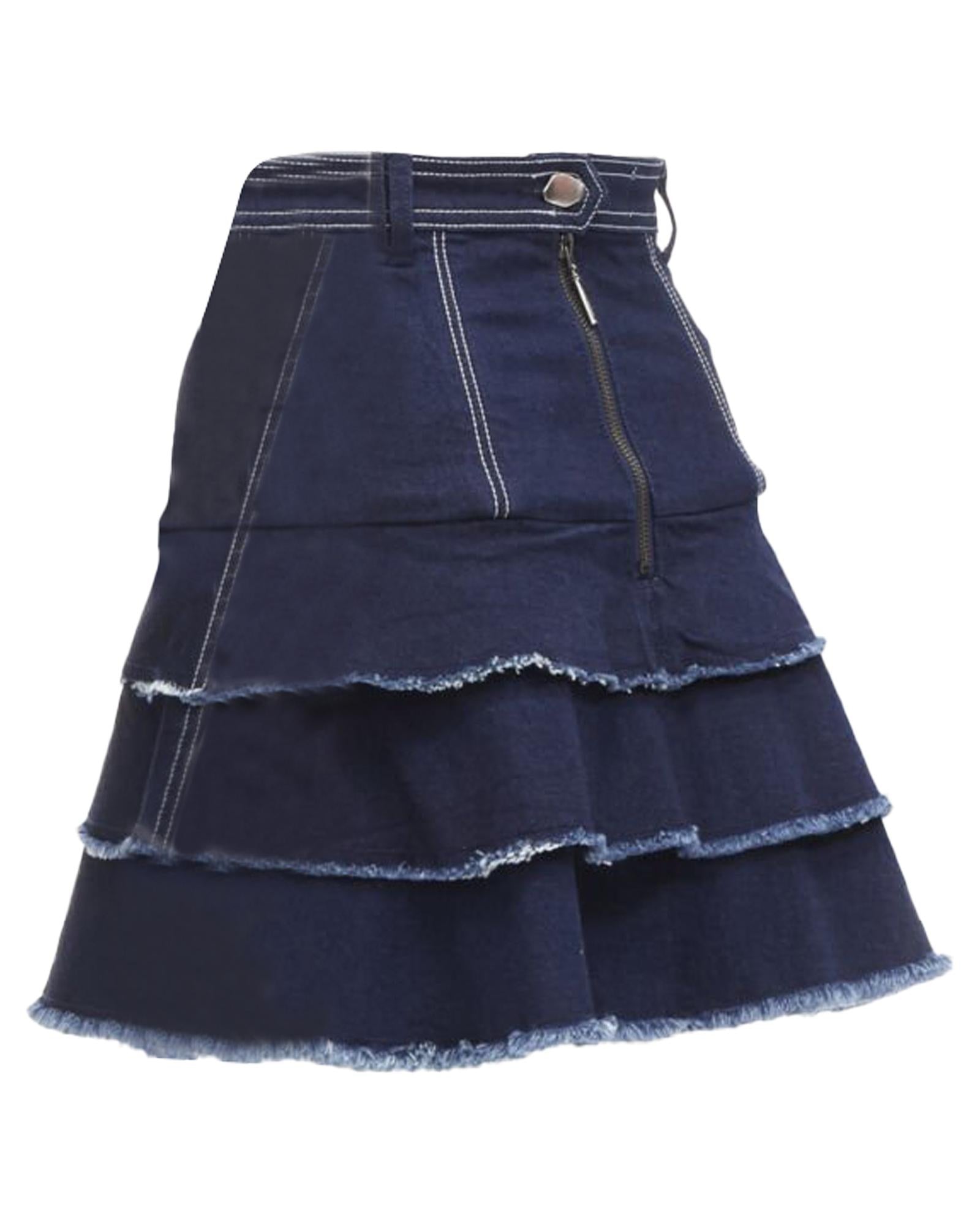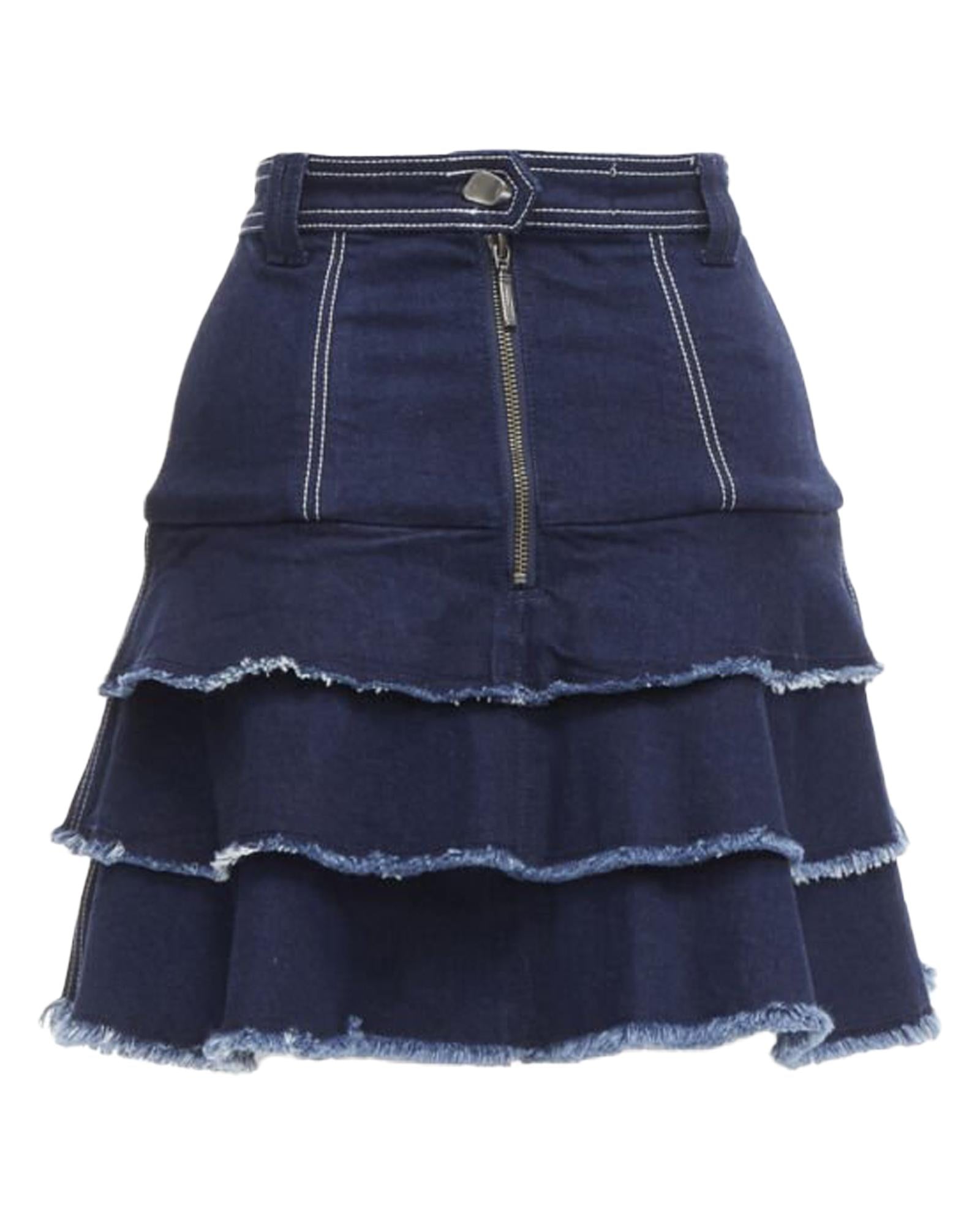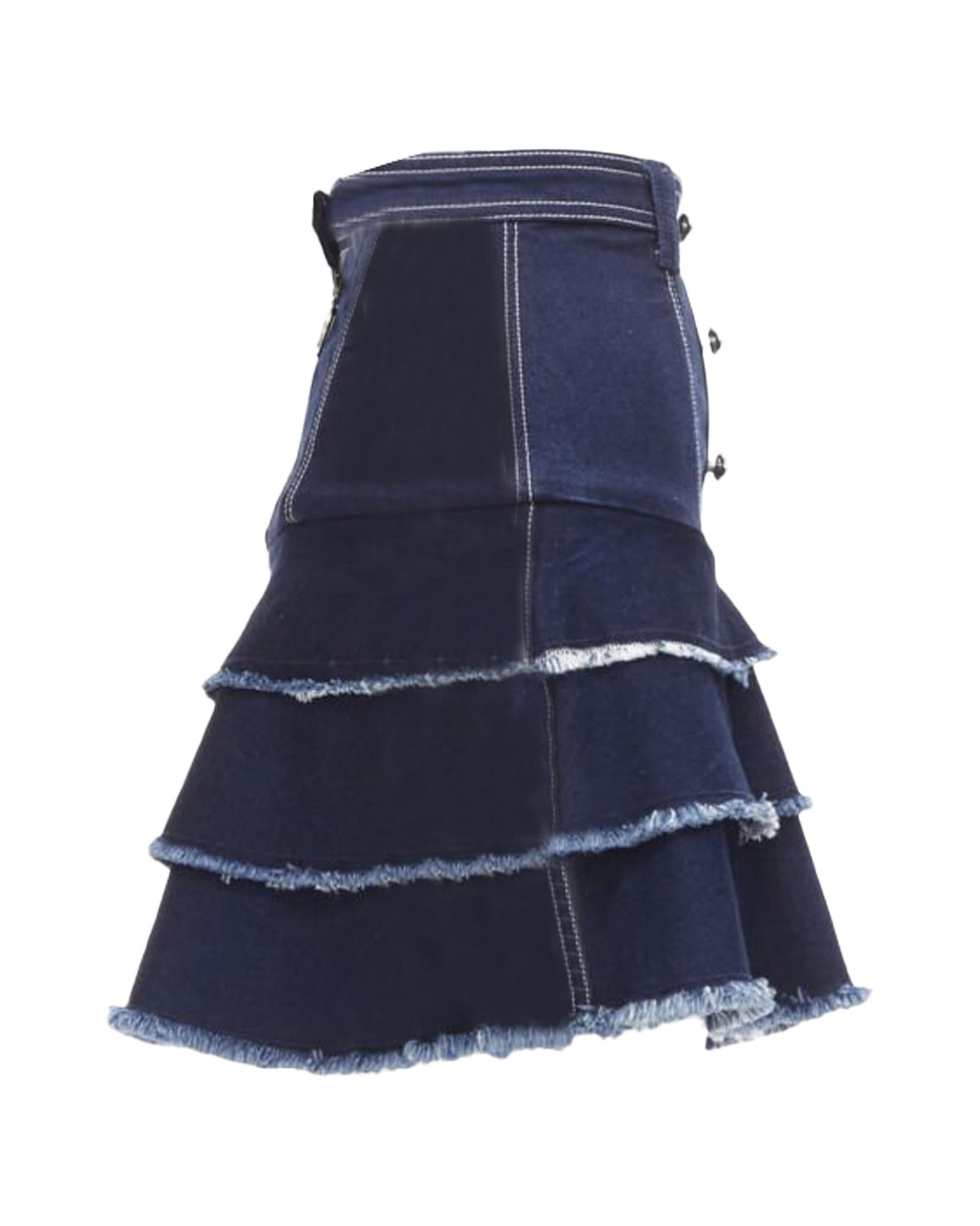 Pre-owned Ruffled Hem Denim Skirt with Button Front Closure