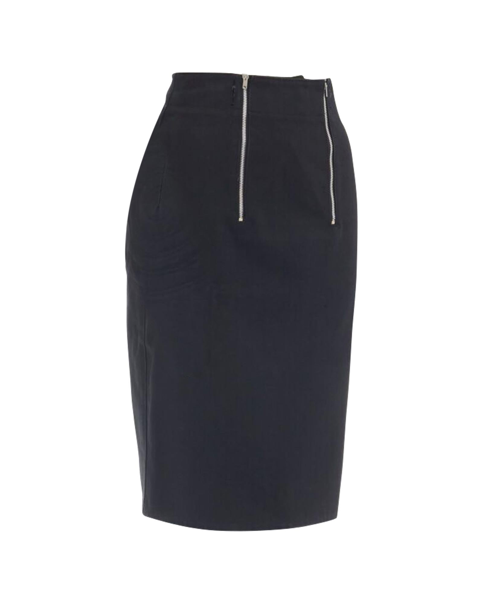 Pre-owned Stylish Pencil Skirt with Zip Detail Knee Length High Waist