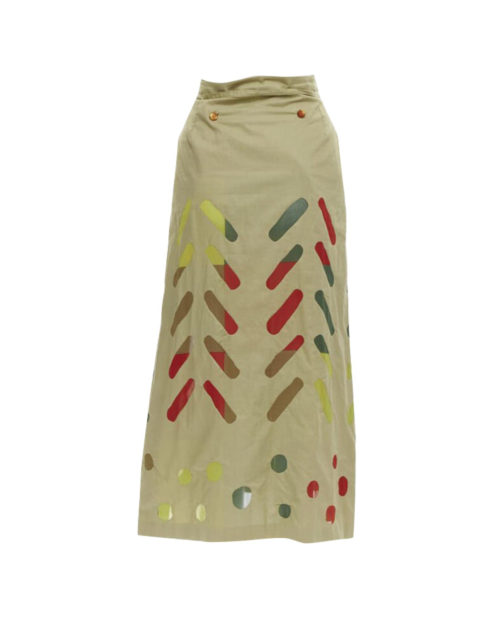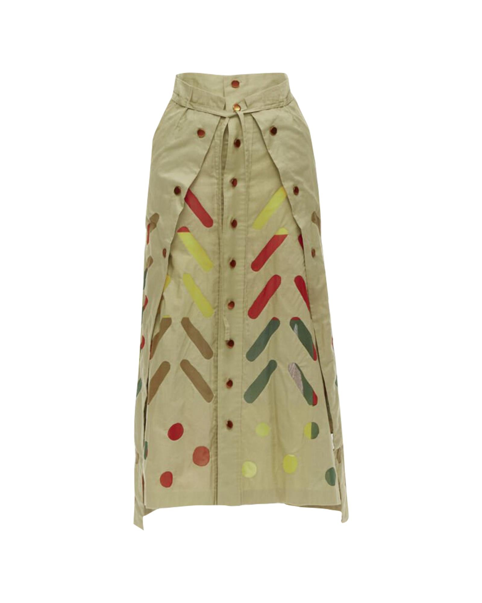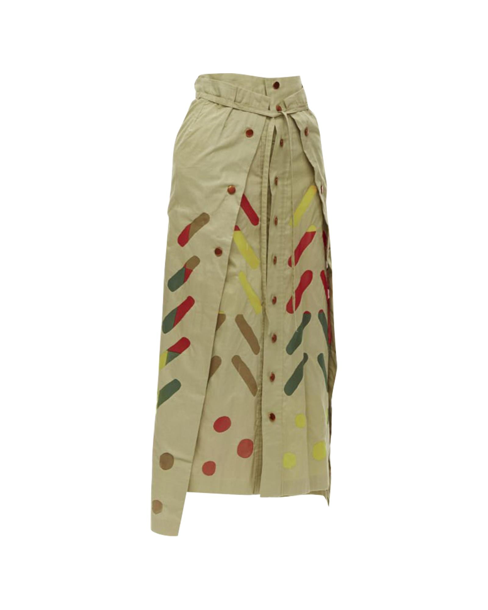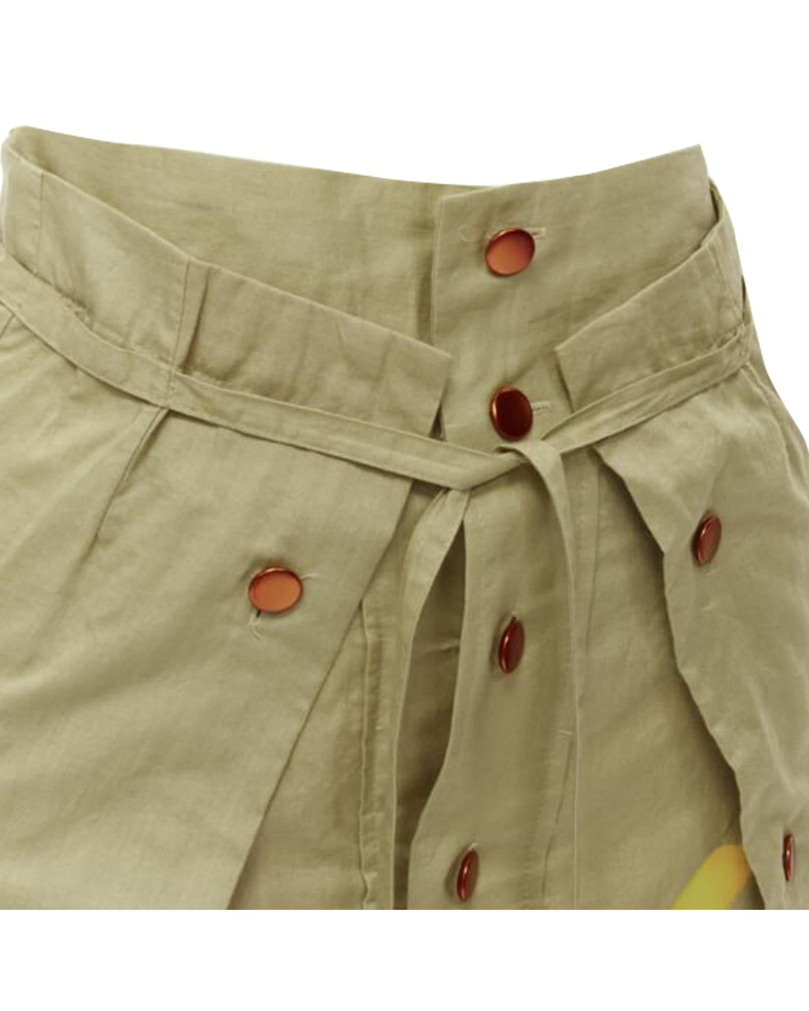 Pre-owned Printed Skirt with Pleated Details and Button Closure