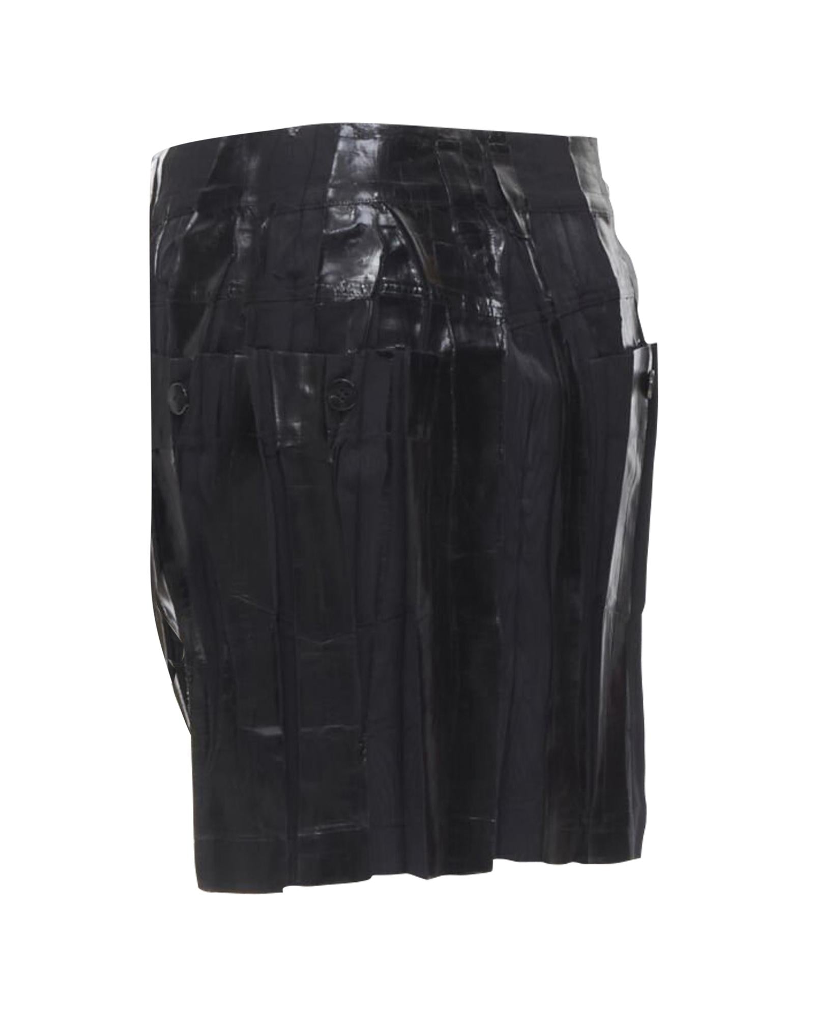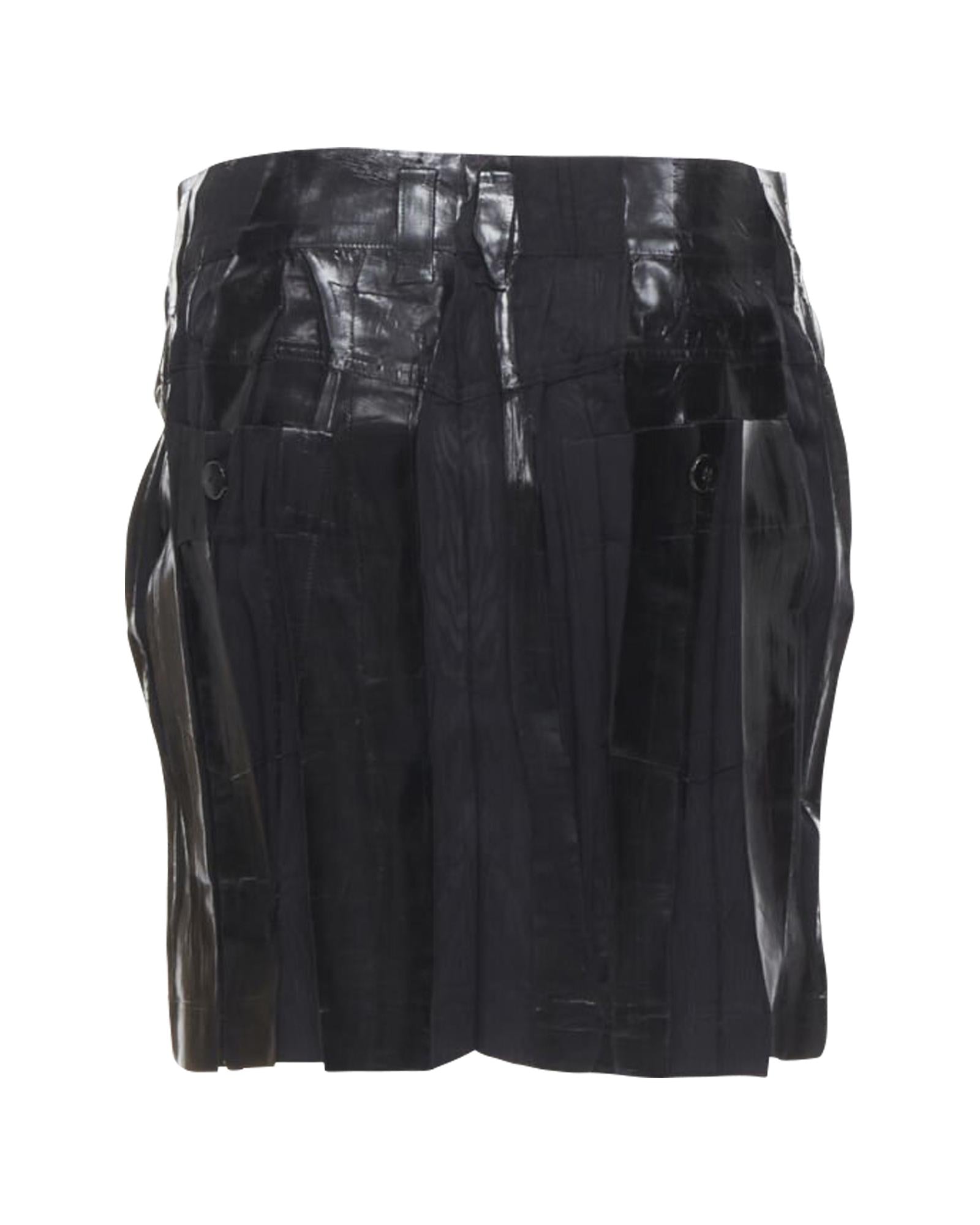 Pre-owned Solid Pleated High-Waisted Mini Skirt With Button Details