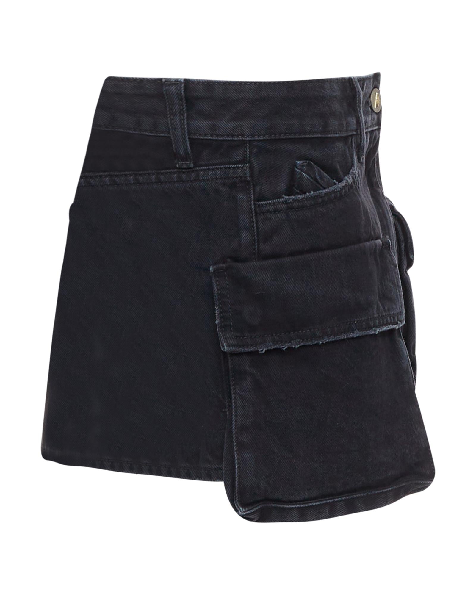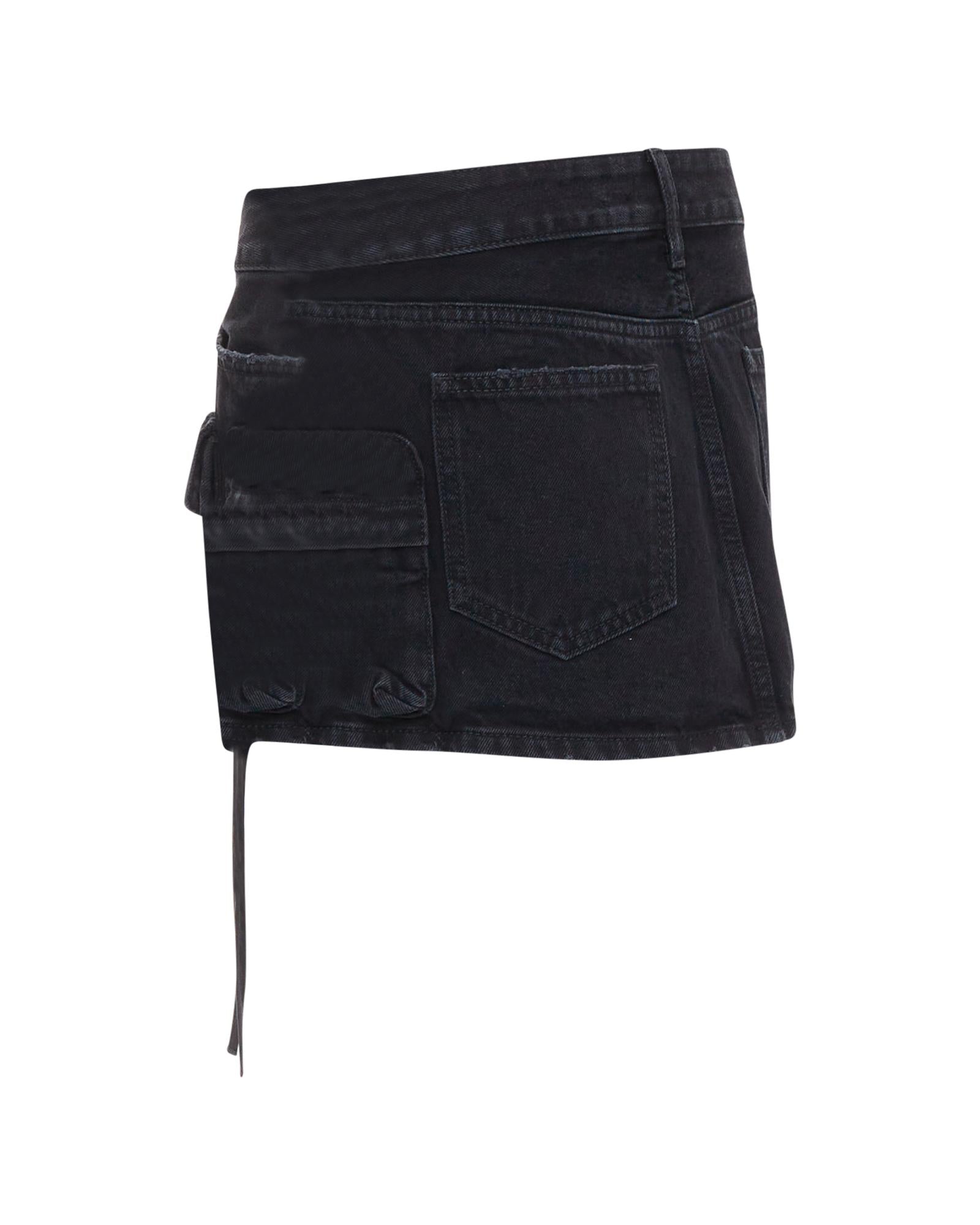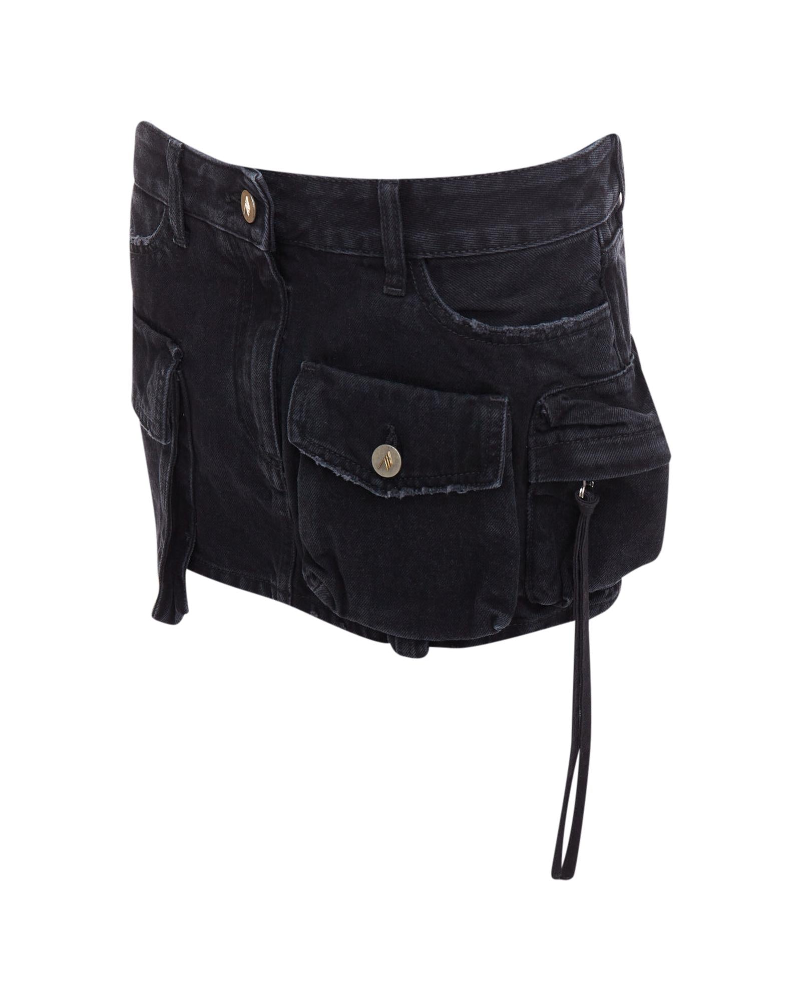 Pre-owned Mini Denim Skirt with Cargo Pockets and Distressed Details