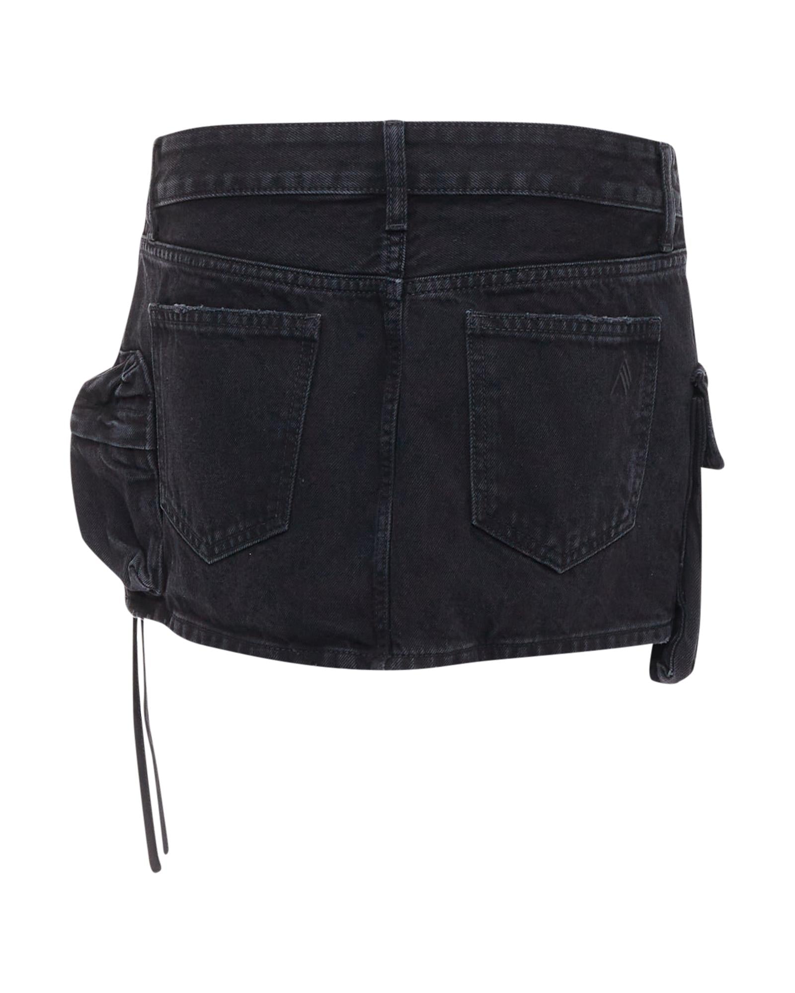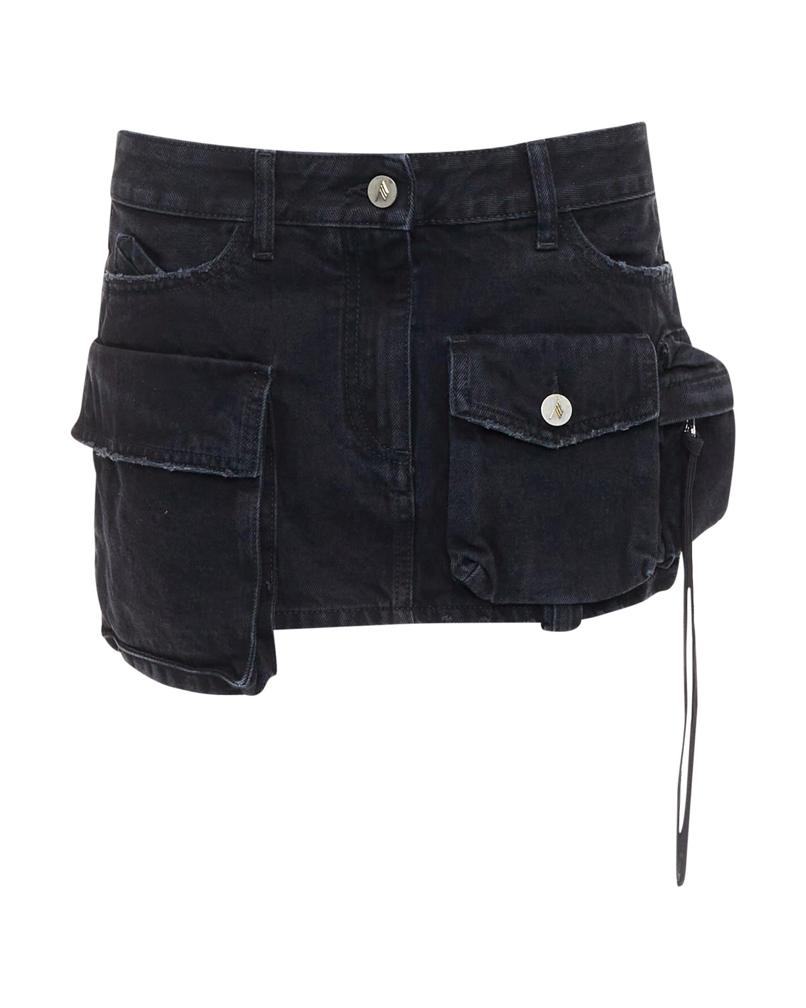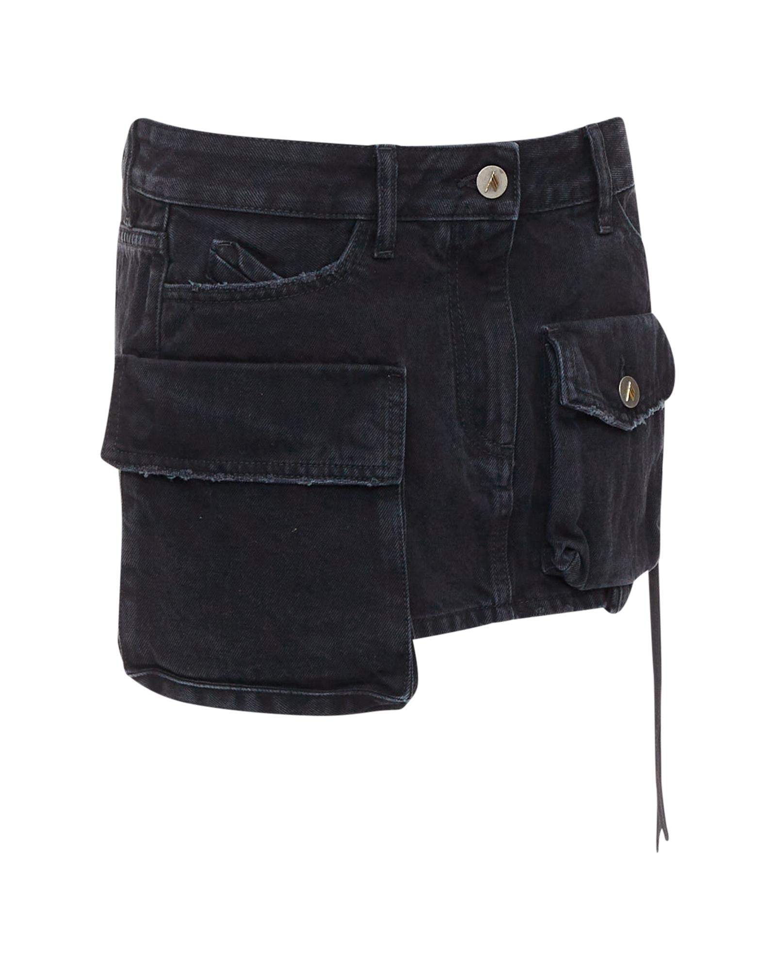 Pre-owned Mini Denim Skirt with Cargo Pockets and Distressed Details