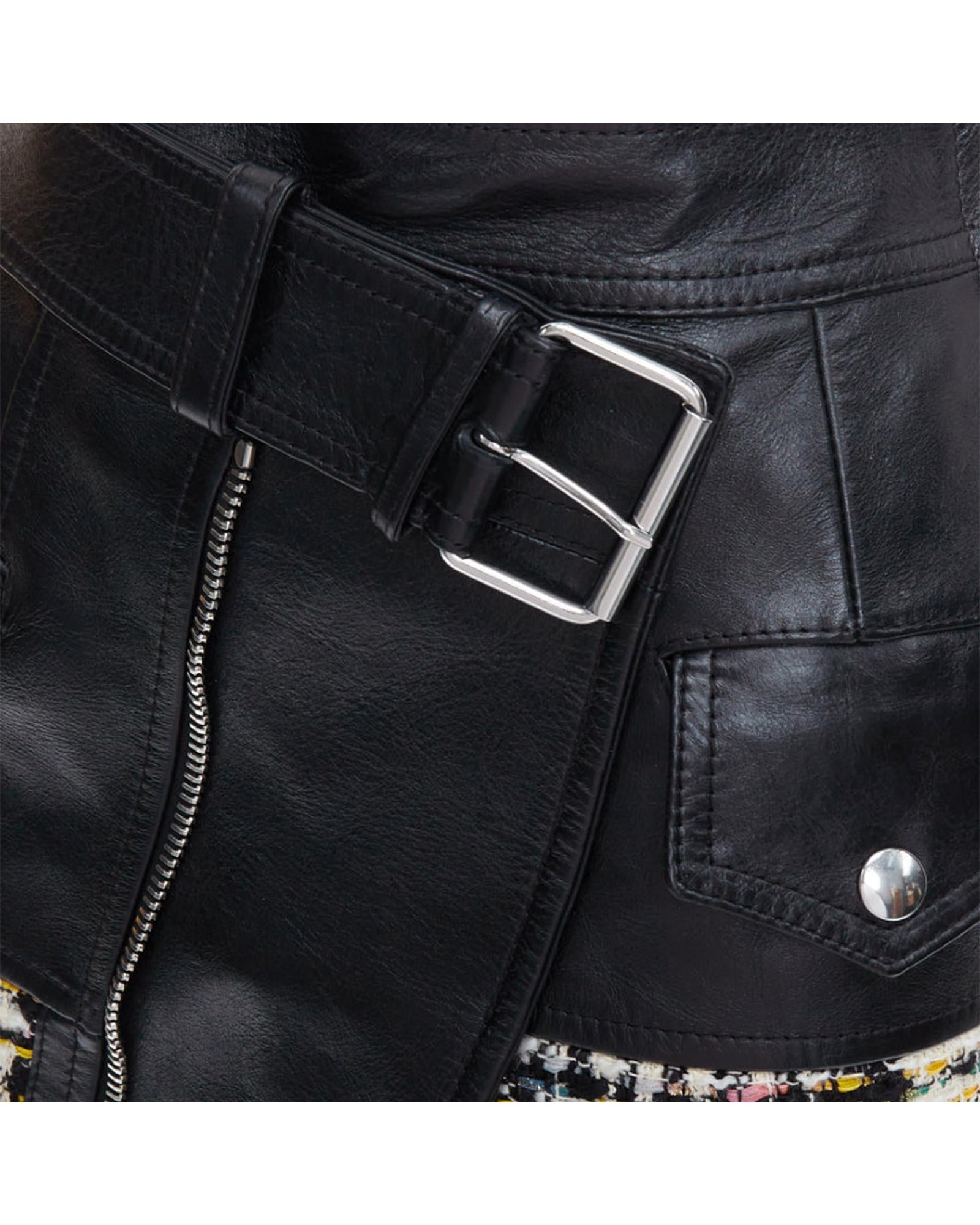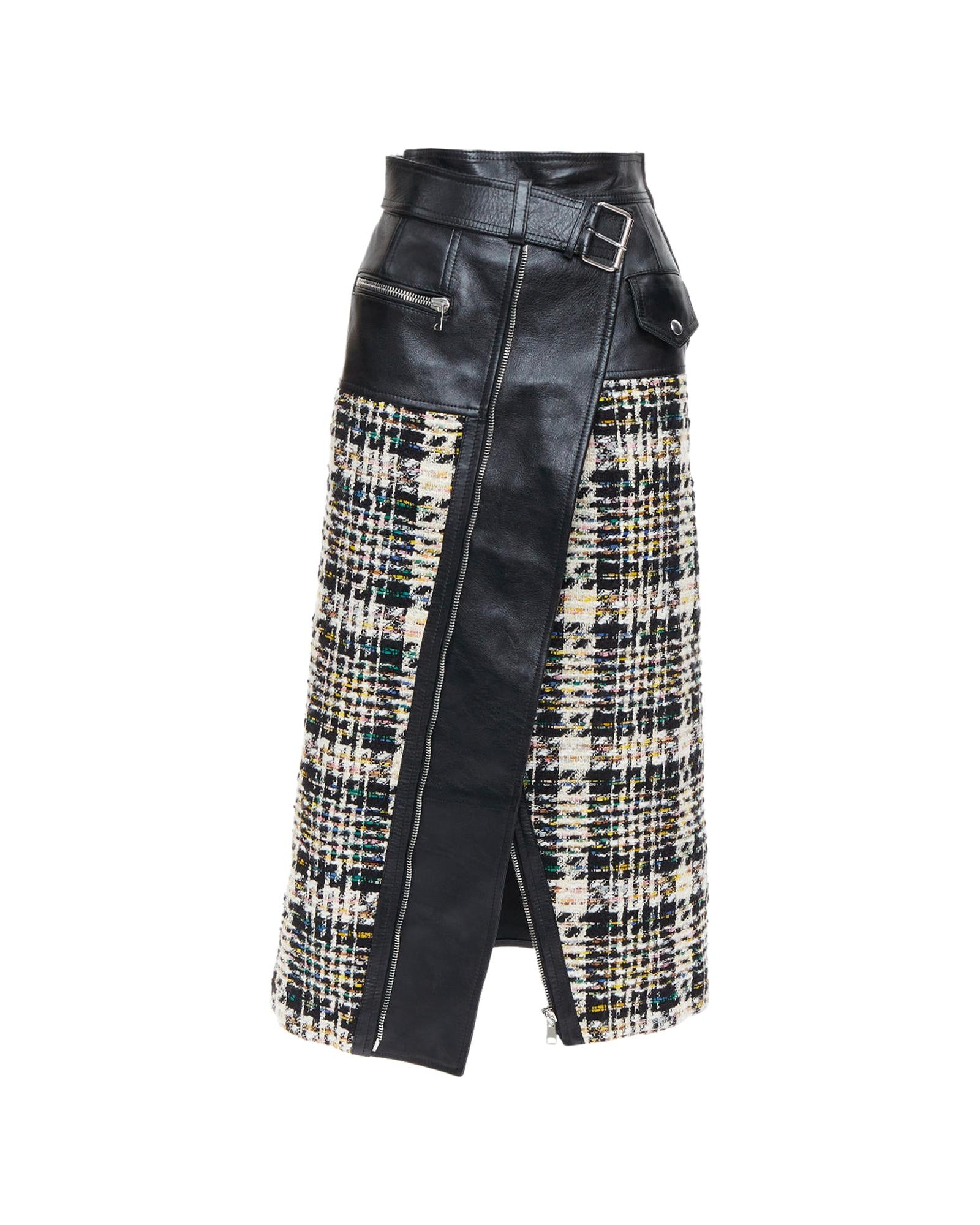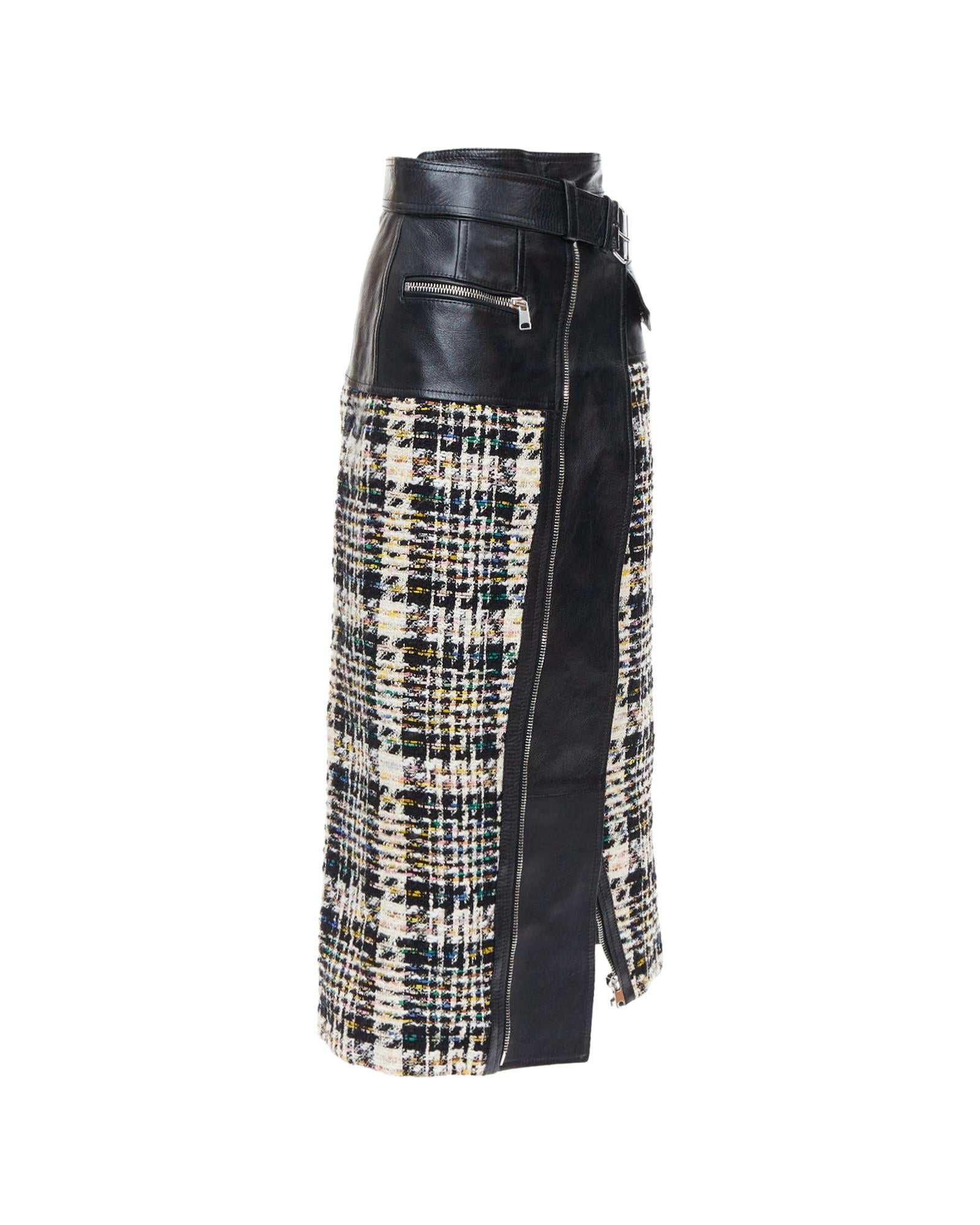 Pre-owned Asymmetric Skirt with Decorative Zippers and Faux Leather Details