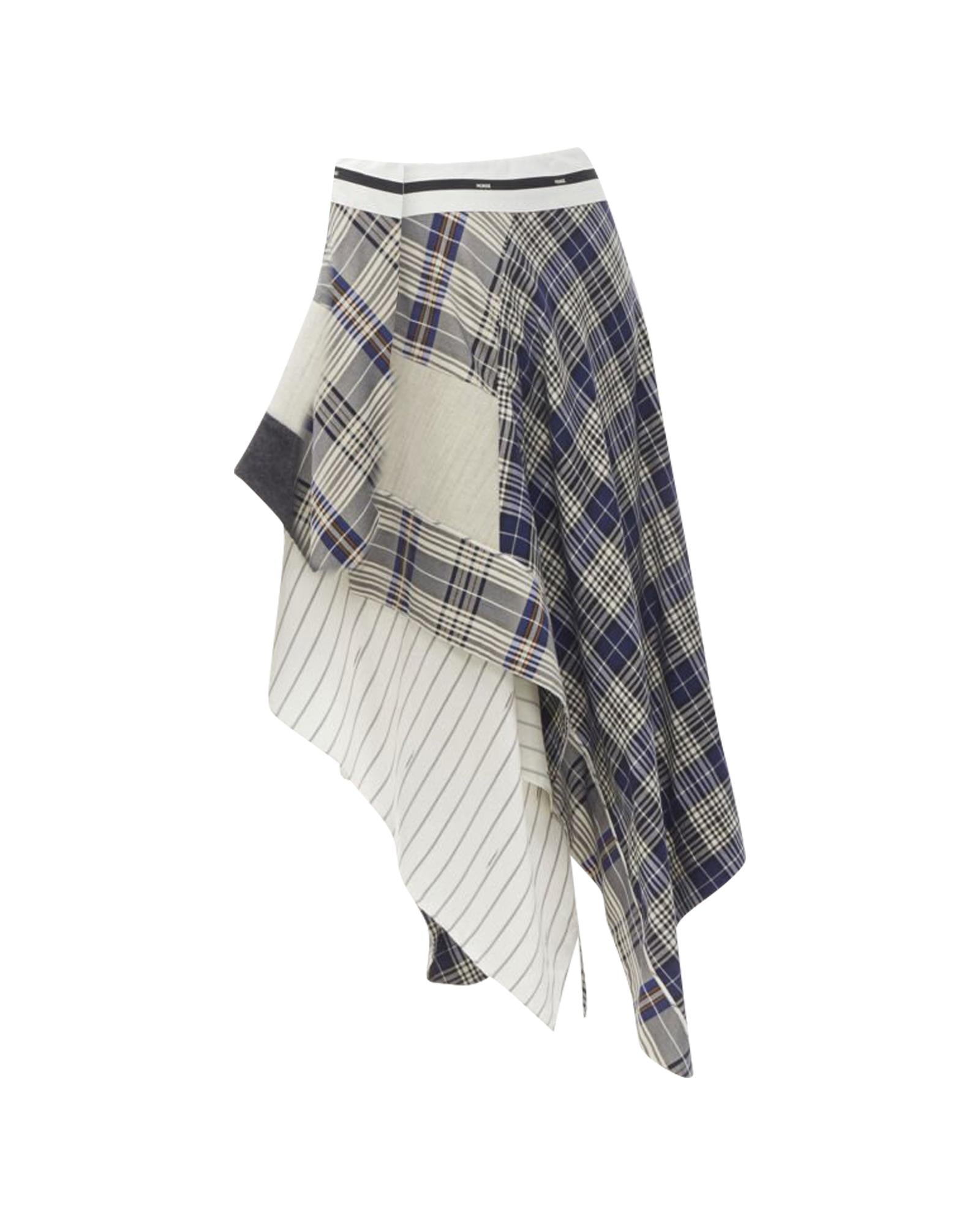 Pre-owned Asymmetrical Hem Skirt with Mixed Pattern Design for Unique Style