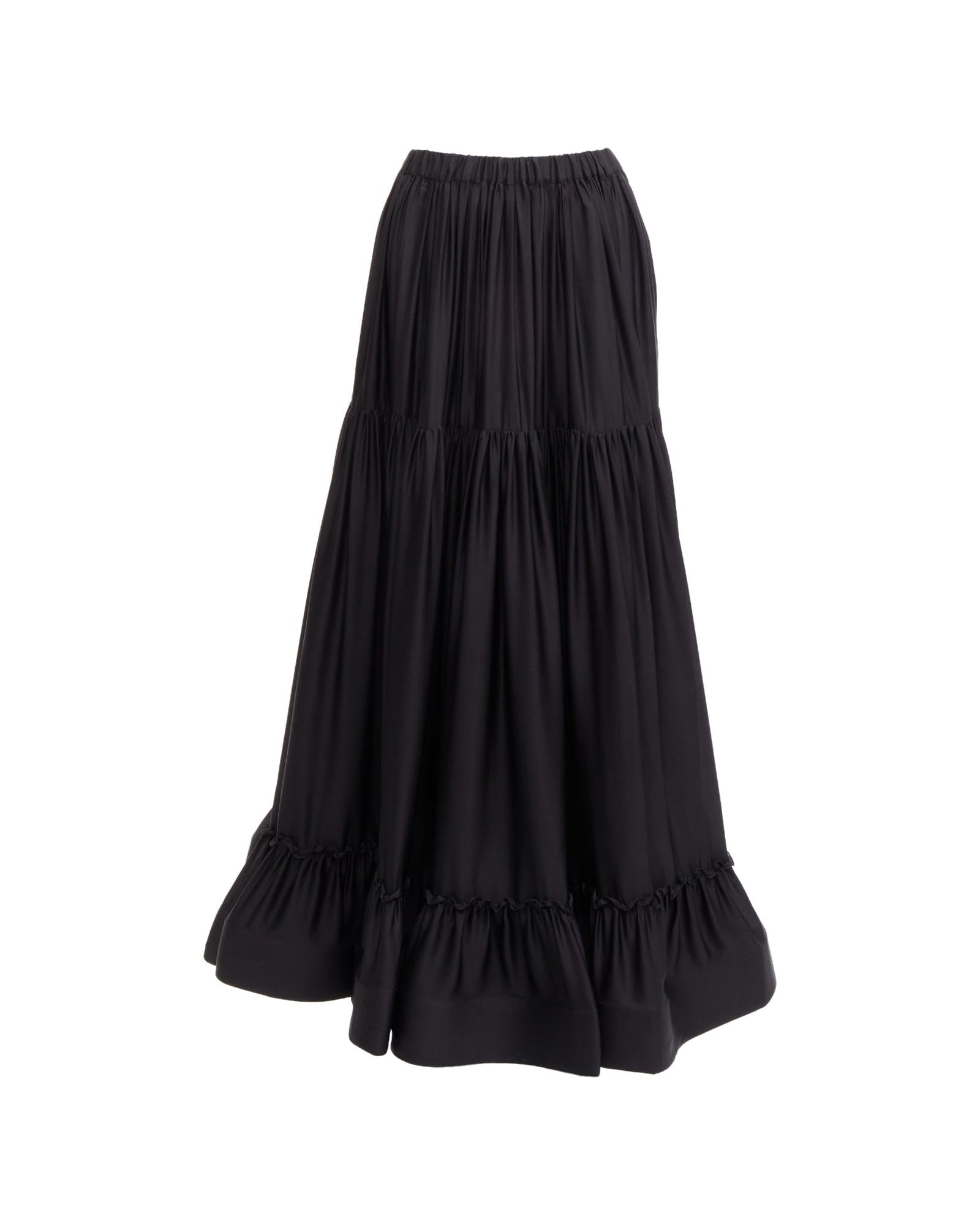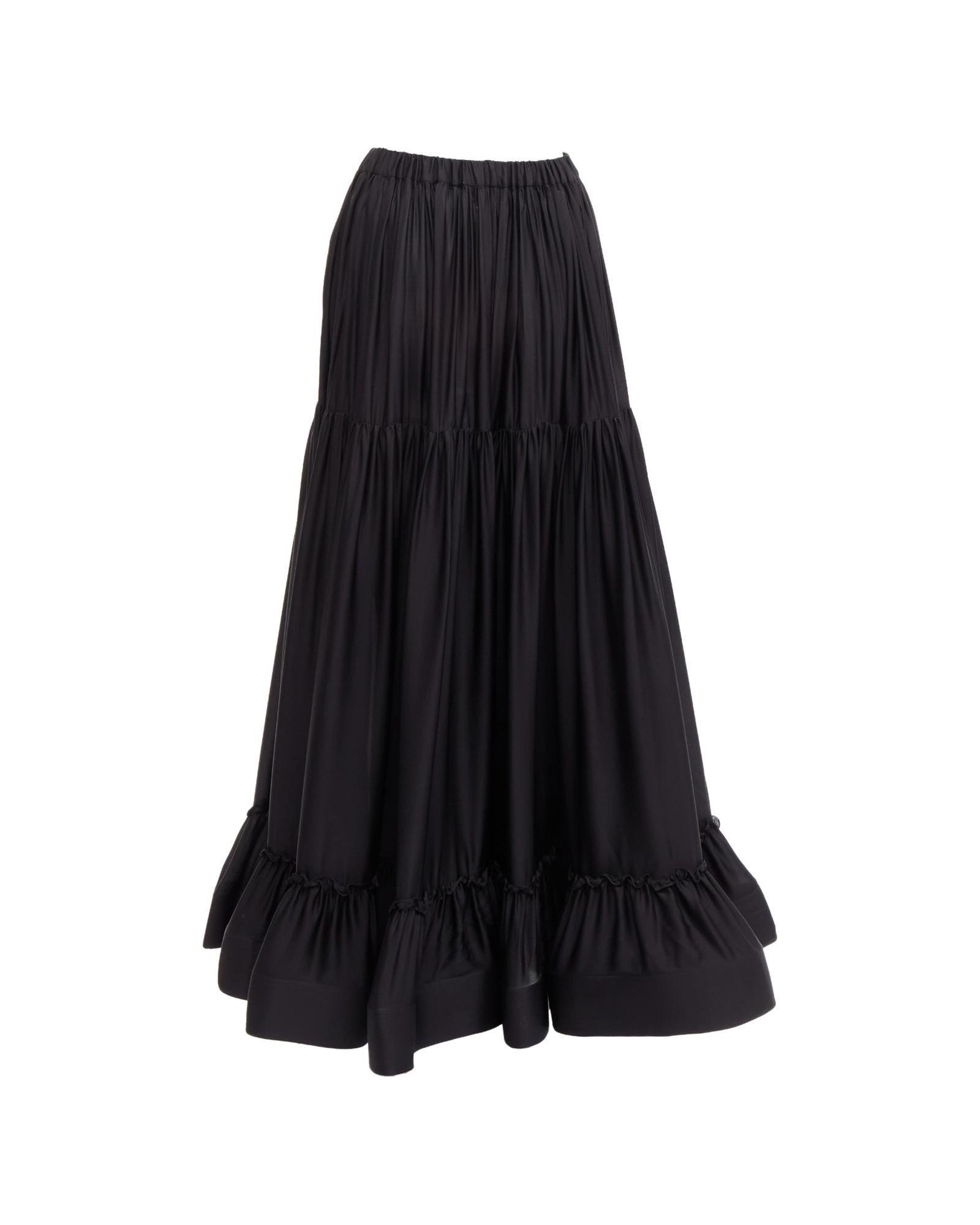Pre-owned Elegant Tiered Maxi Skirt with Ruffle Hem and Elastic Waist