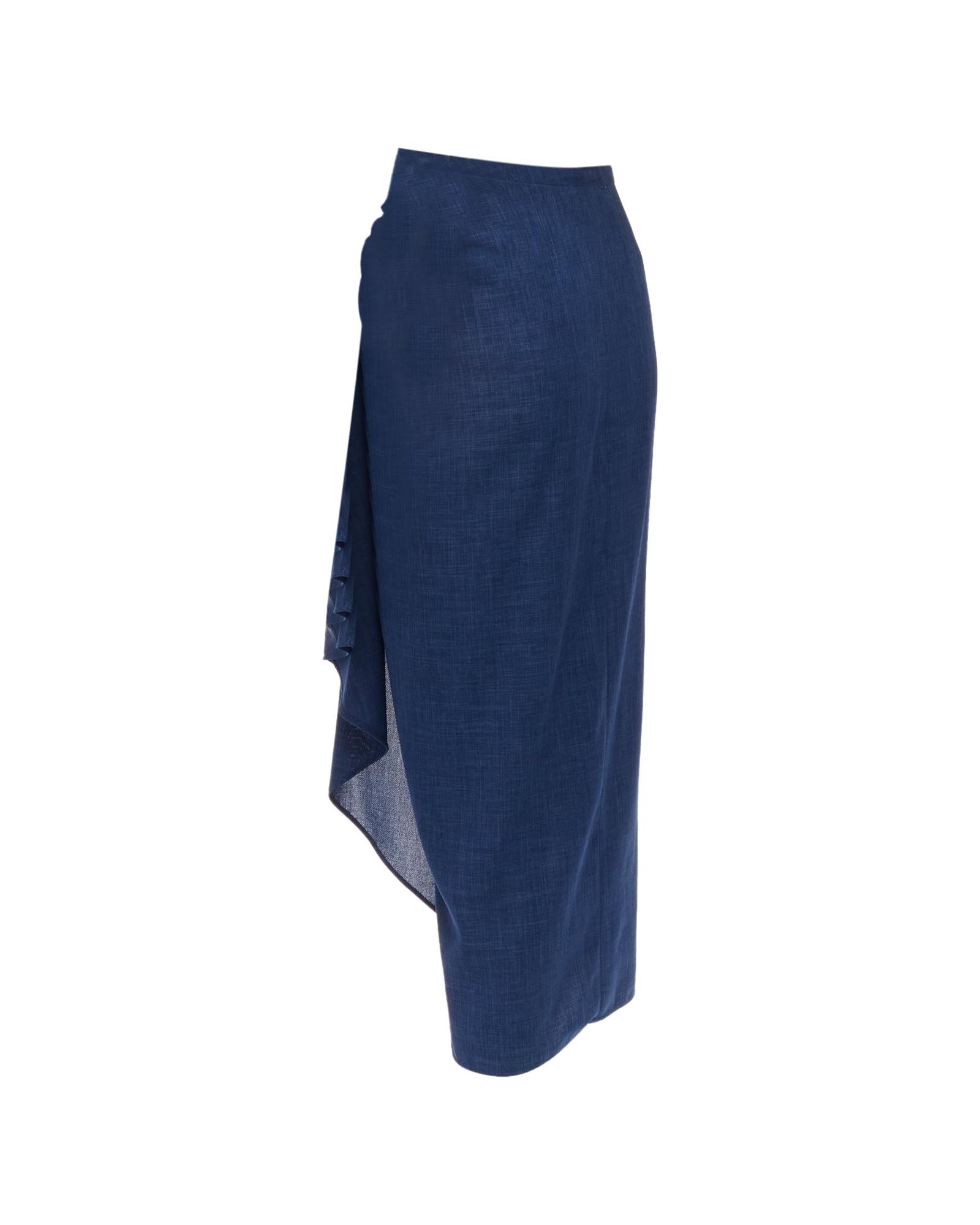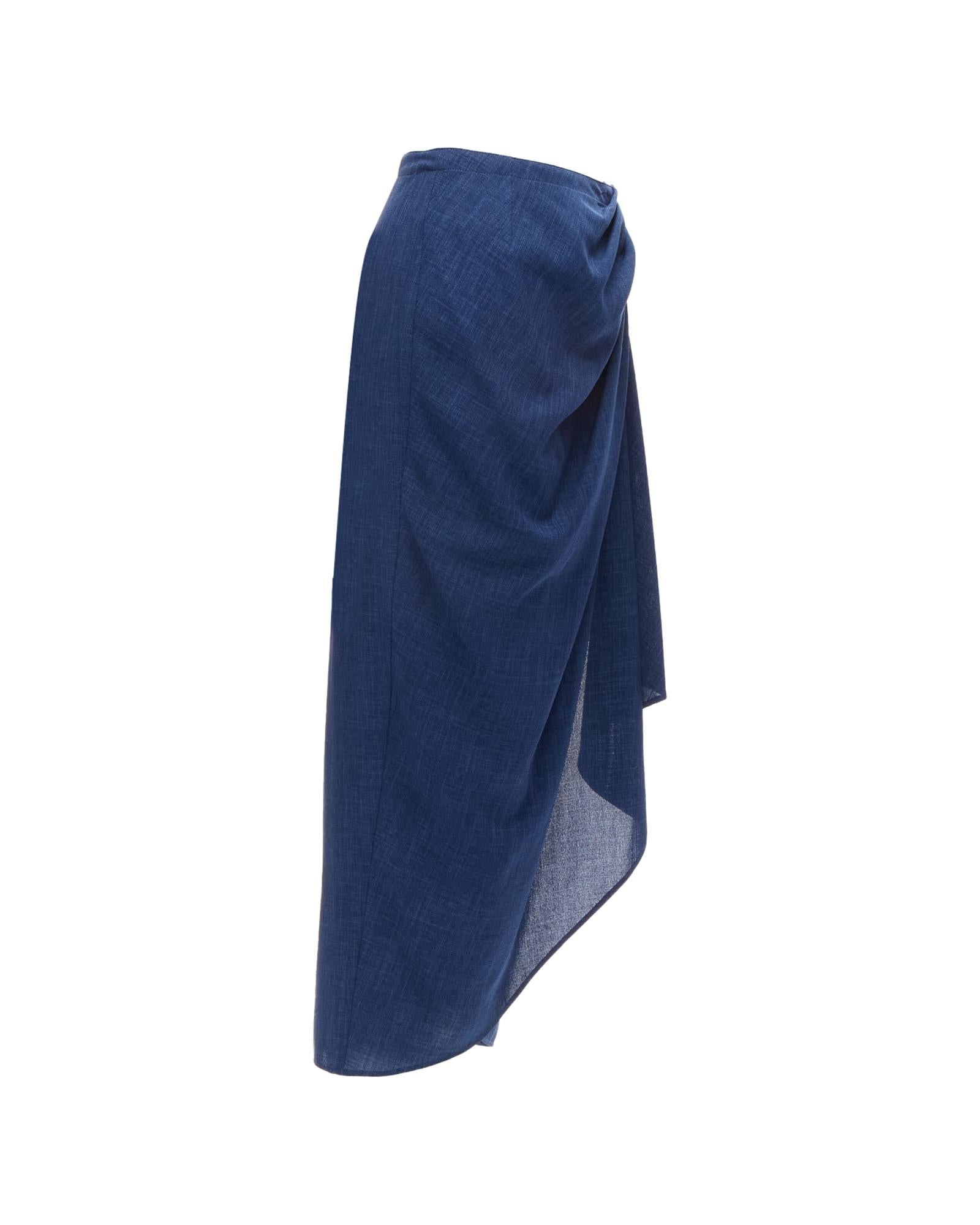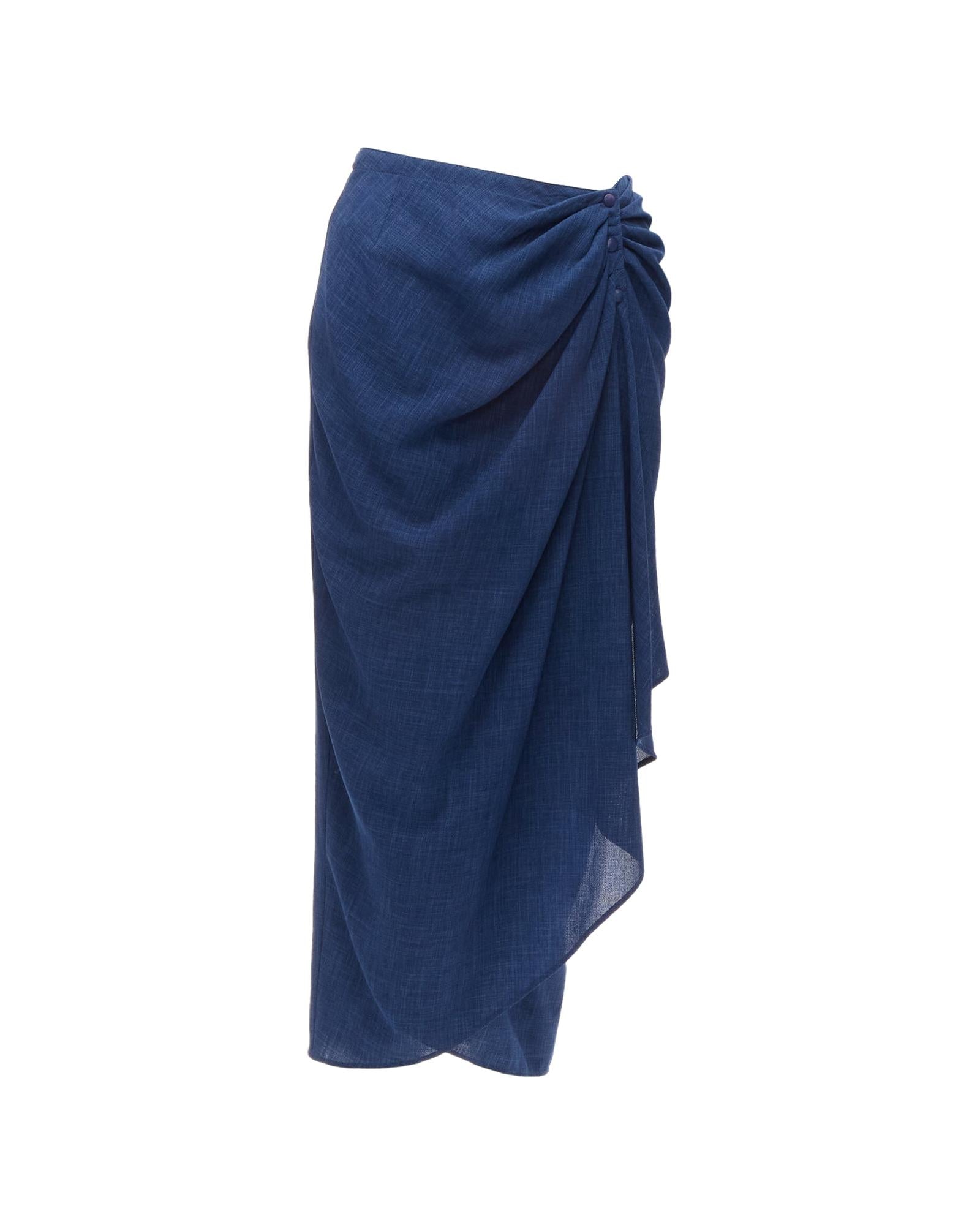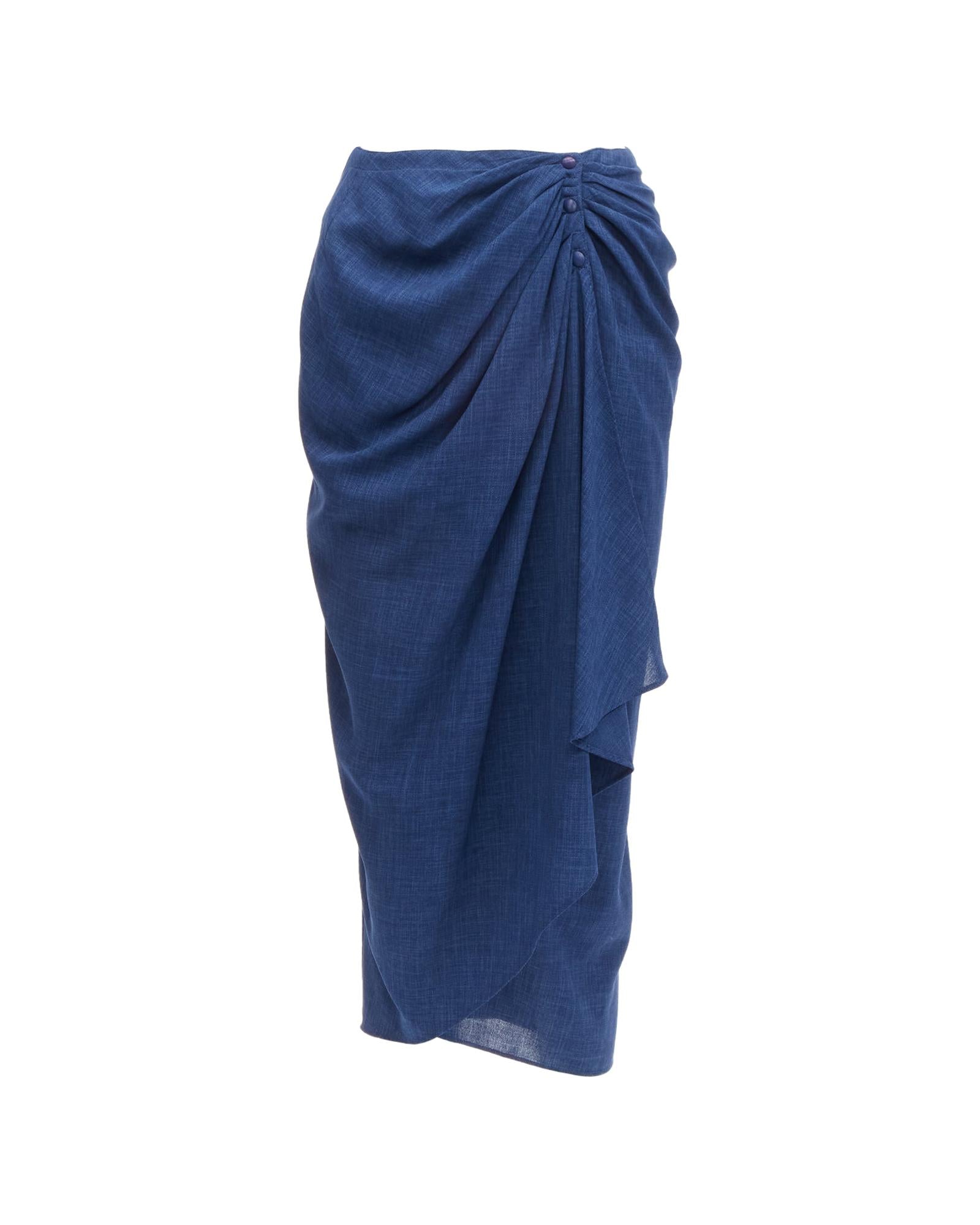 Pre-owned Draped Woven Skirt with Button Accents Elegant Drape Details