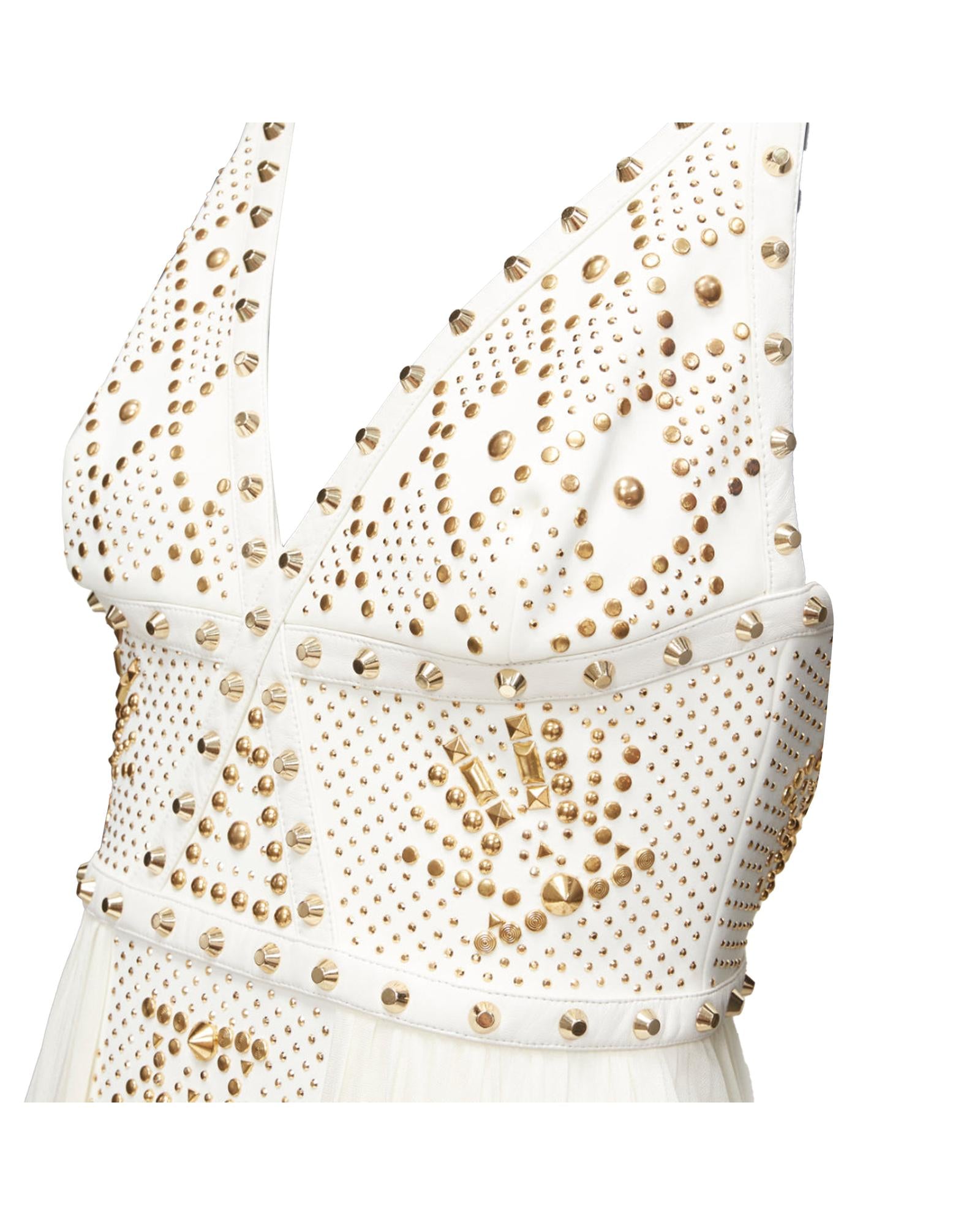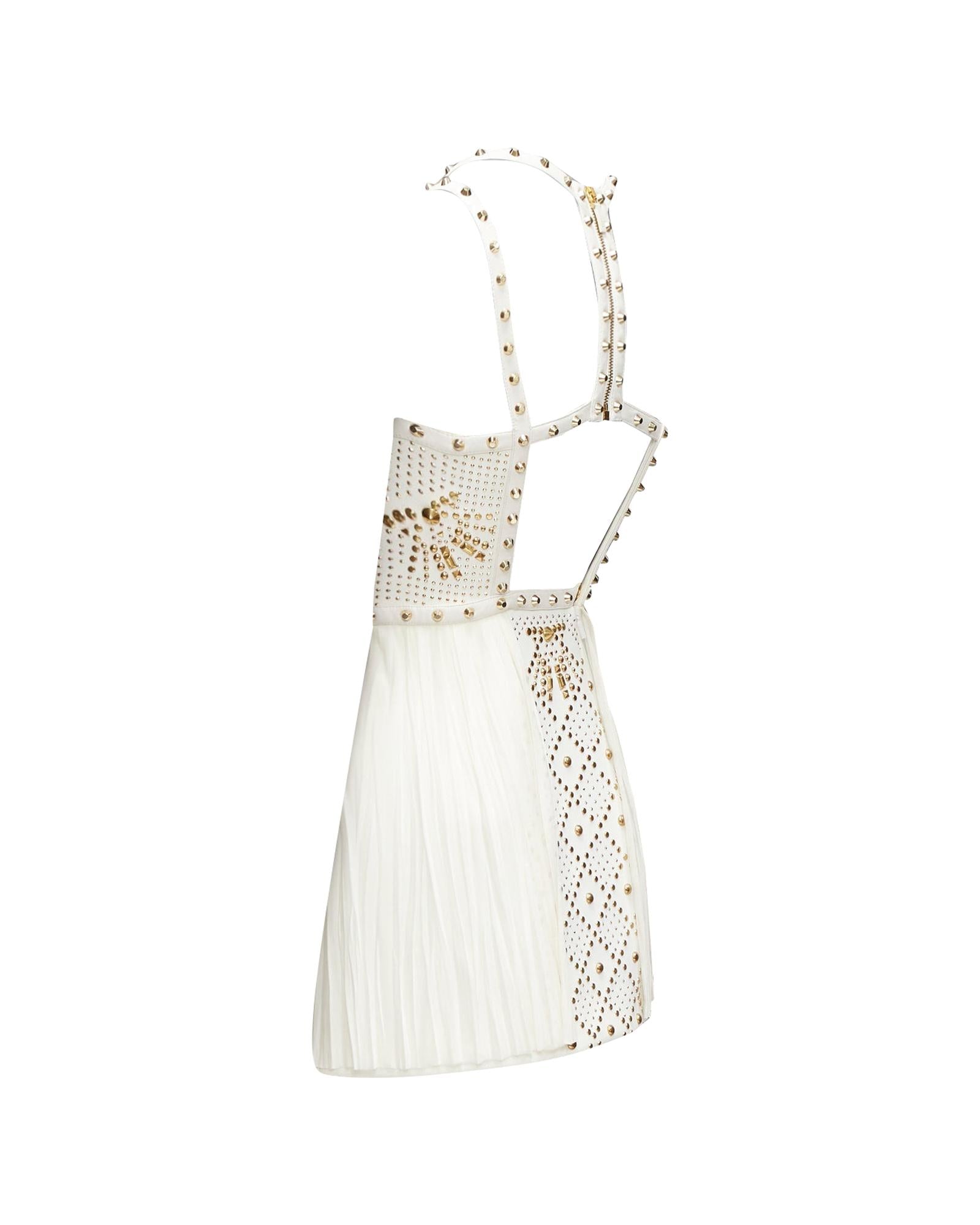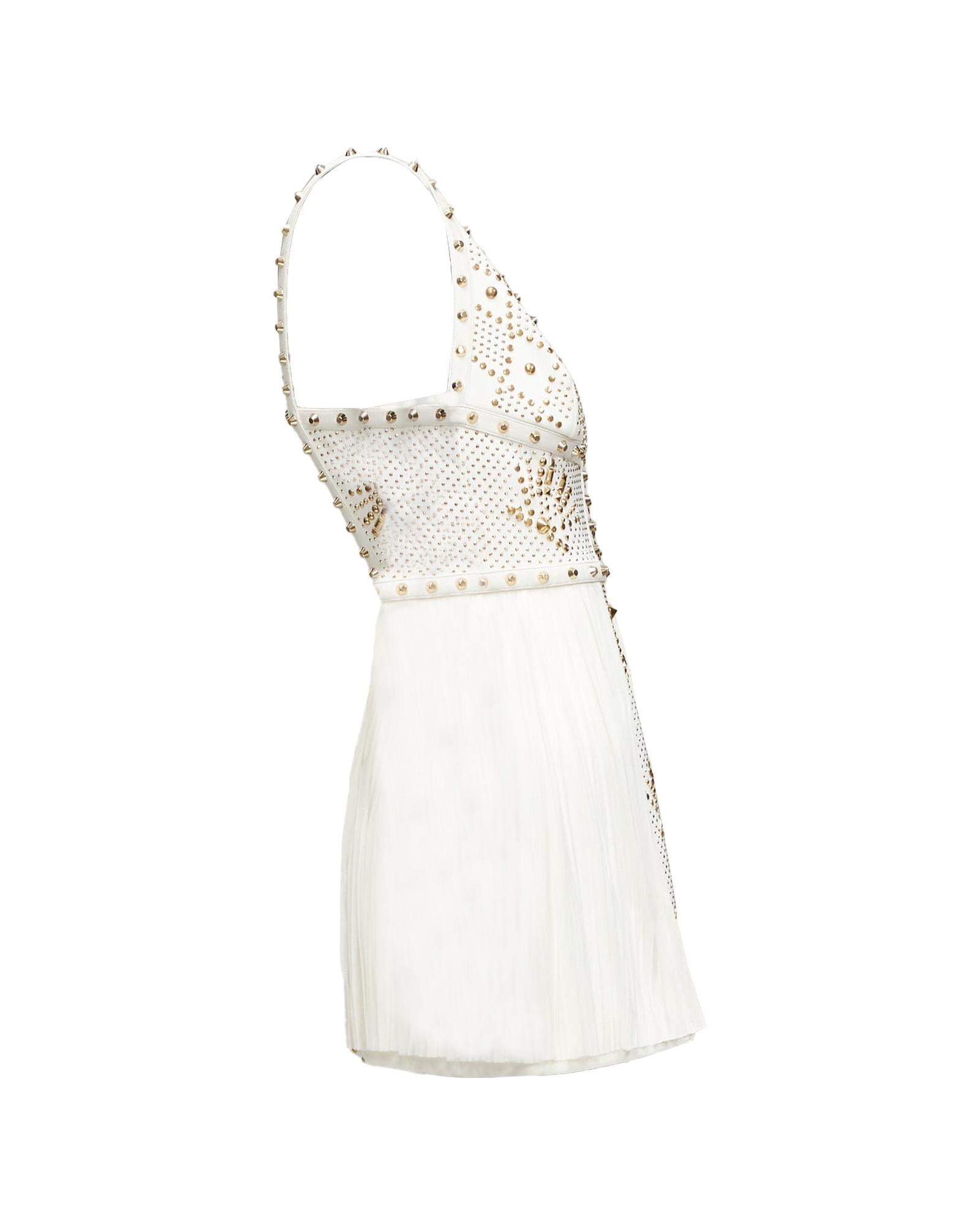 Pre-owned Embellished V-Neck Sleeveless Dress with Pleated Skirt
