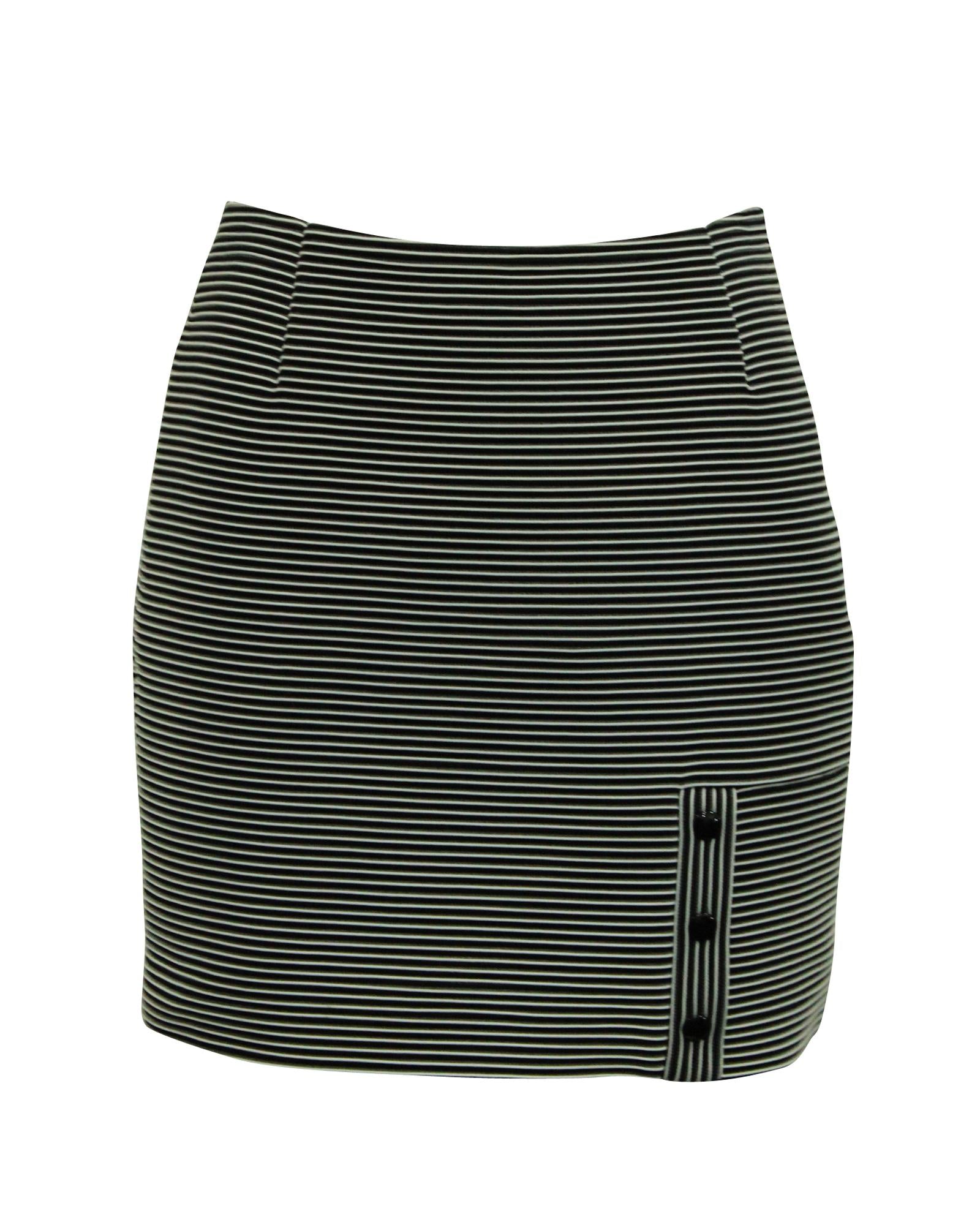 Pre-owned Striped Mini Skirt Side Button Detail
