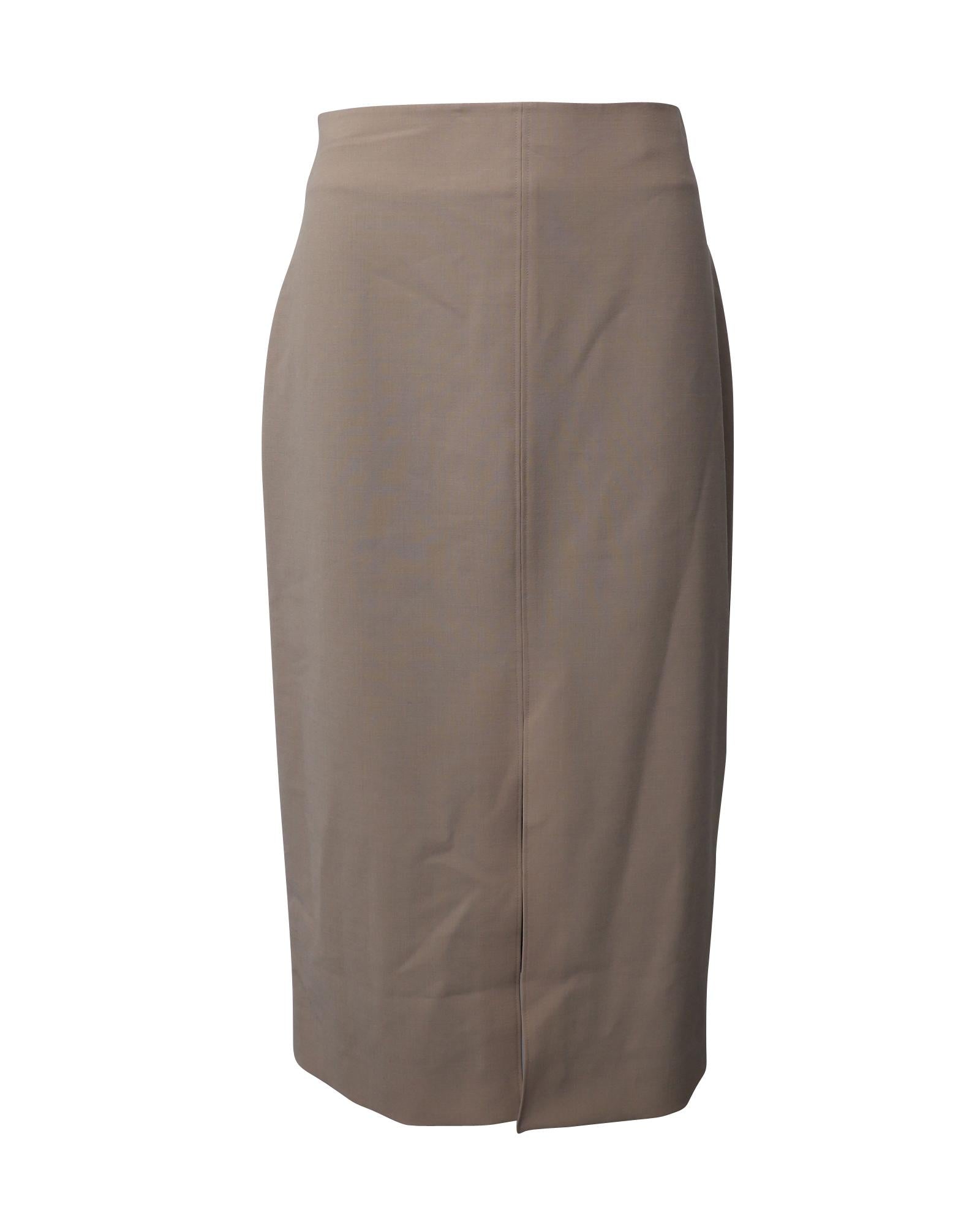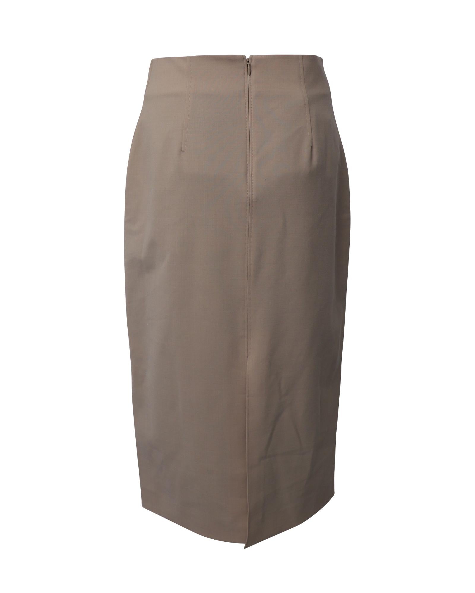 - Beige stretch wool pencil skirt by Co