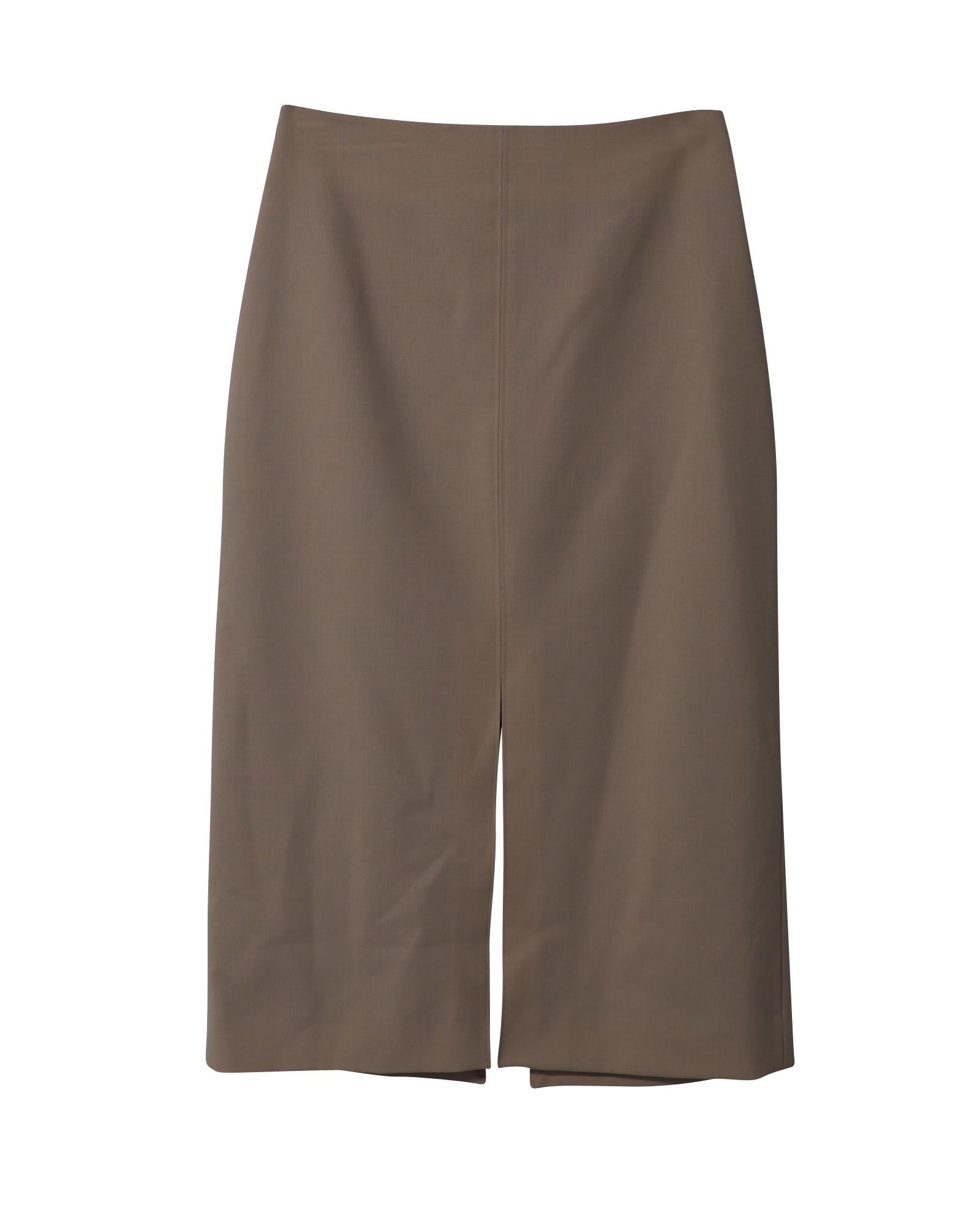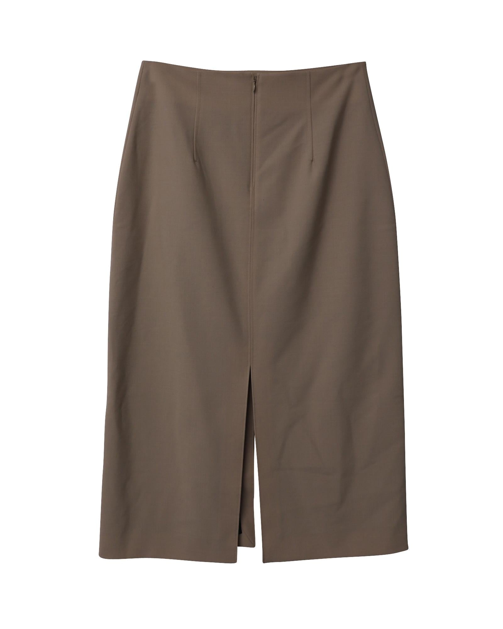 Front Slit High Waist Pencil Skirt in Stretch Wool