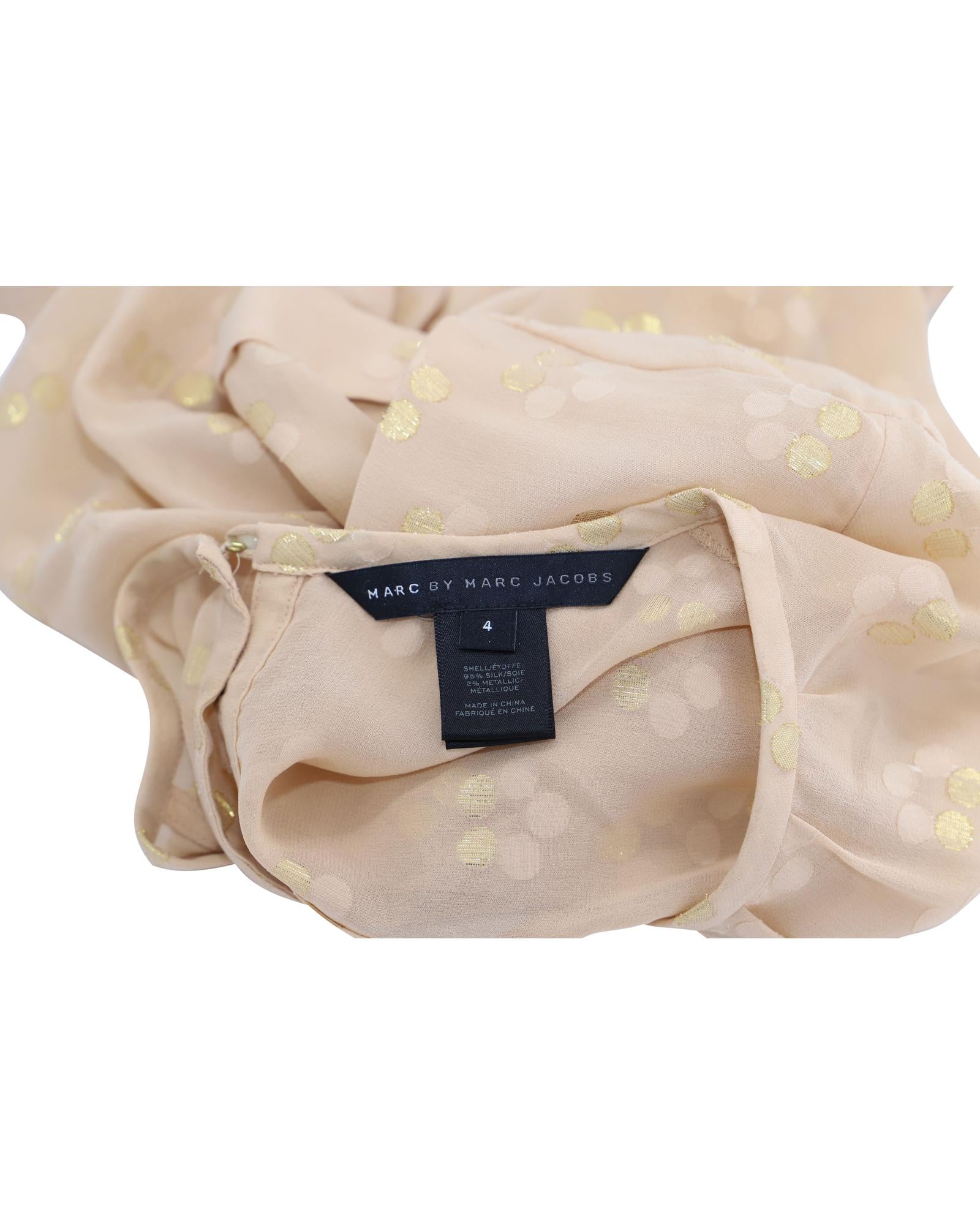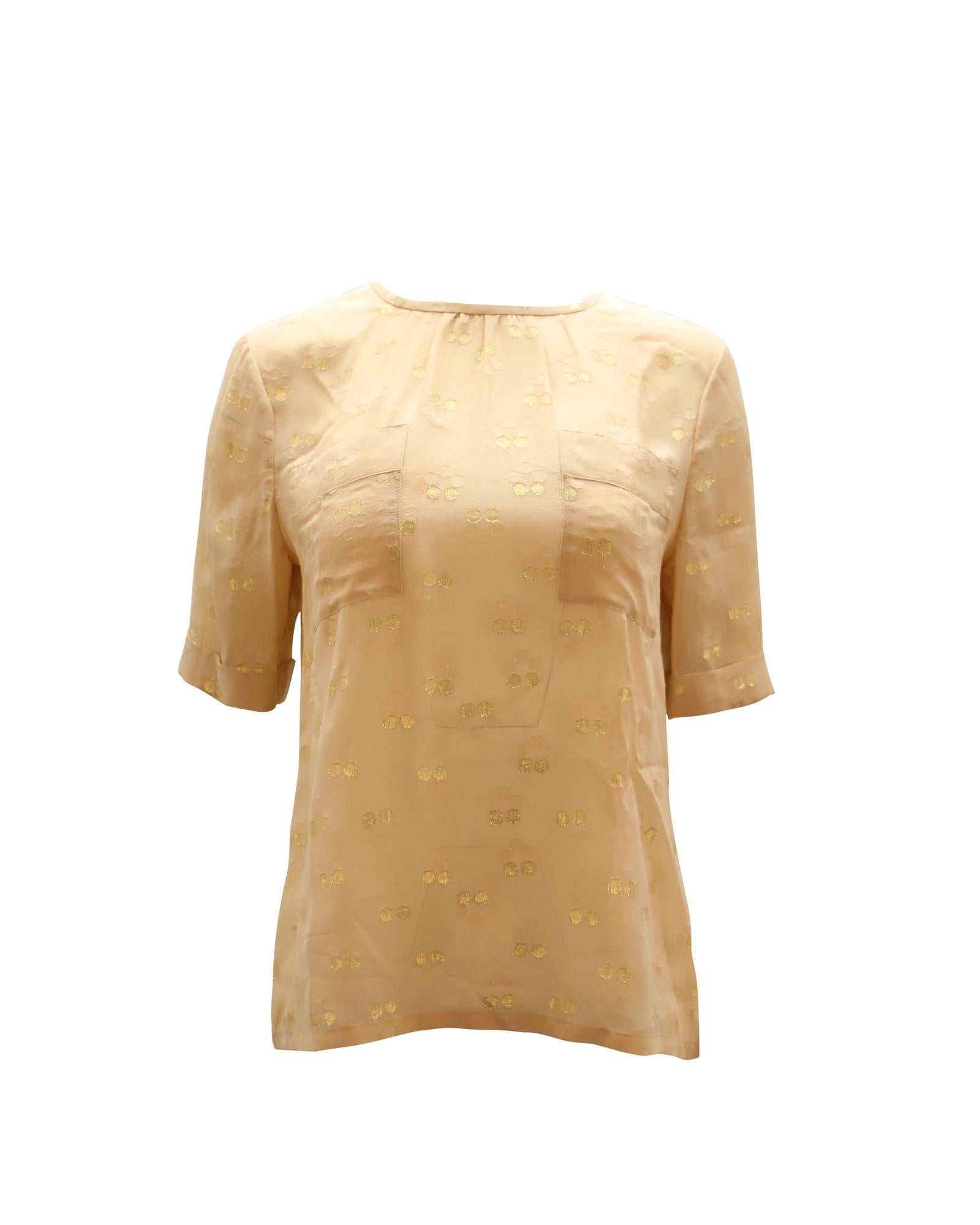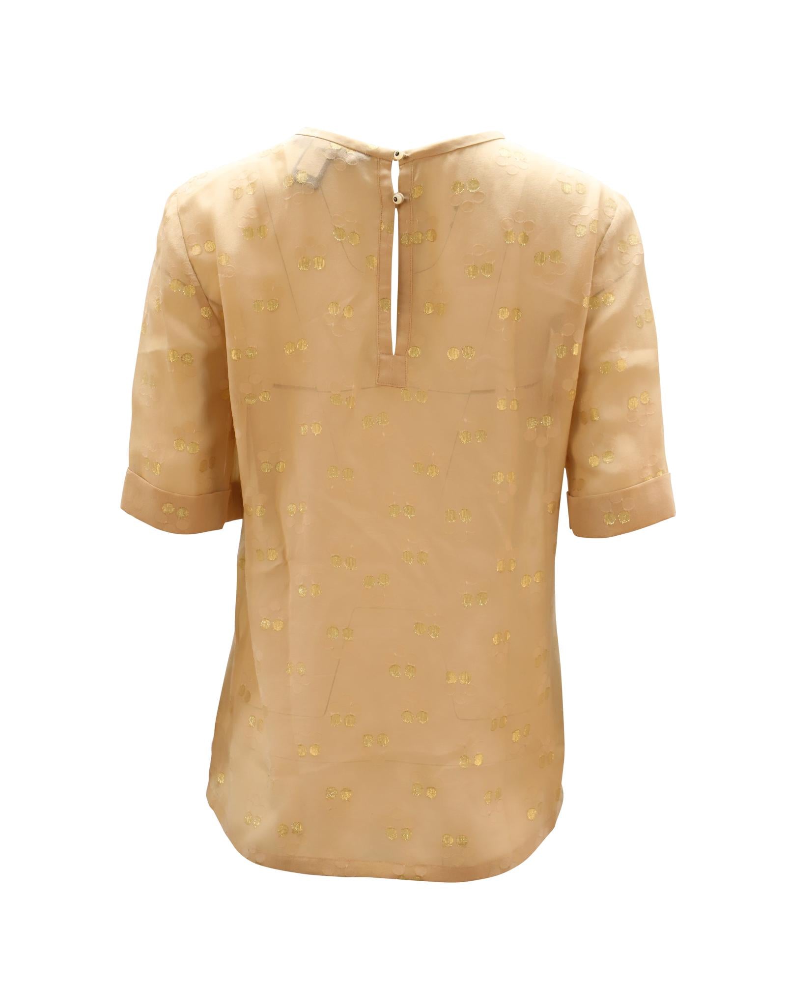 Pre-owned Silk Blouse Short Sleeves Gold Print
