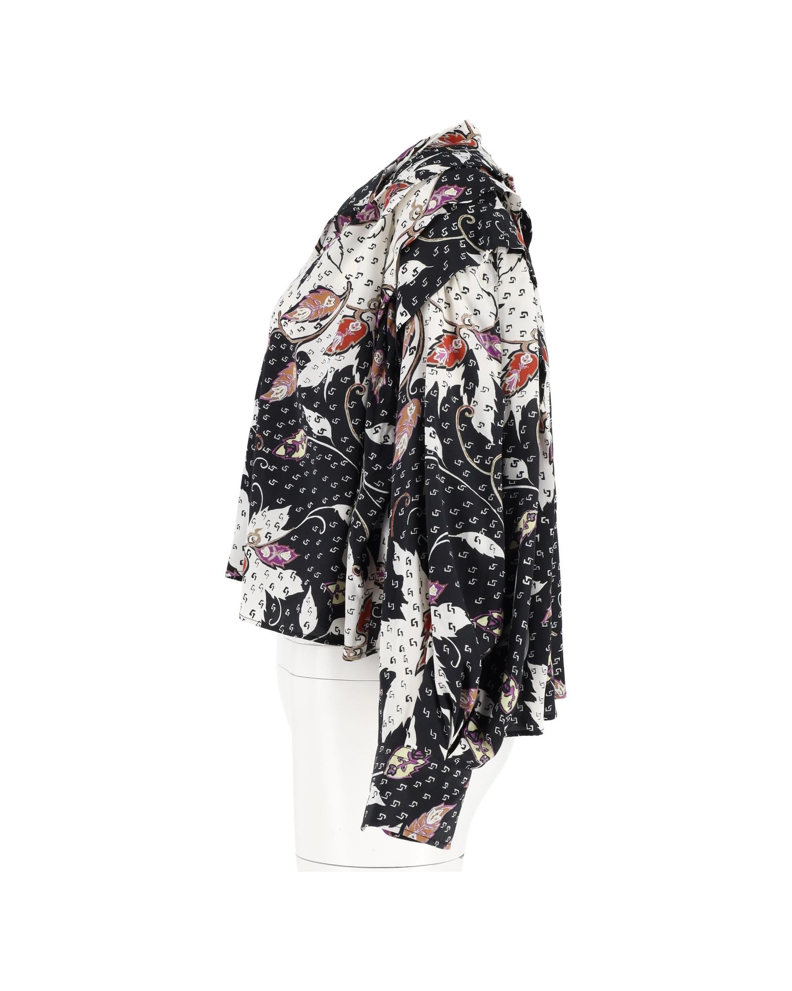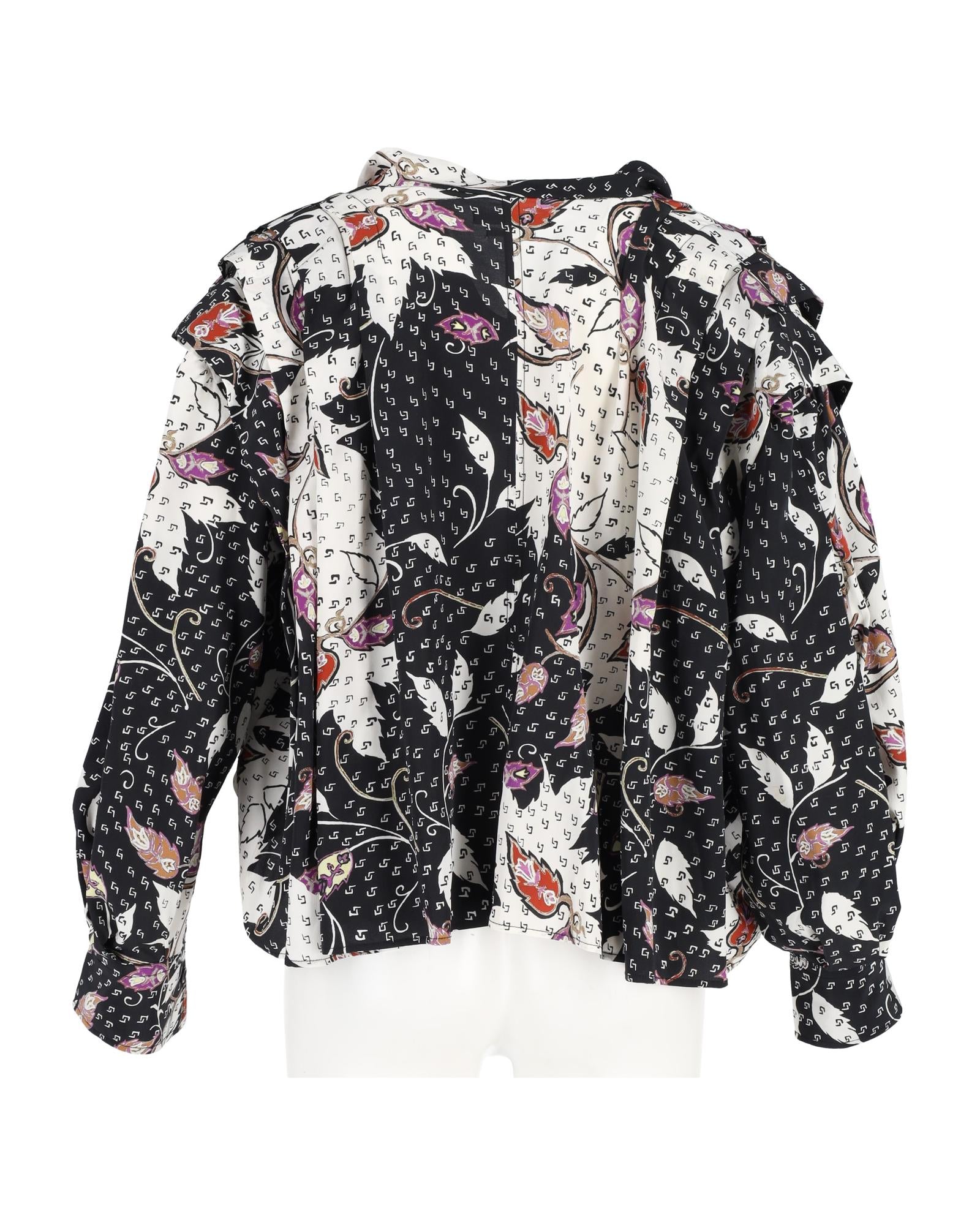Pre-owned Floral Print Silk Blouse Ruffled Hem