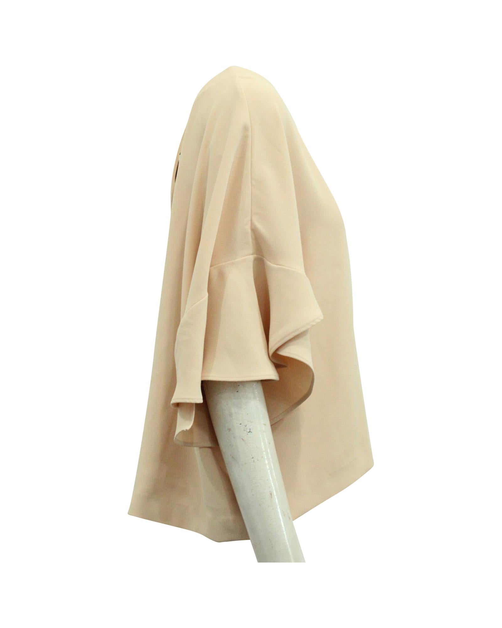 - Loose silhouette with drop shoulders and draped sleeves