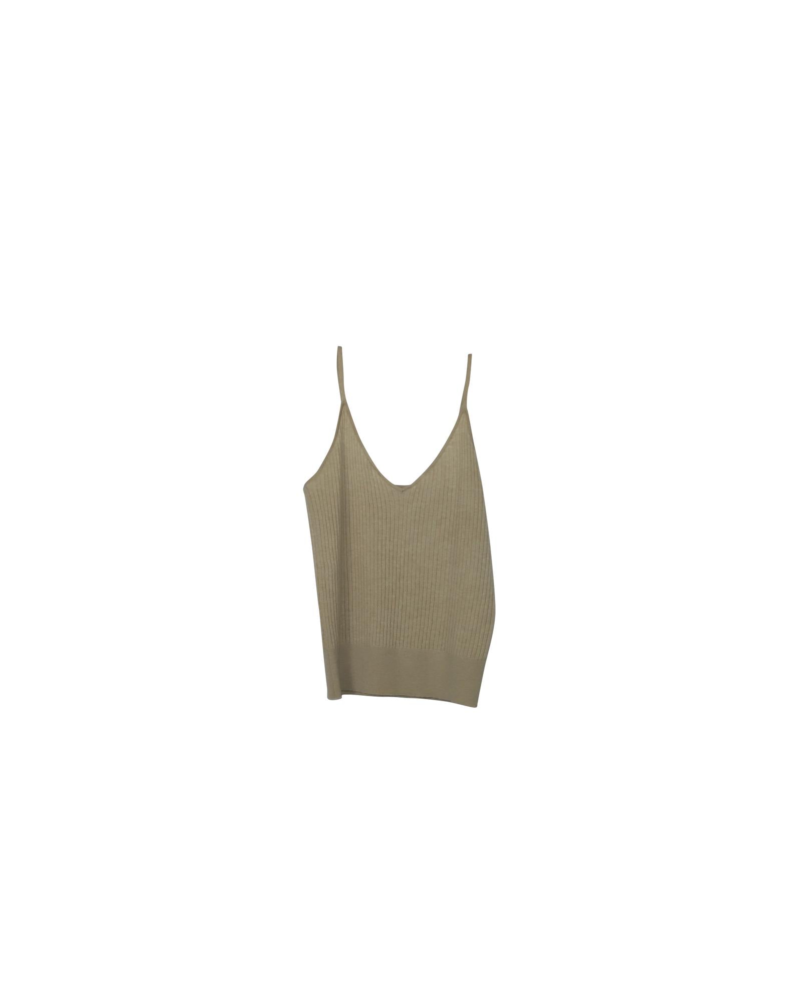 Tamara Mellon Ribbed Camisole Top in Beige Cashmere