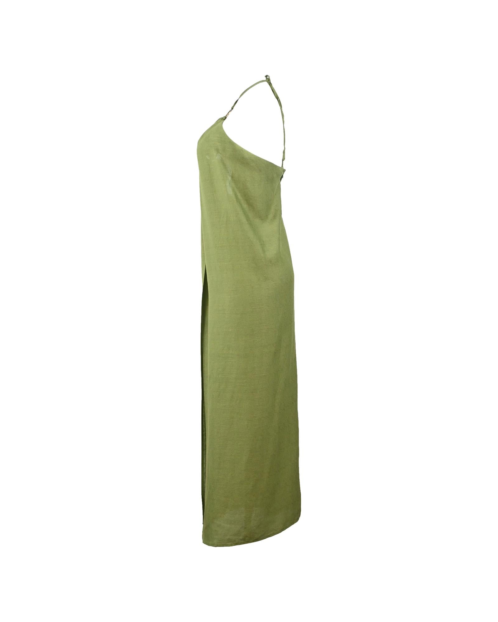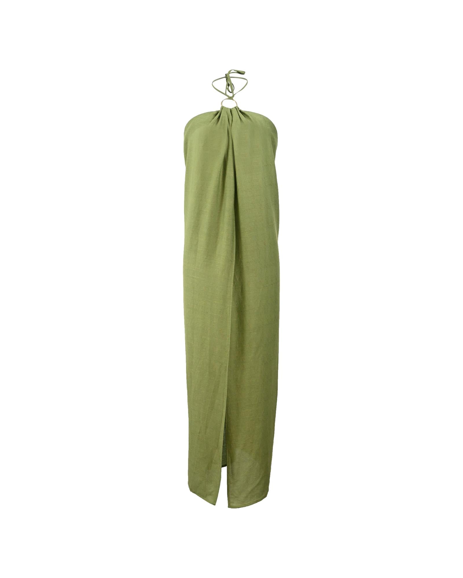 • Cult Gaia Sarah Halter Long Top in Green Linen