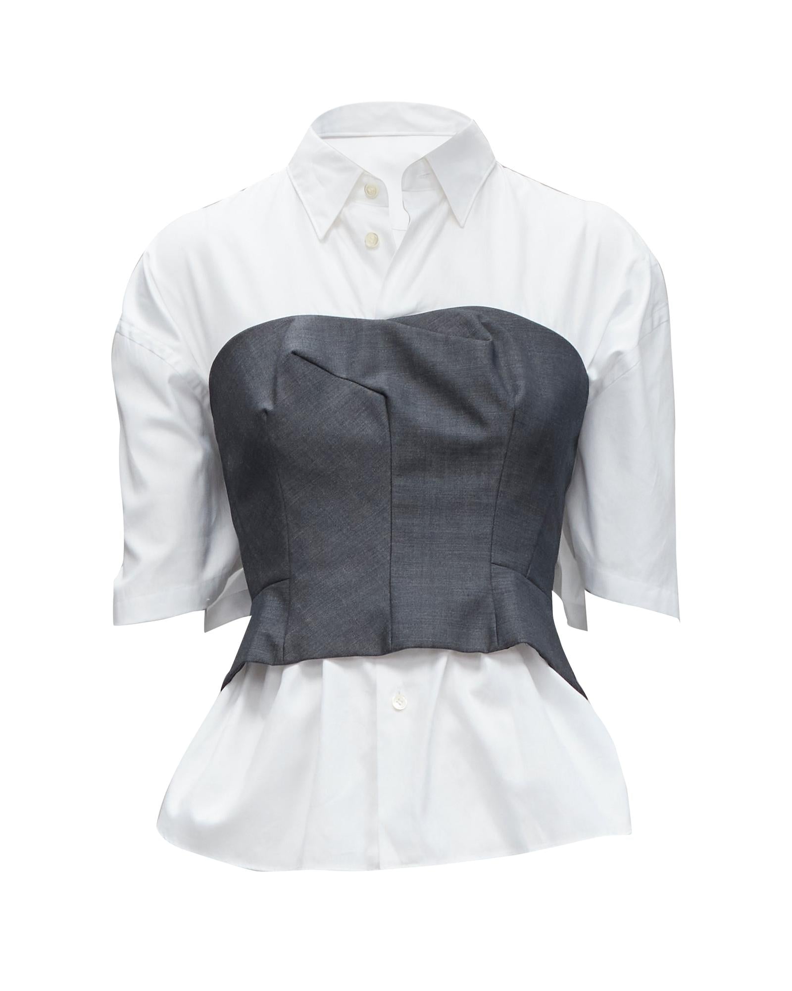 Pre-owned Fashionable Layered Look Shirt with Fitted Corset Top
