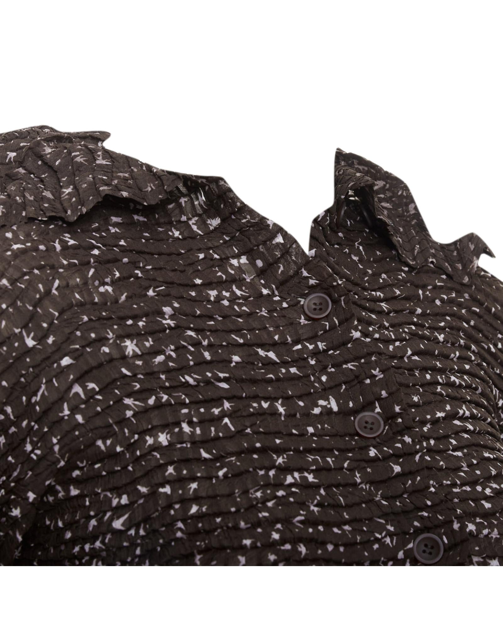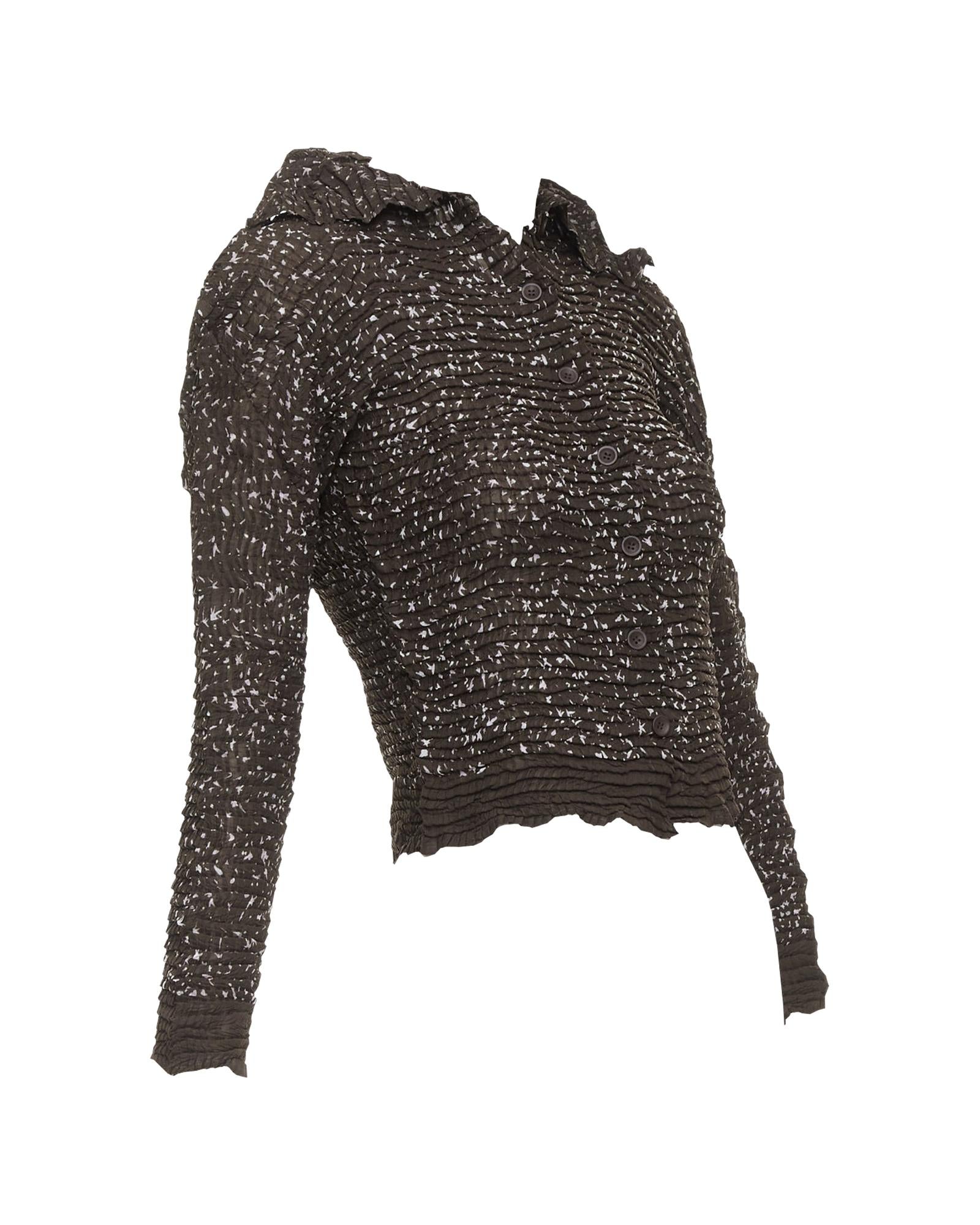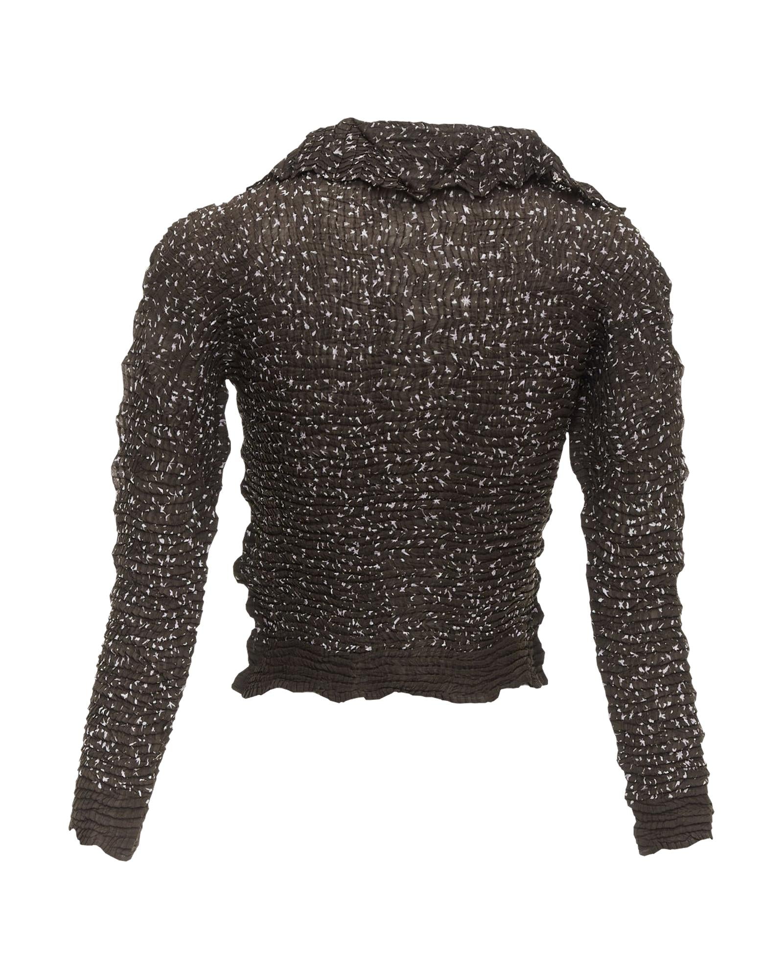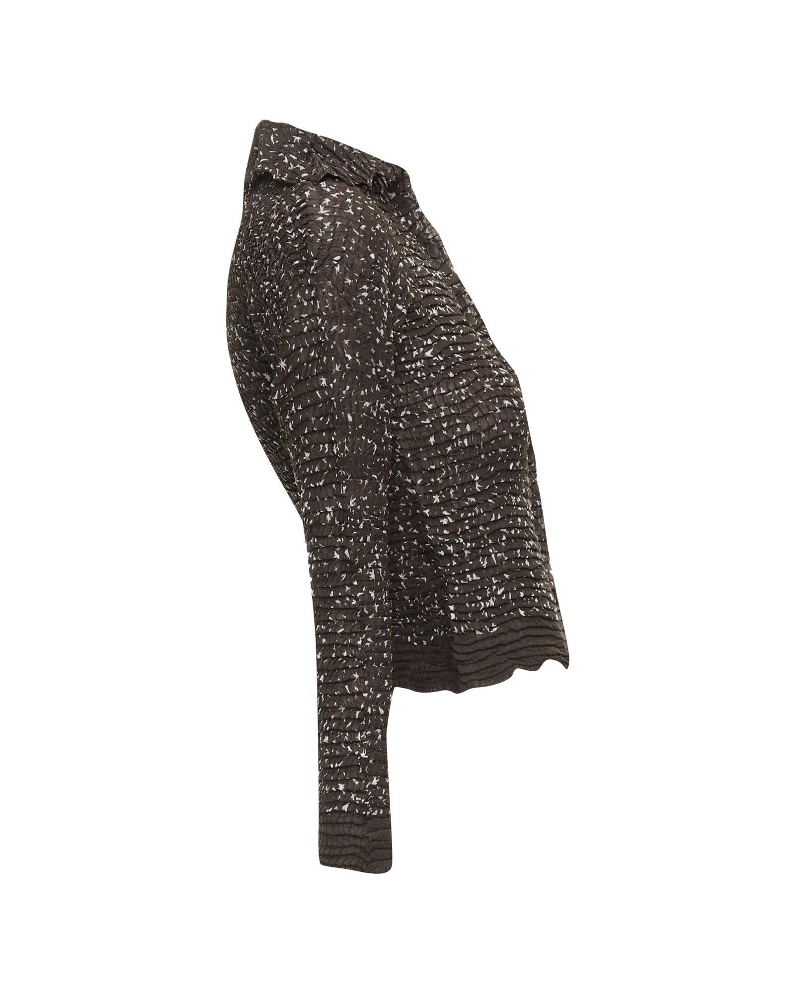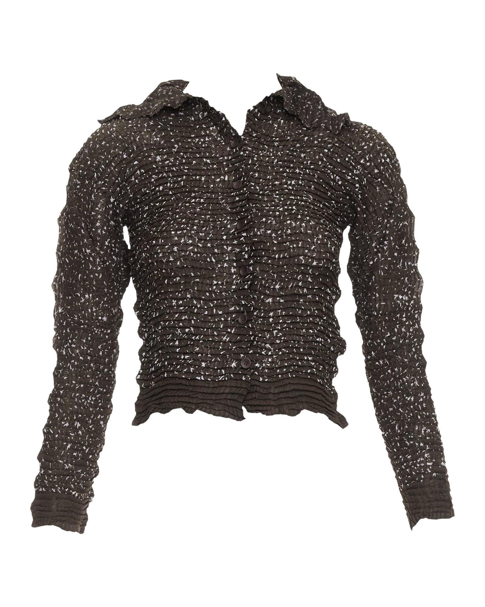 Pre-owned Textured Button-Front Shirt with Long Sleeves Classic Collar