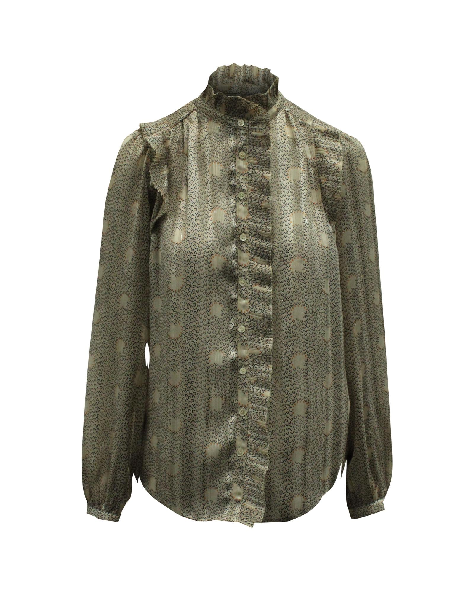 - Ba&Sh Ruffled Shirt in Brown Silk