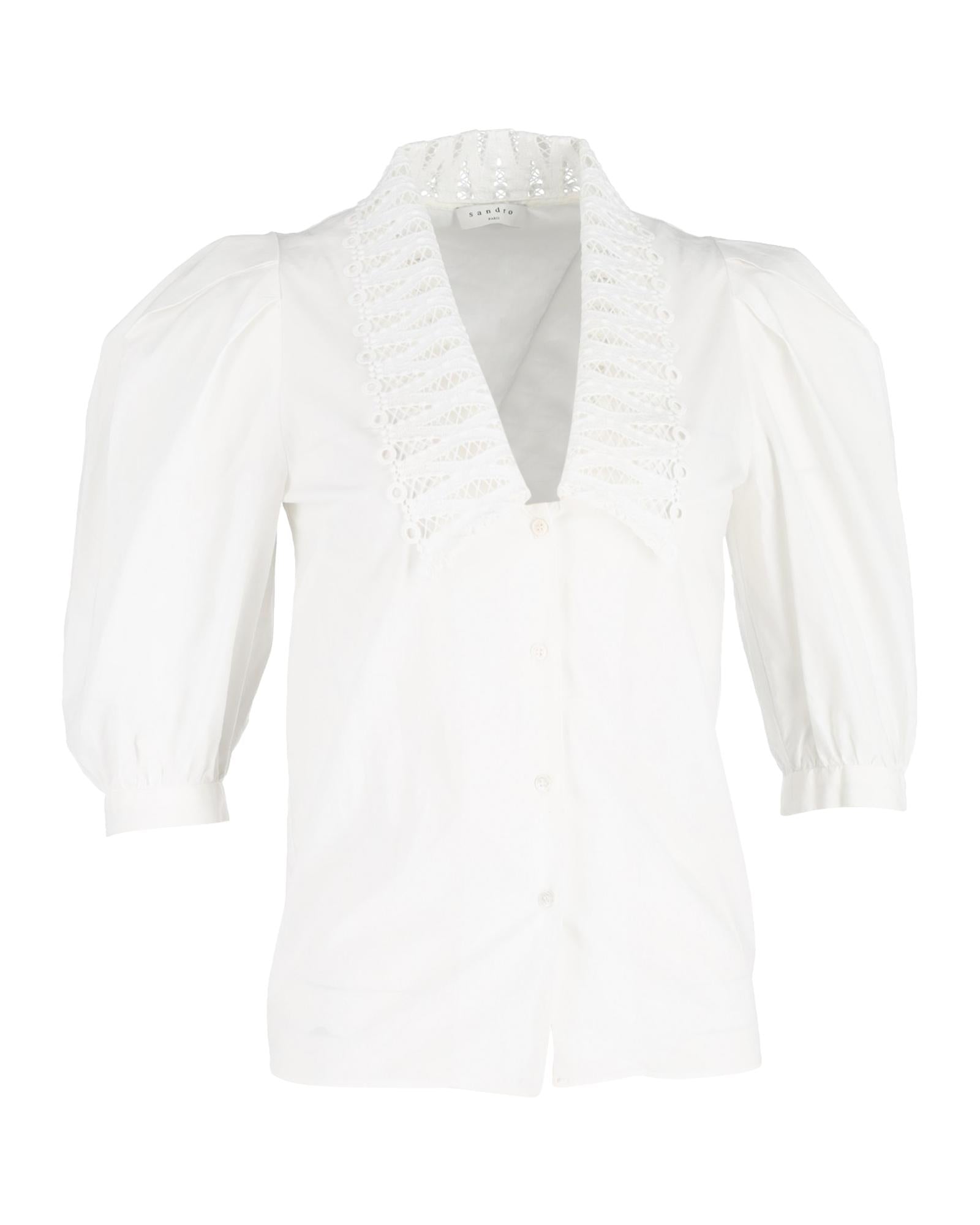 Pre-owned LaceDetailed Puff Sleeve Blouse