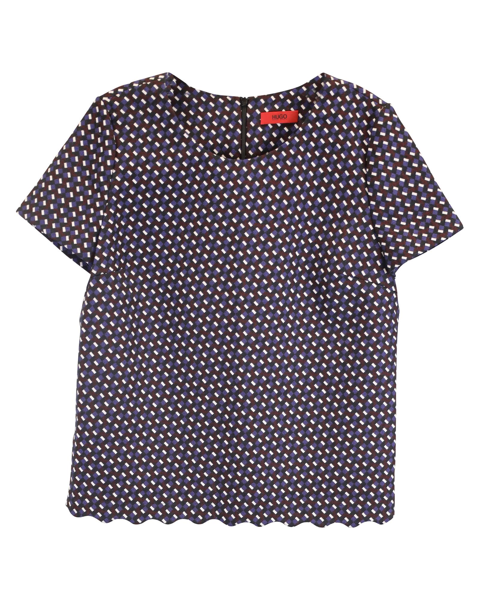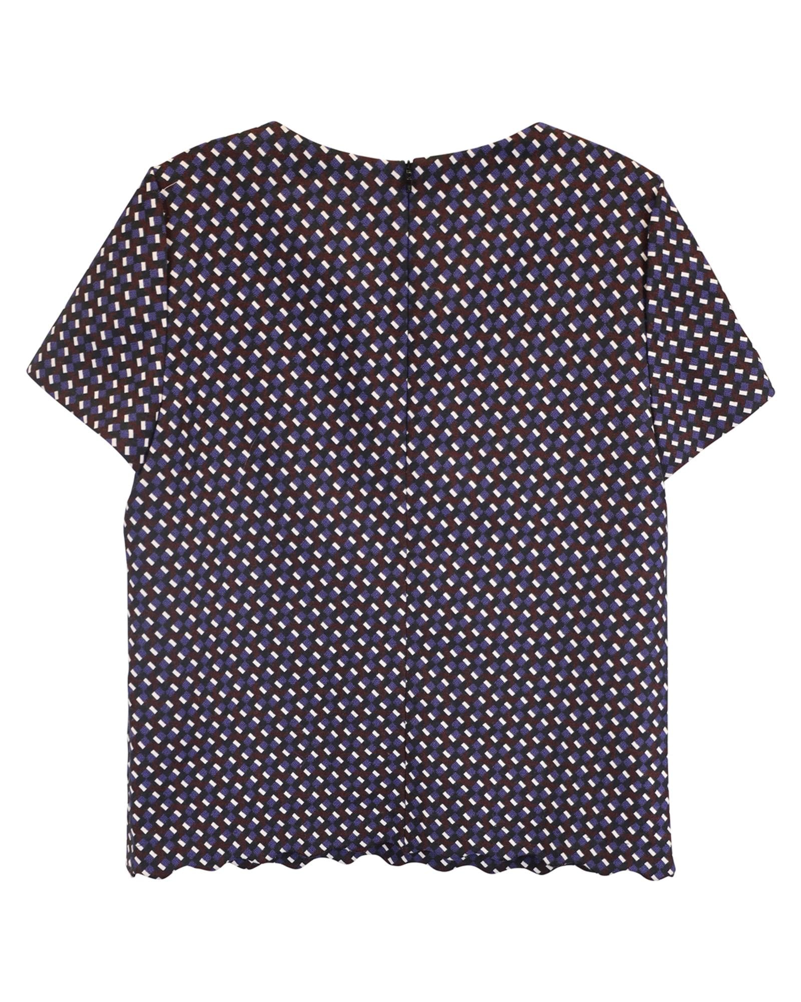Pre-owned Printed Short Sleeve Top Scalloped Hem