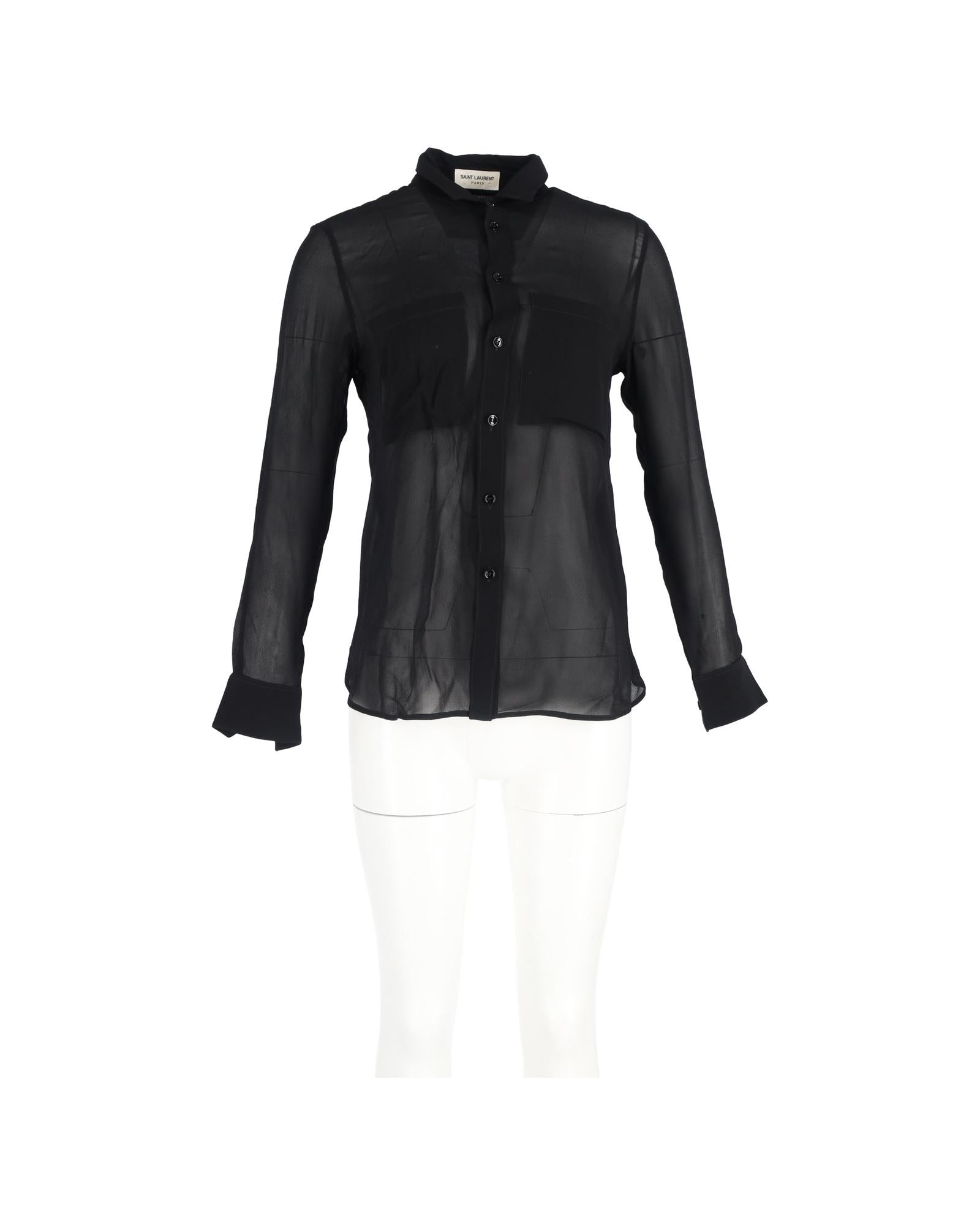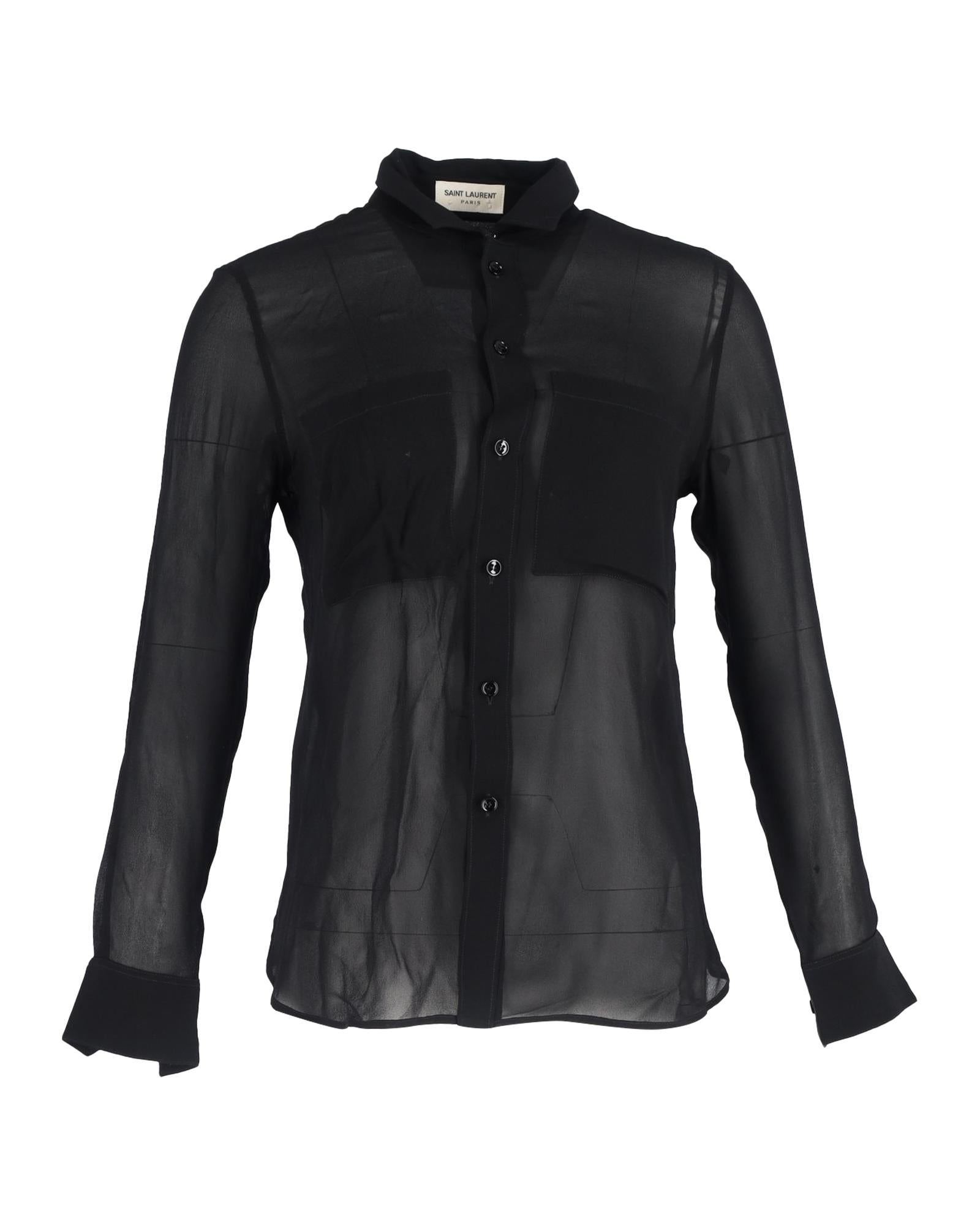 - Saint Laurent Sheer Long Sleeve Shirt in Black Silk