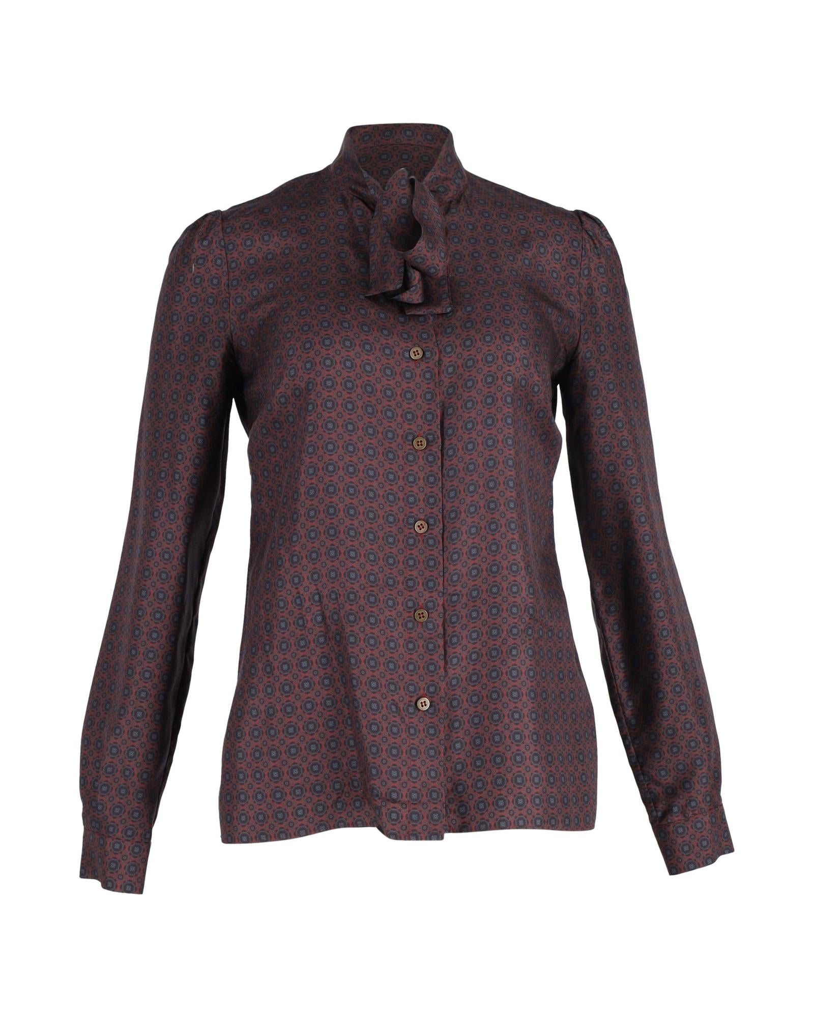 - Dolce & Gabbana Printed Blouse in Burgundy Silk