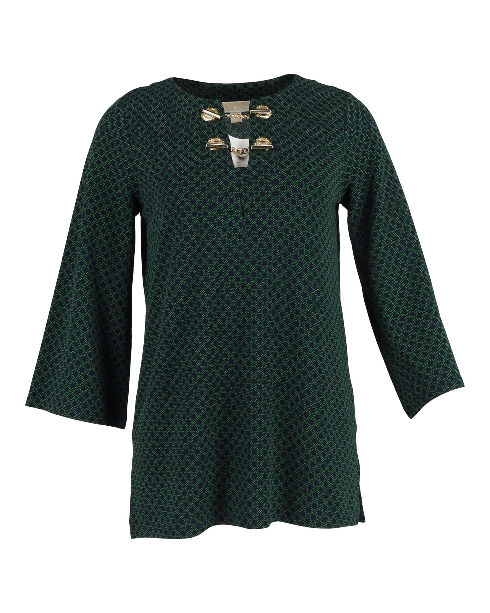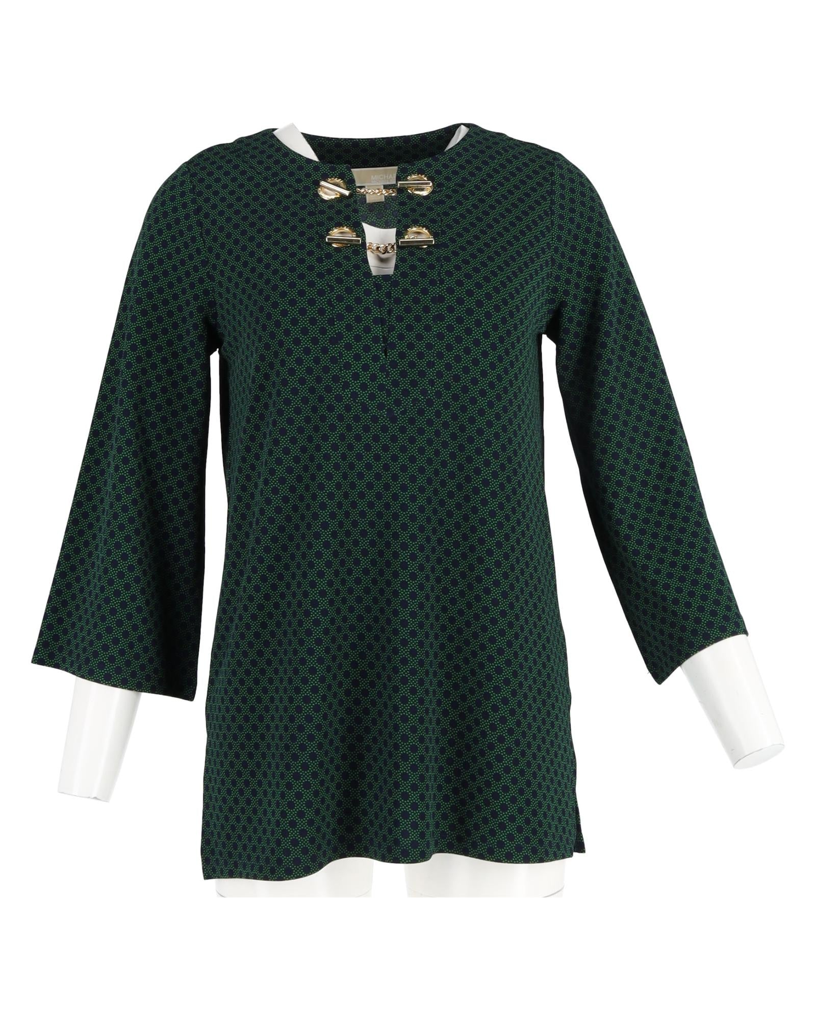 • Michael Kors Polka Dot Print with Gold Embellishment Blouse in Green Polyester
