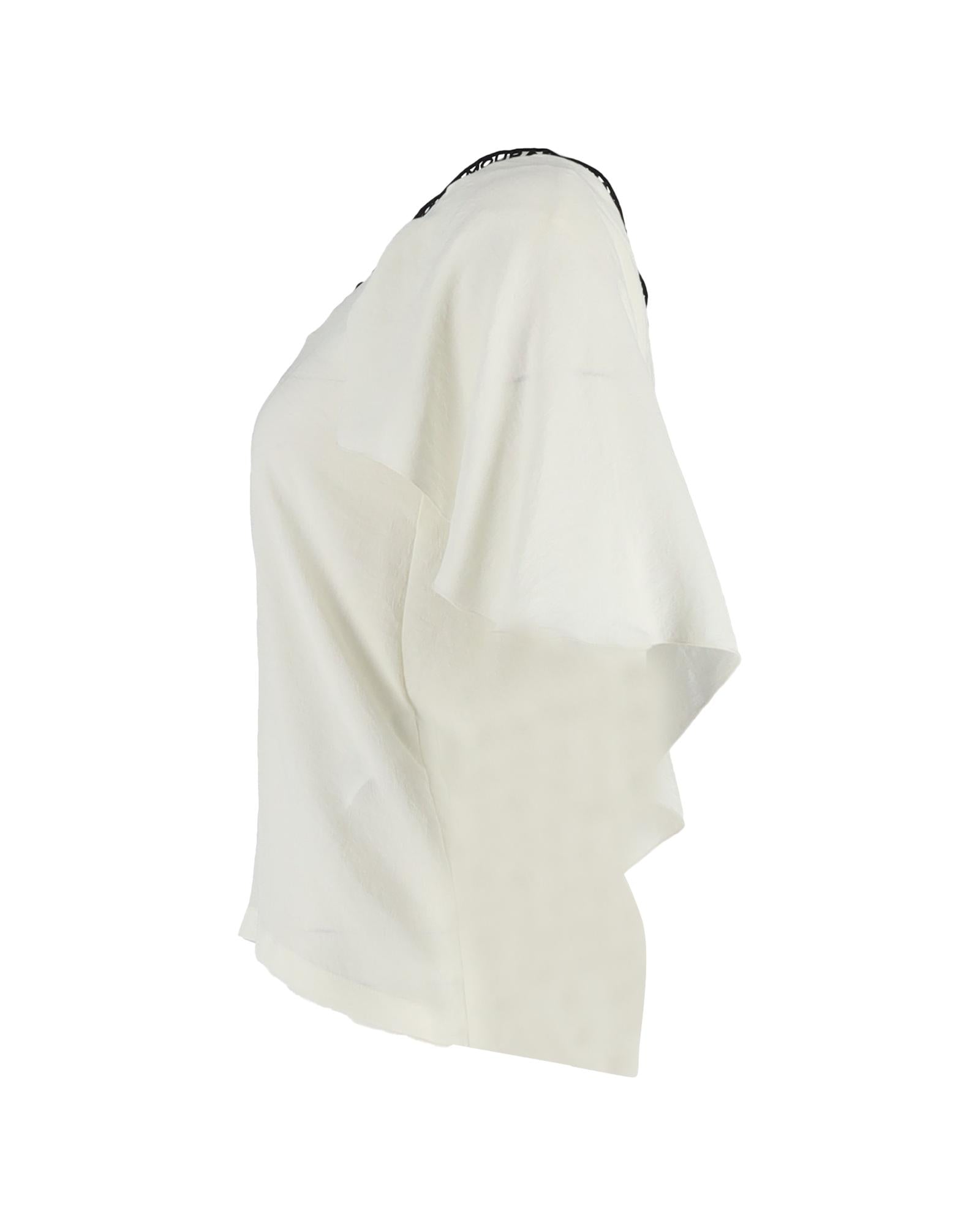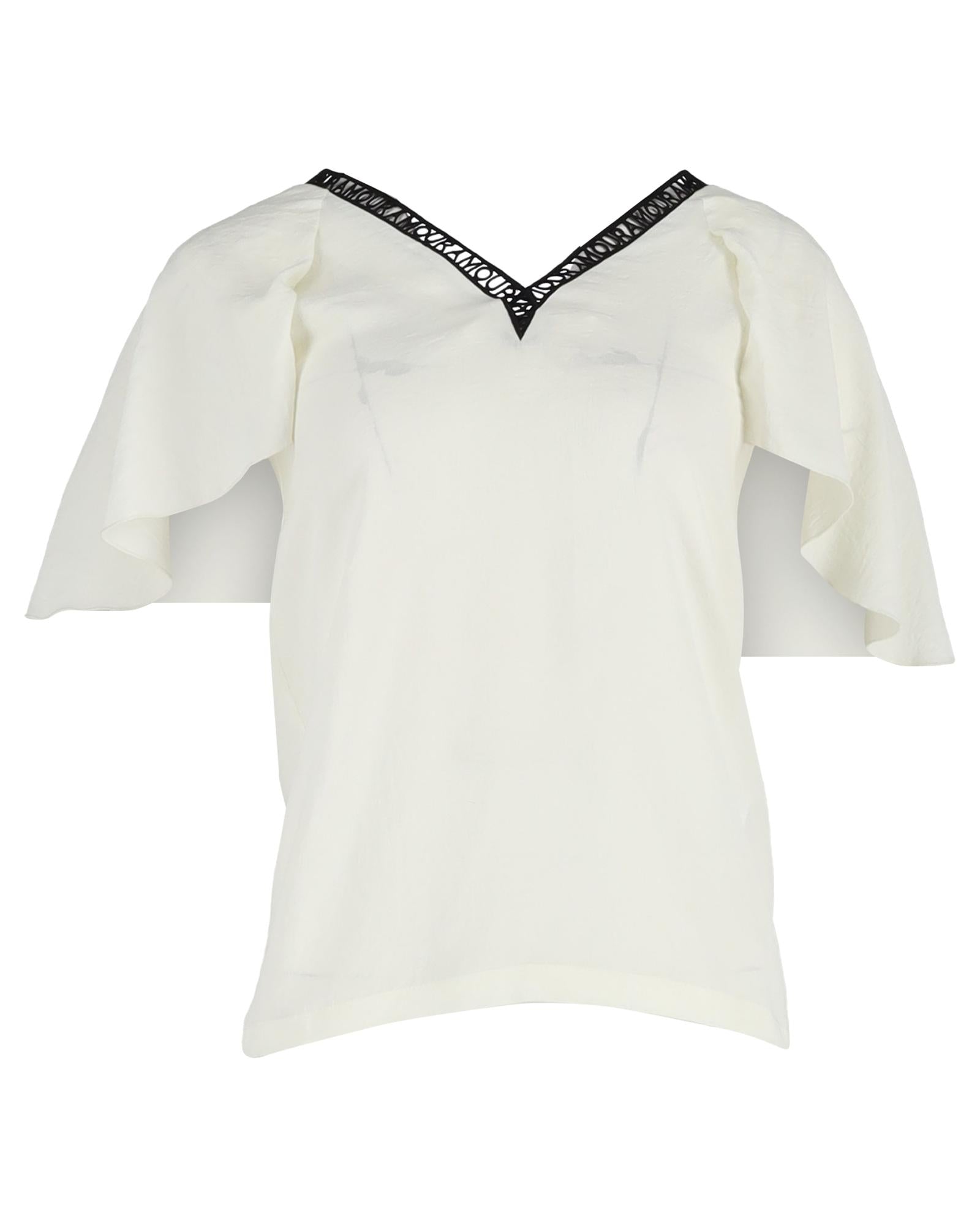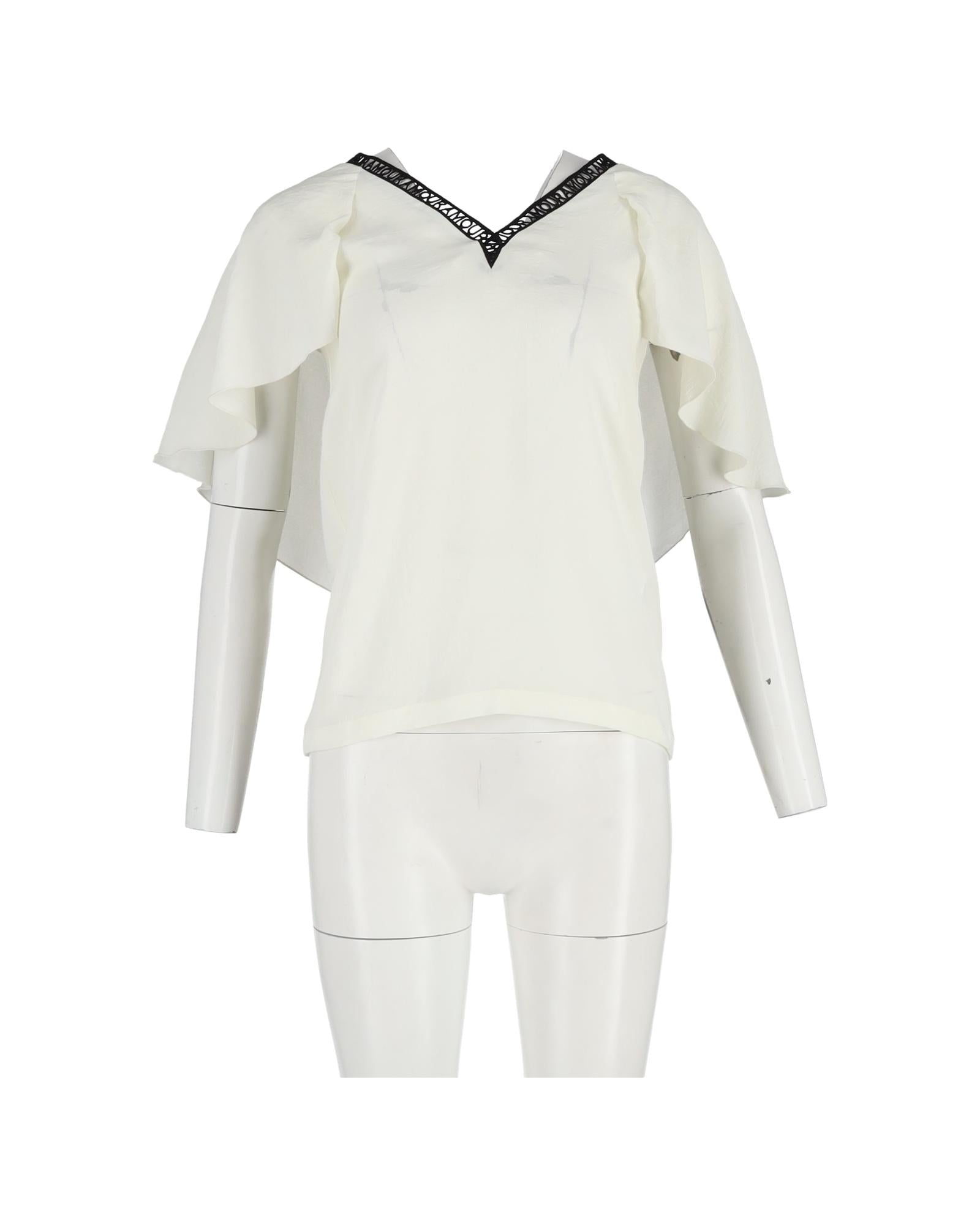 Elegant V-Neck Blouse with Delicate Pleating and Feminine Silhouette