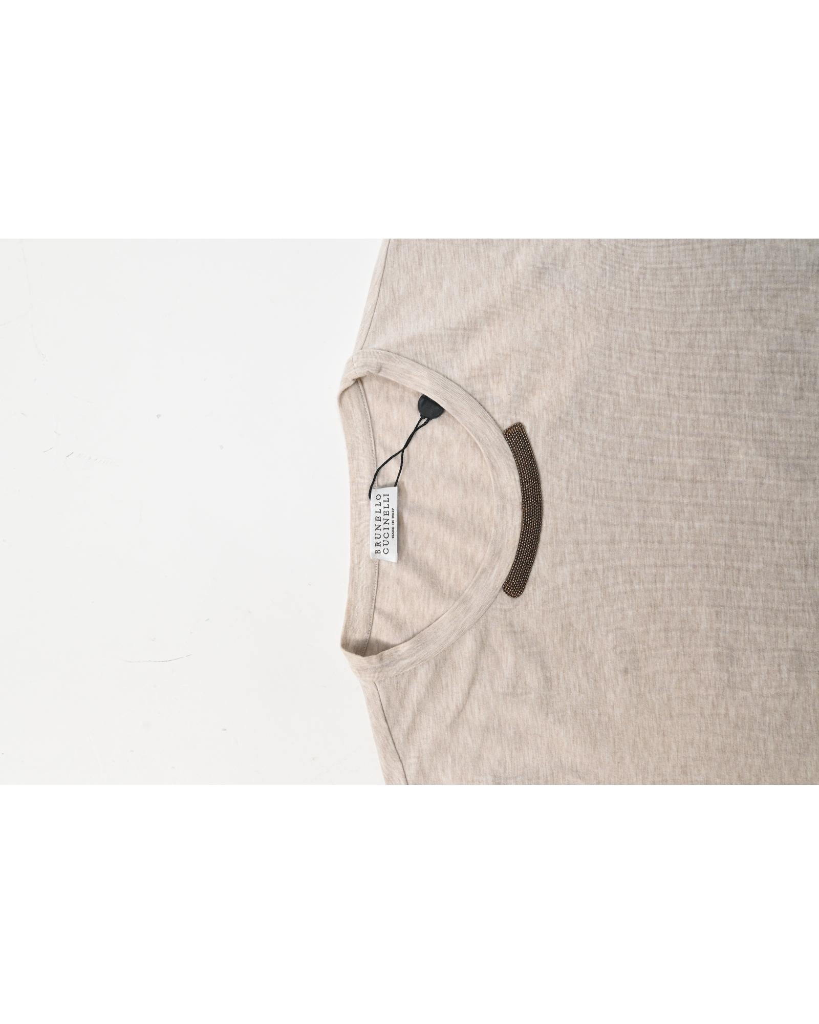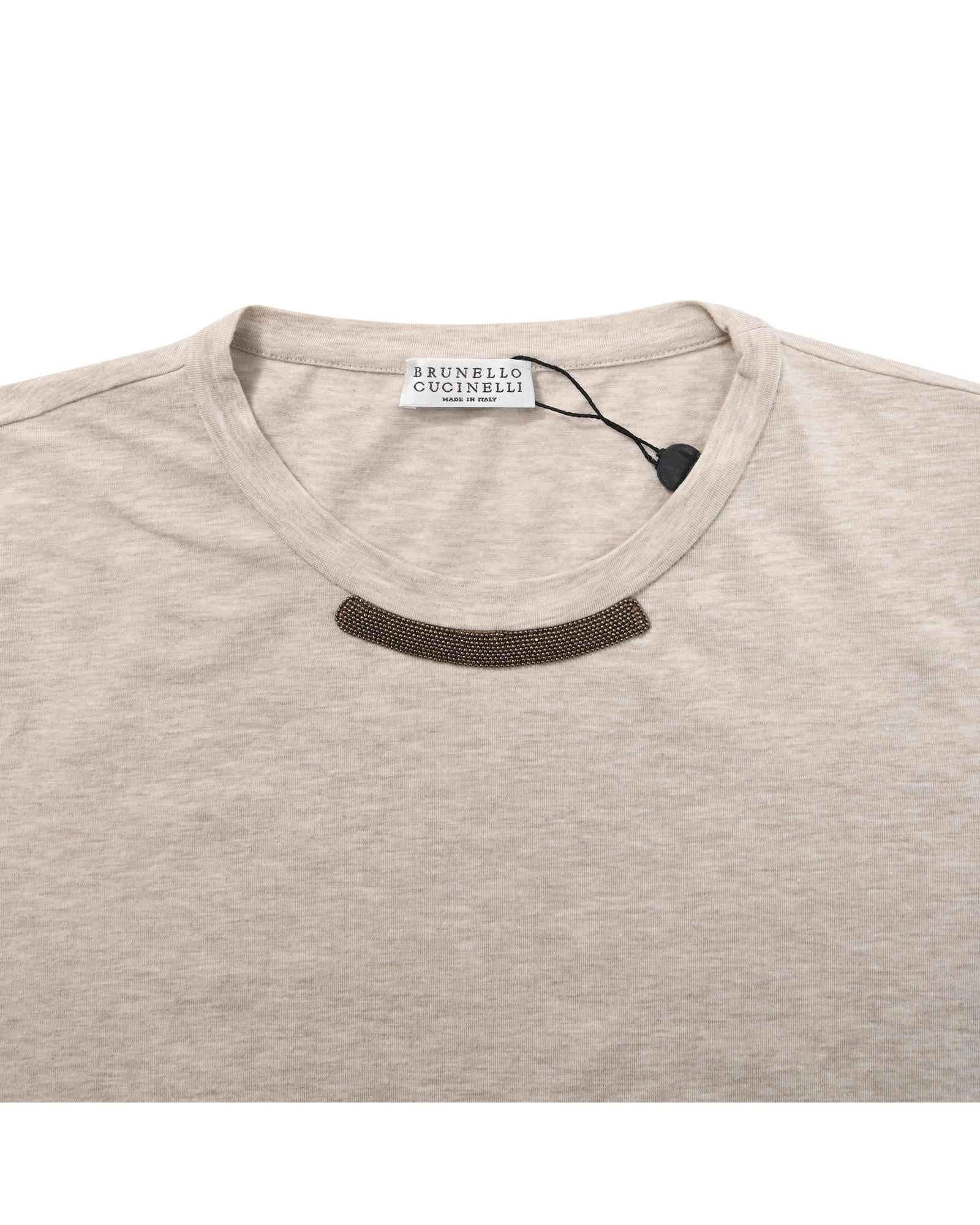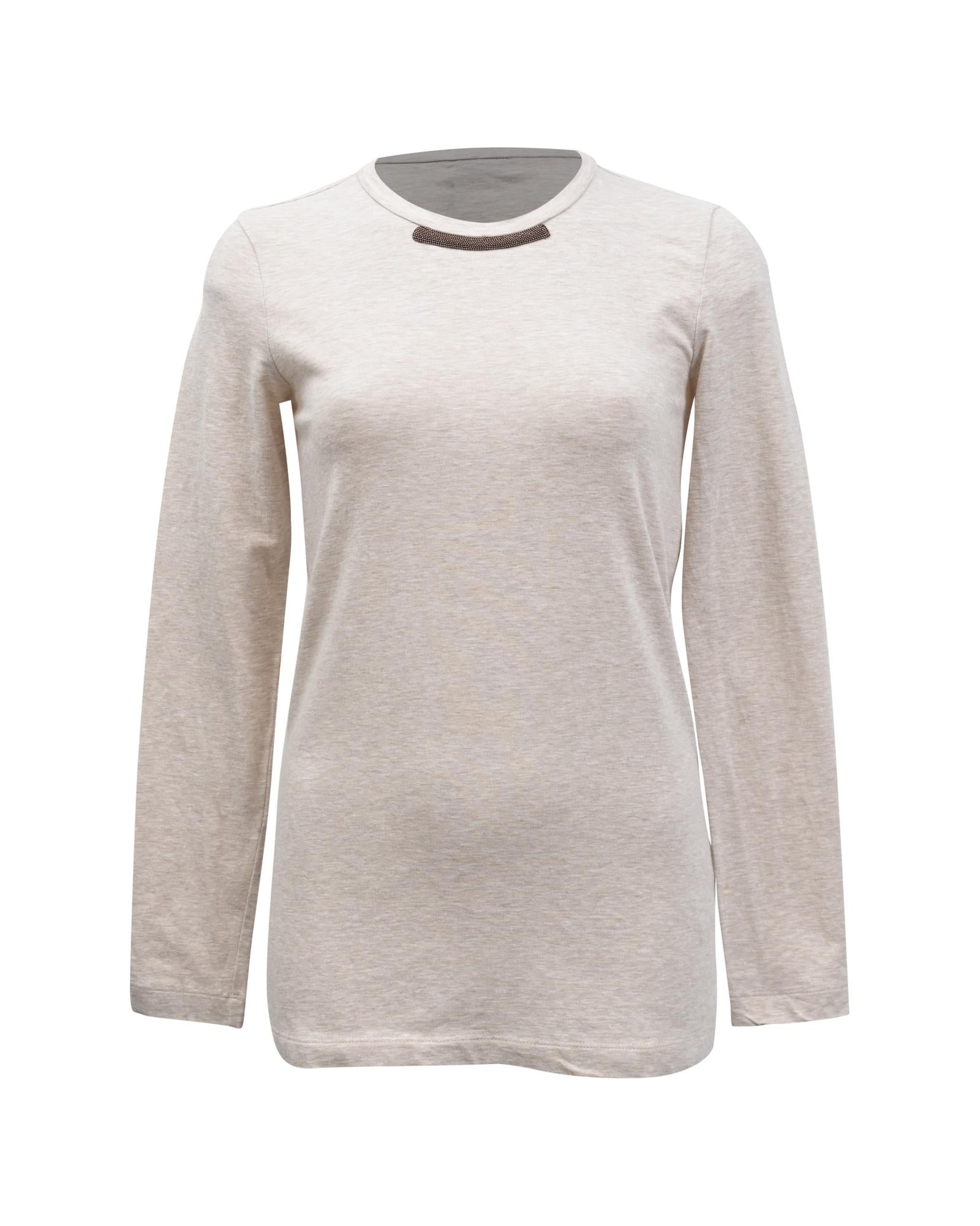 - Brunello Cucinelli Beaded Detail Sweater in Beige Cotton