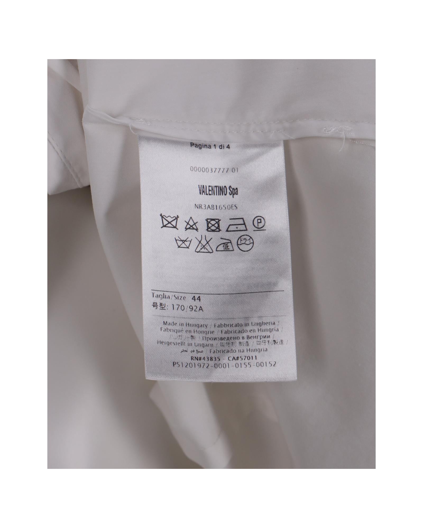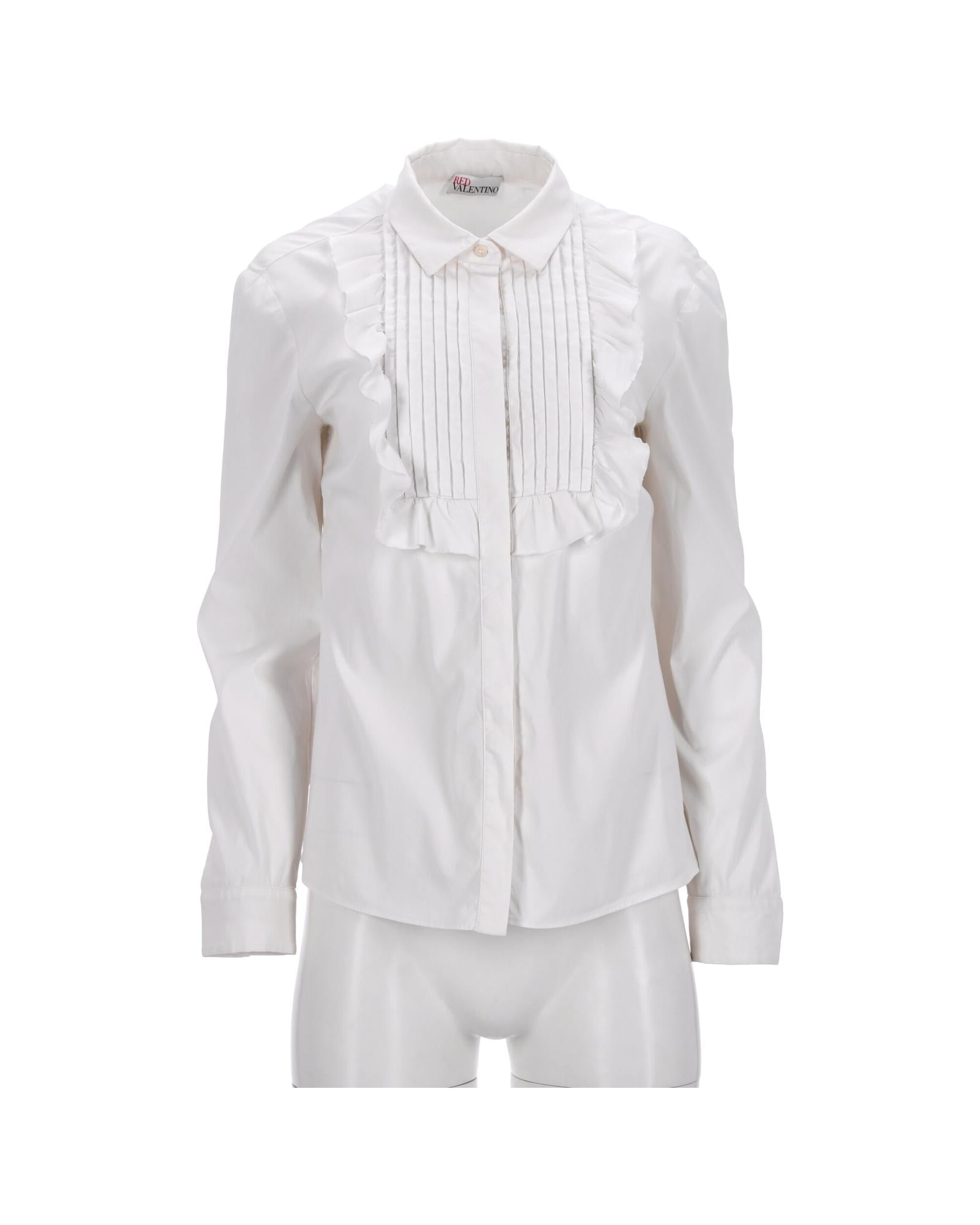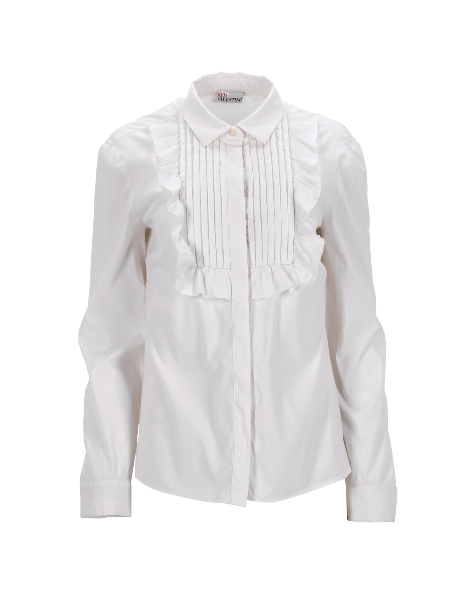 • Red Valentino Long Sleeve Ruffle Tuxedo Shirt in White Cotton