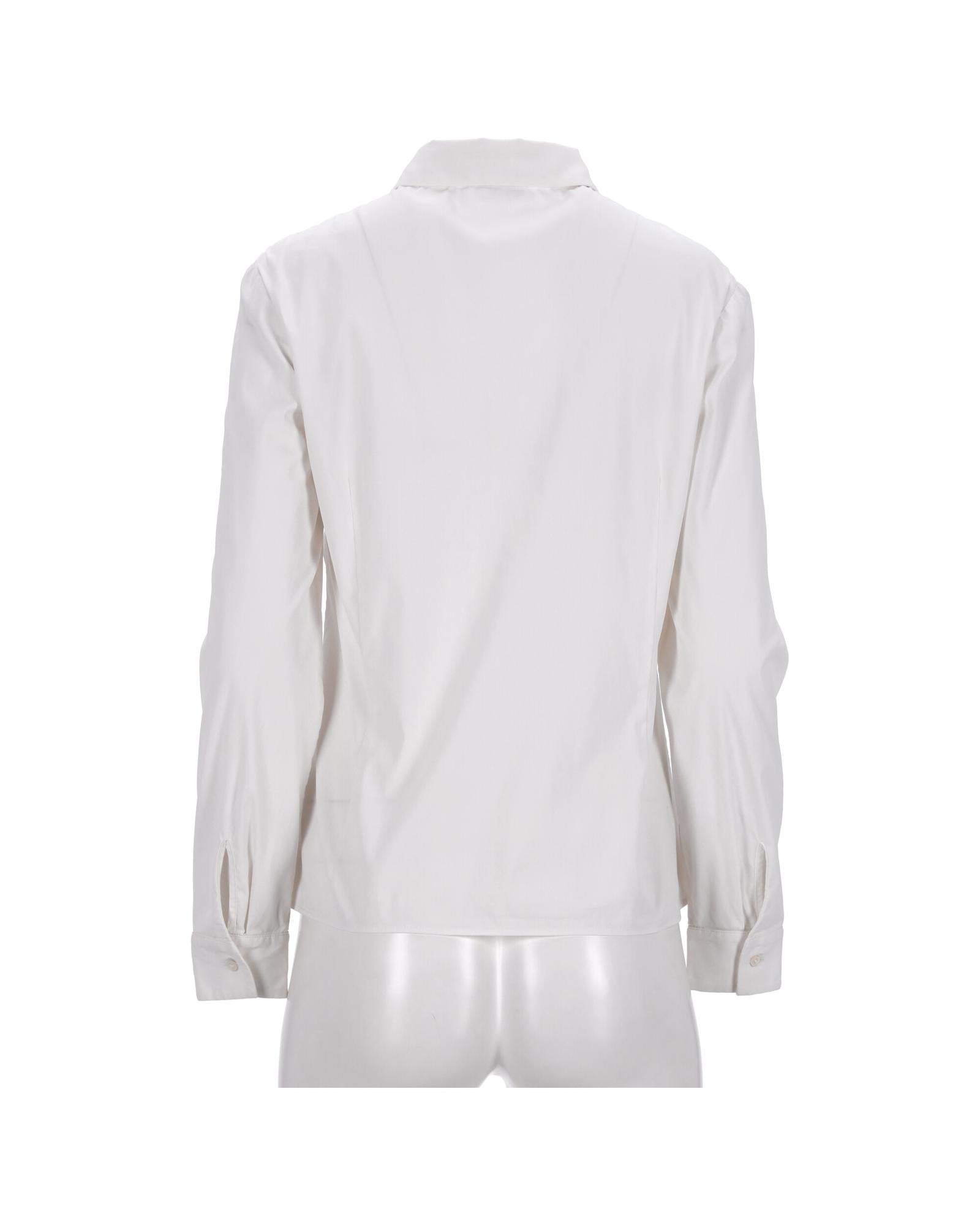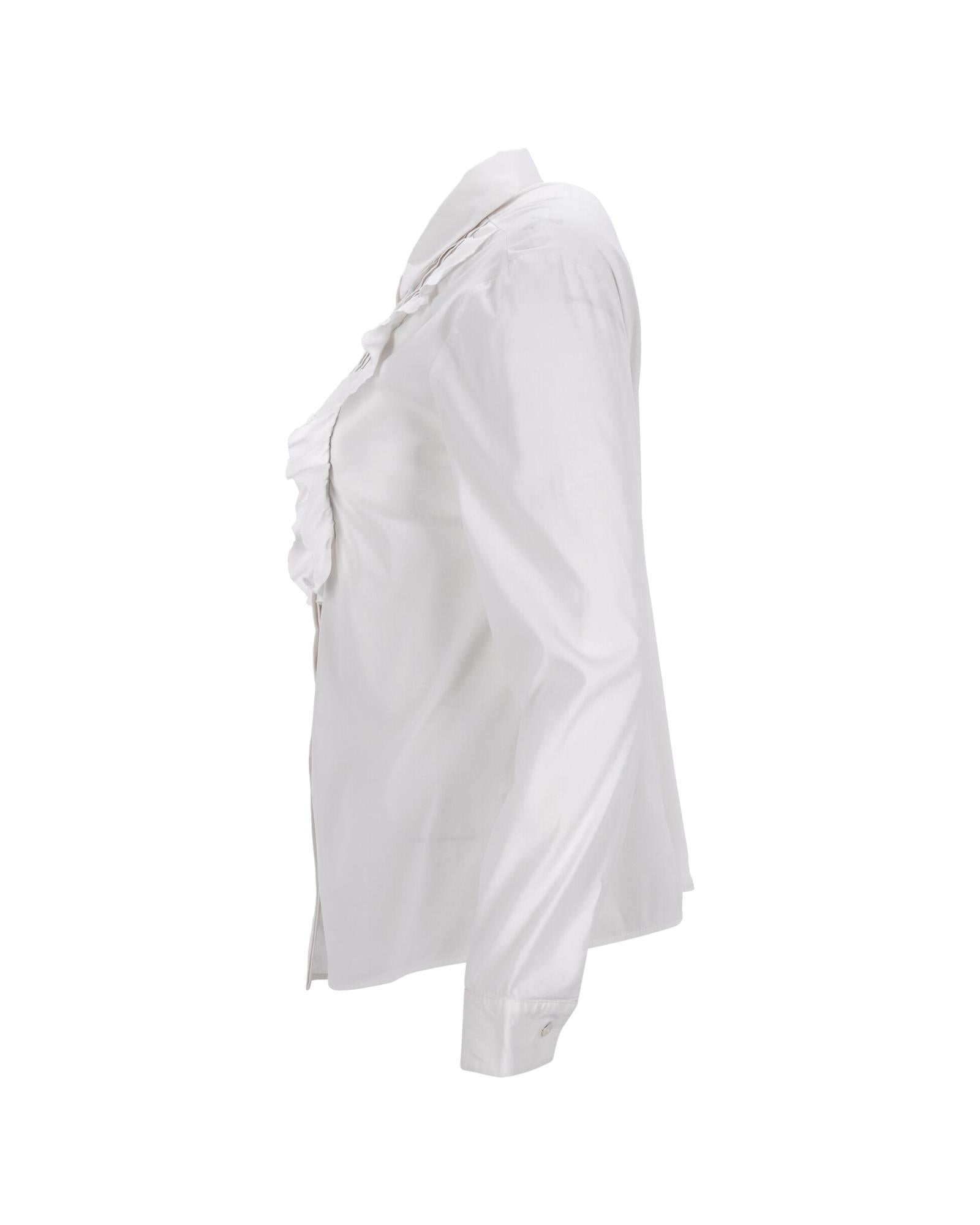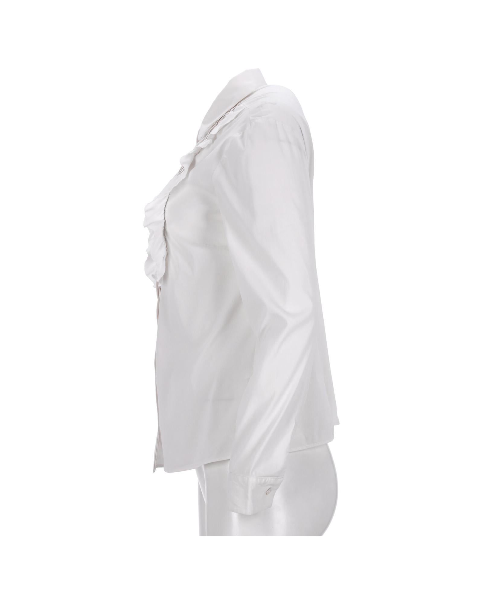 • Red Valentino Long Sleeve Ruffle Tuxedo Shirt in White Cotton