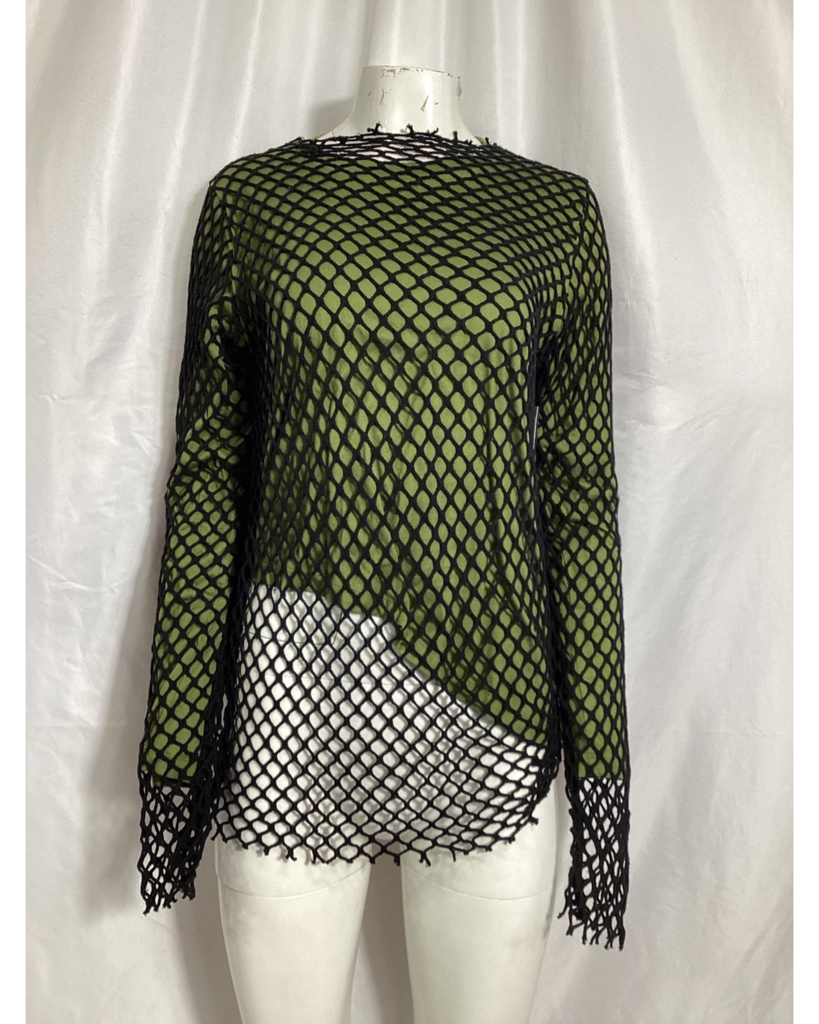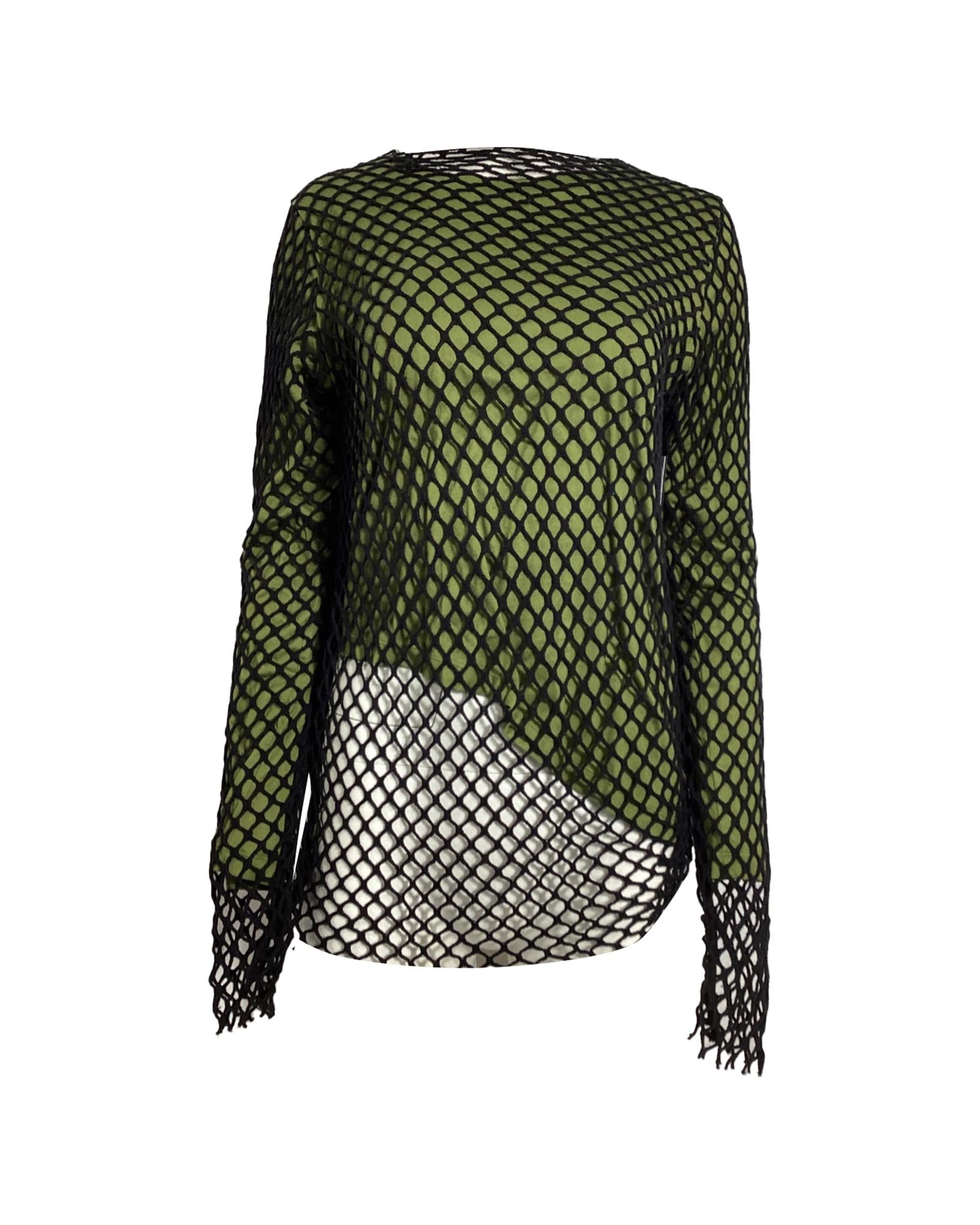 - Marques Almeida Layered Mesh And Jersey Top in Green Organic Cotton