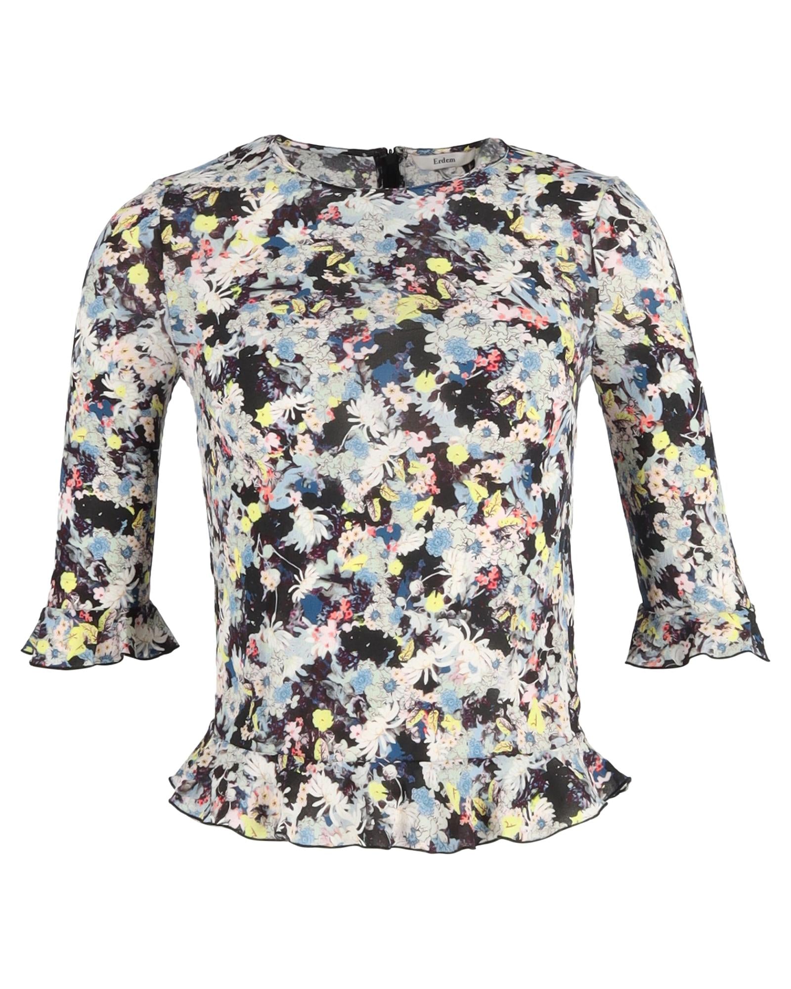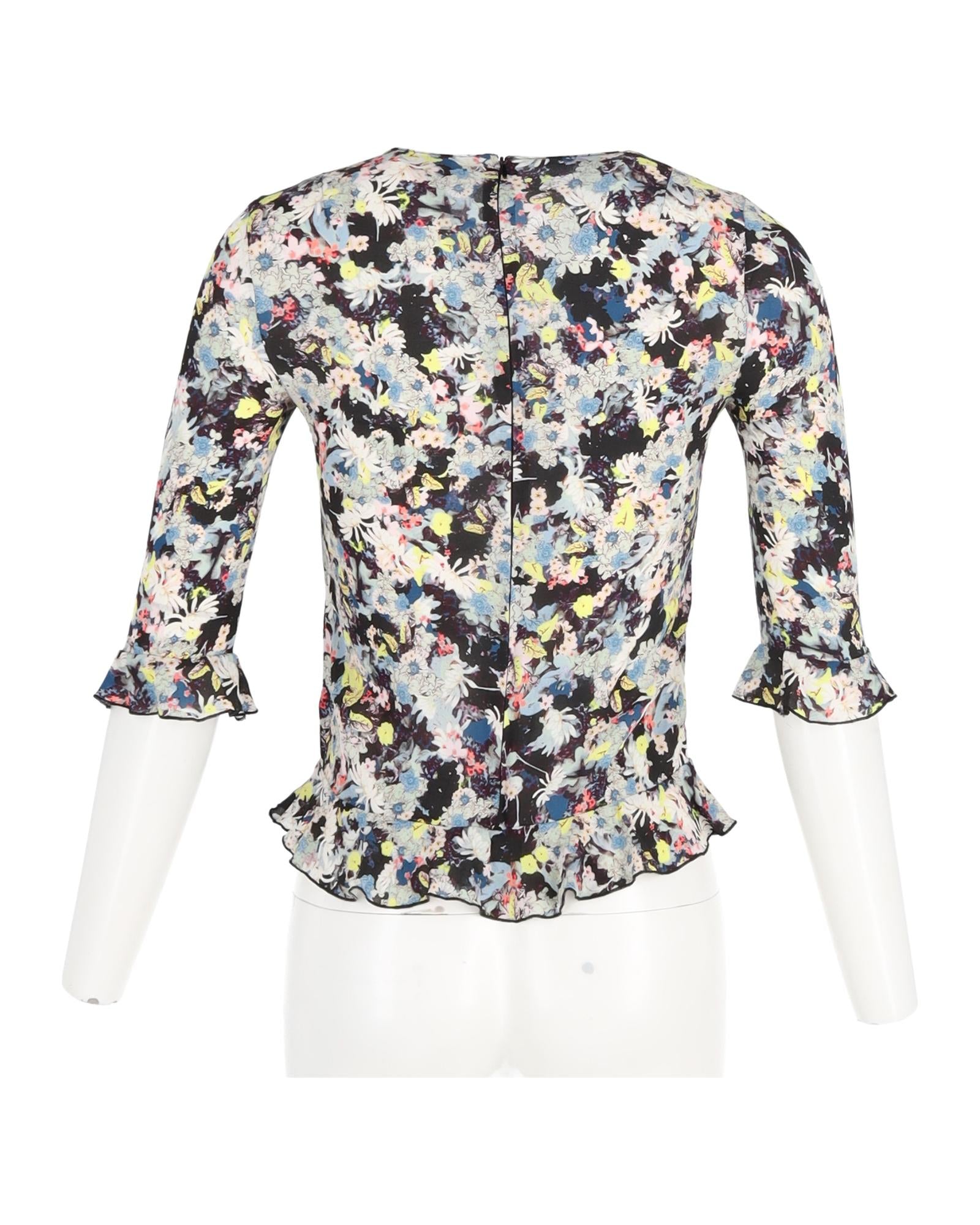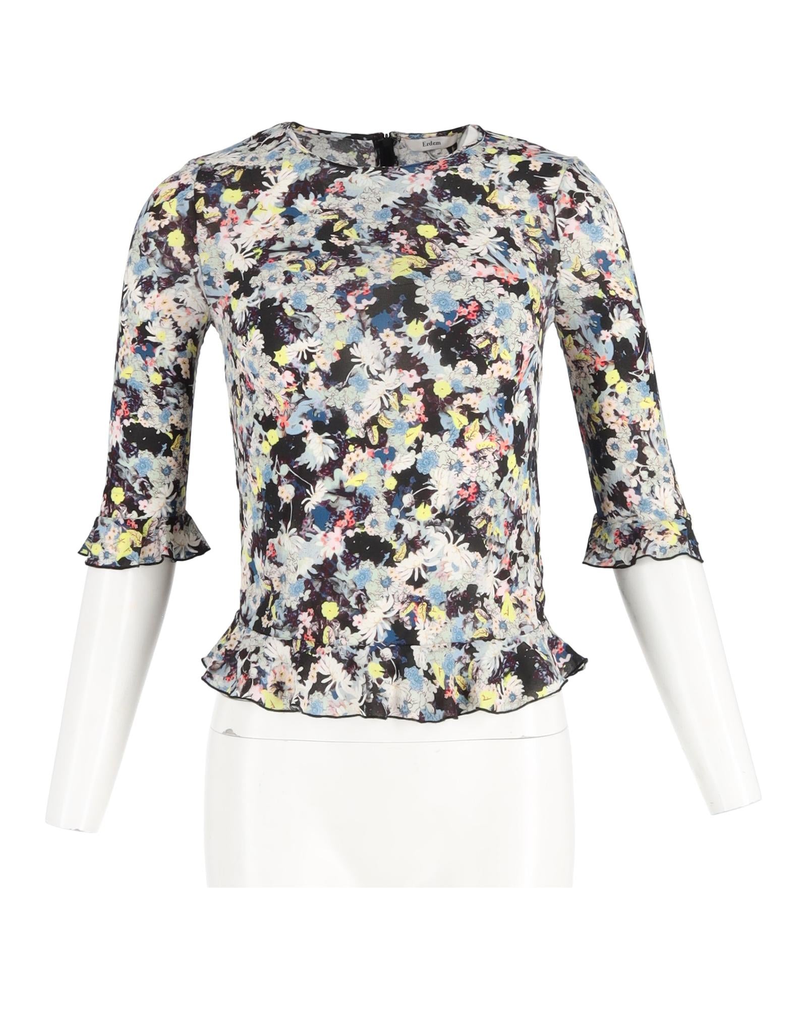 - Erdem Quarter Sleeve Top in Floral Print Silk