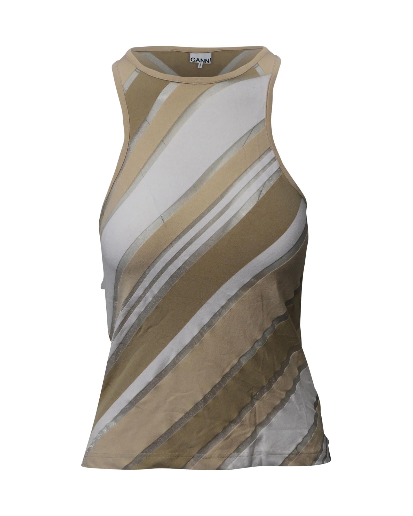 • Modern and stylish Ganni Sleeveless Striped Tank Top in Multicolor Viscose