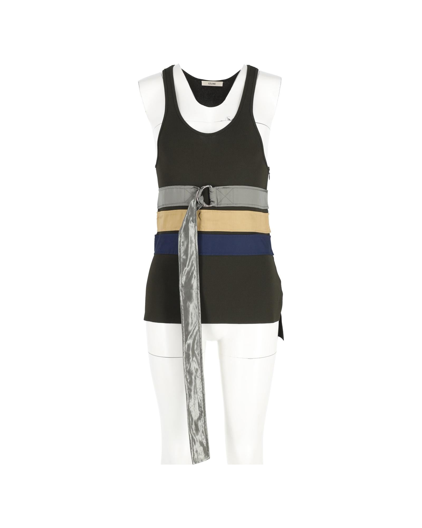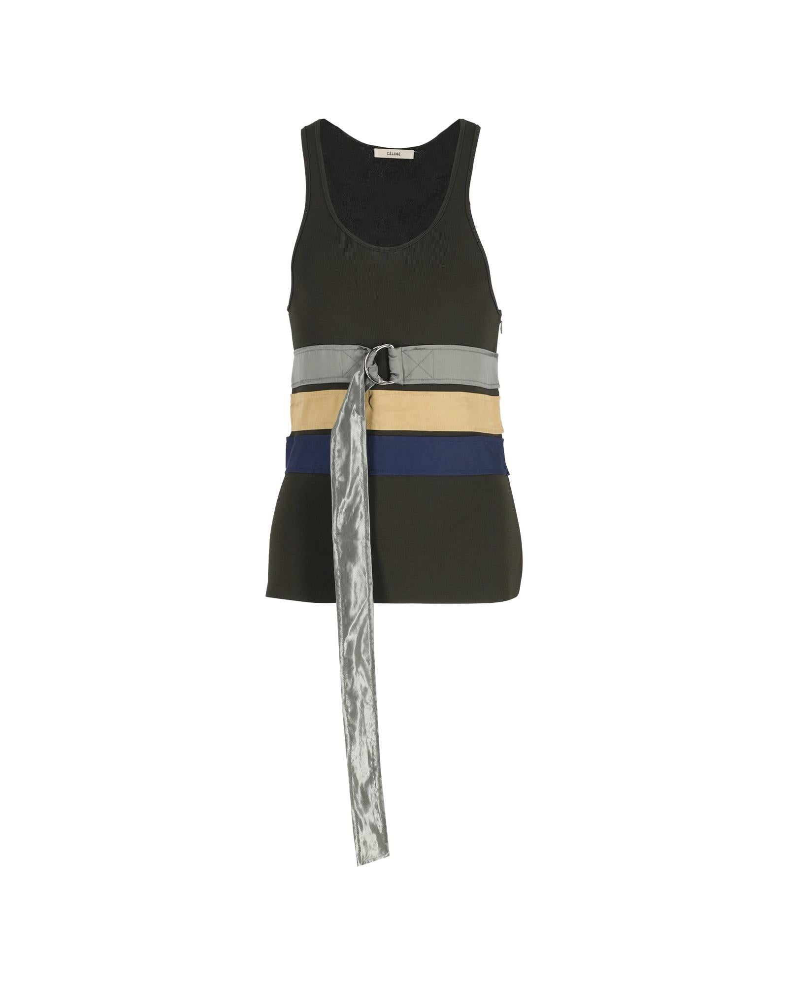 • Product: Celine Knitted Belted Tank Top in Olive Viscose