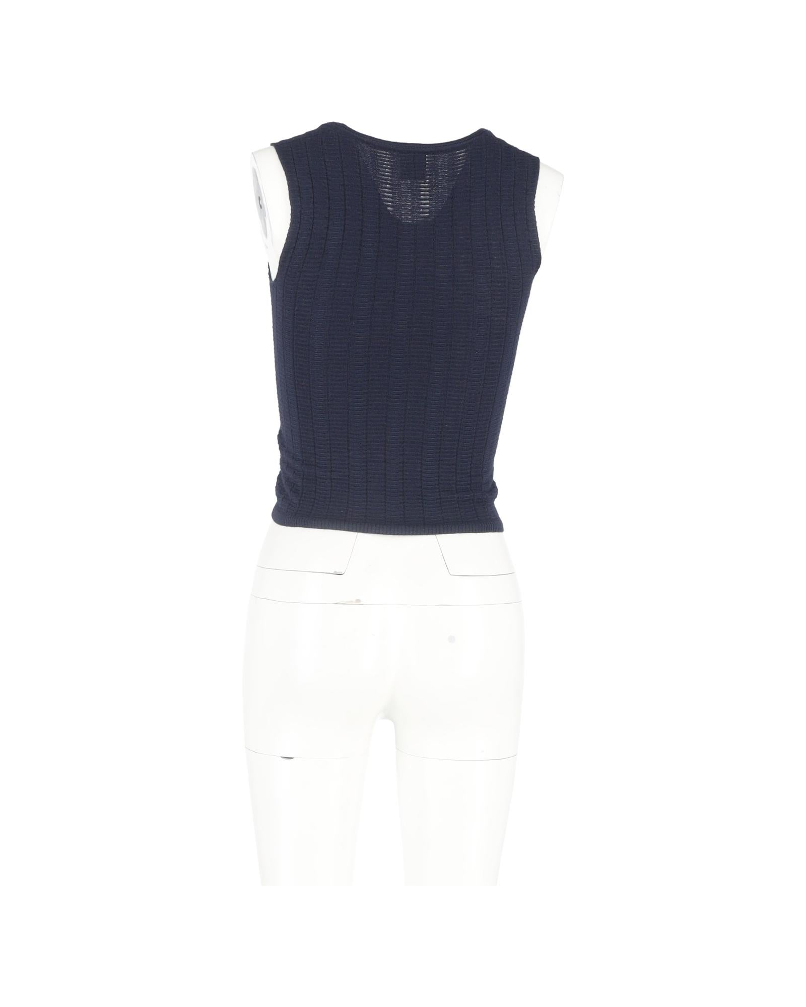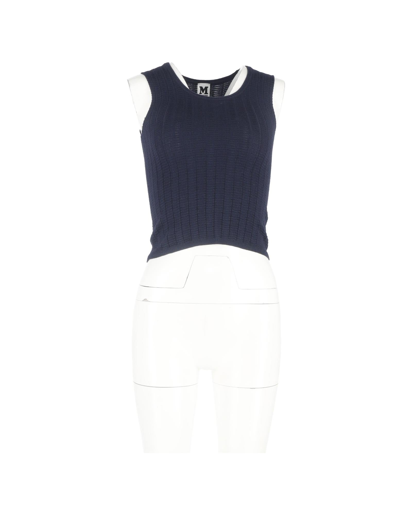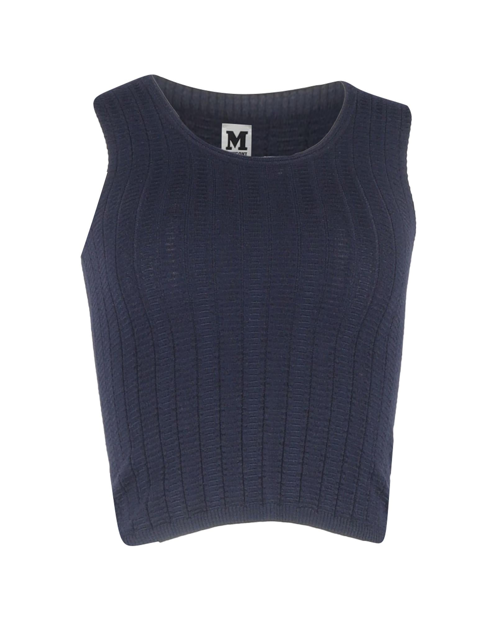 - M Missoni Knitted Tank Top in Navy Blue Cotton