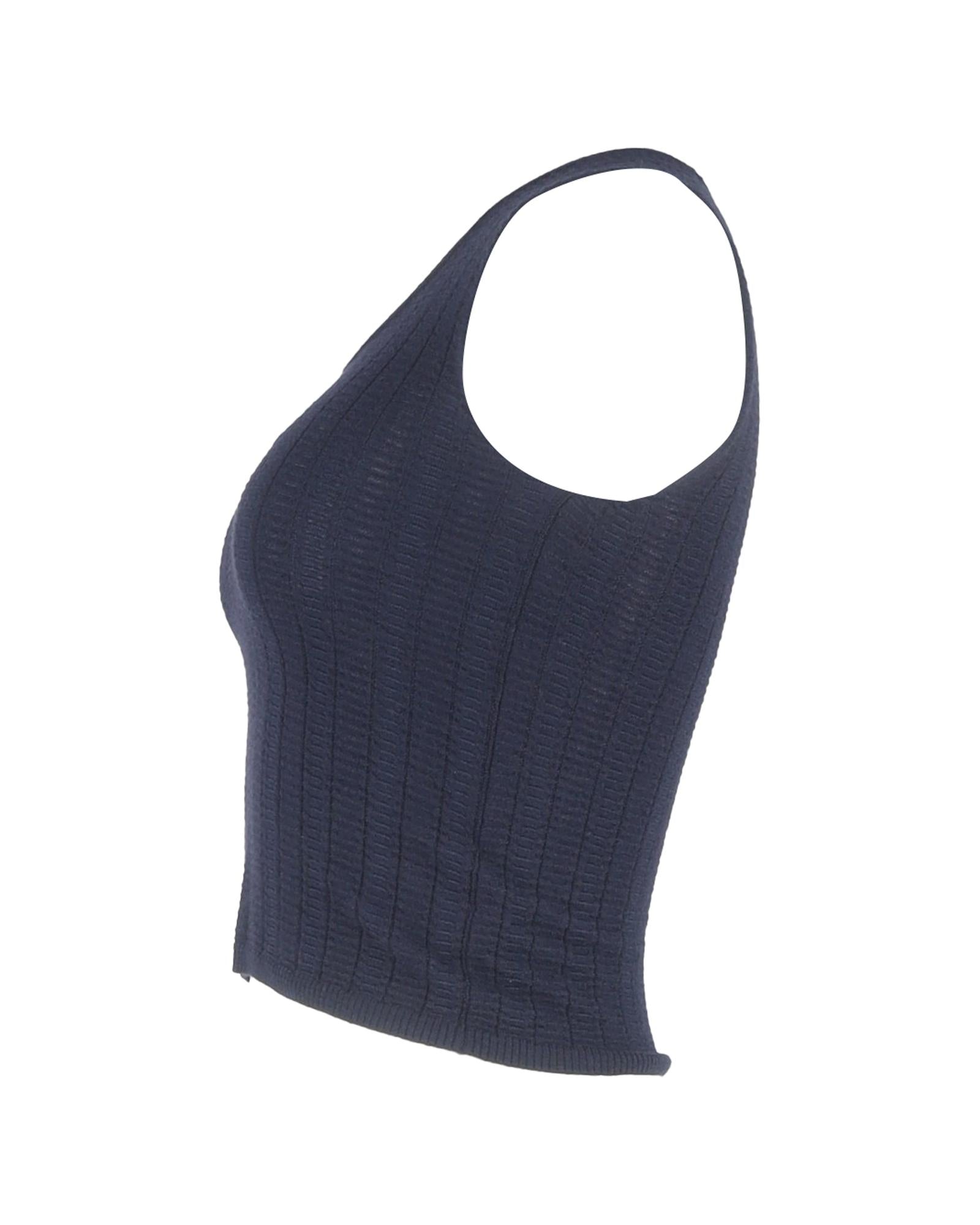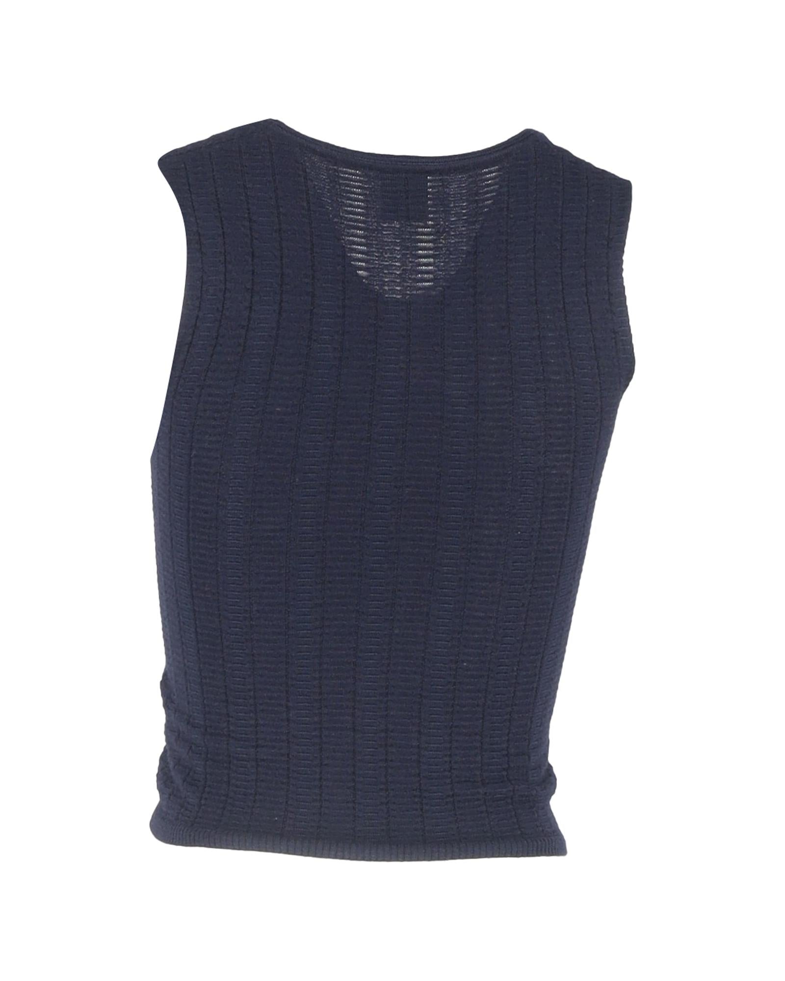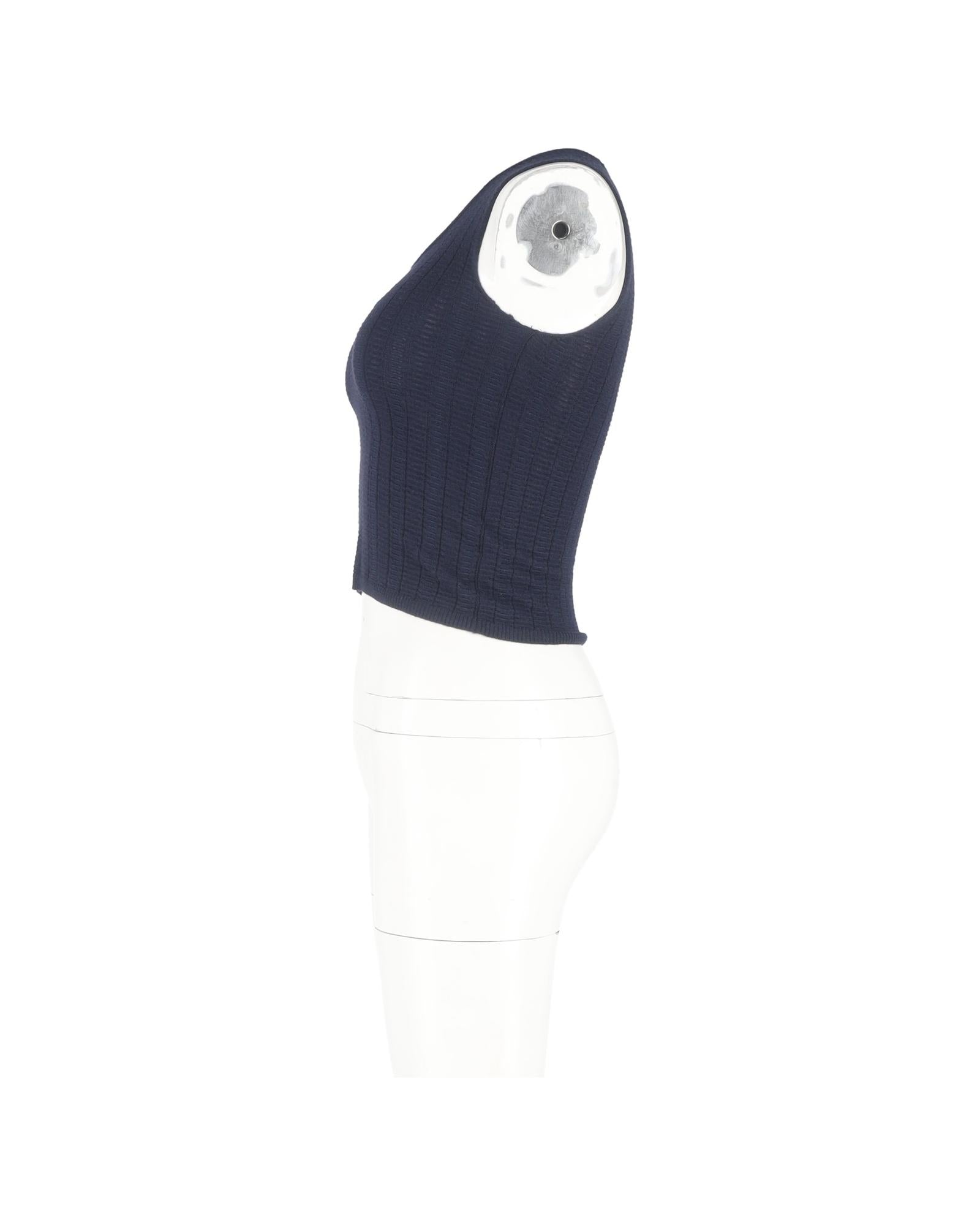 - M Missoni Knitted Tank Top in Navy Blue Cotton