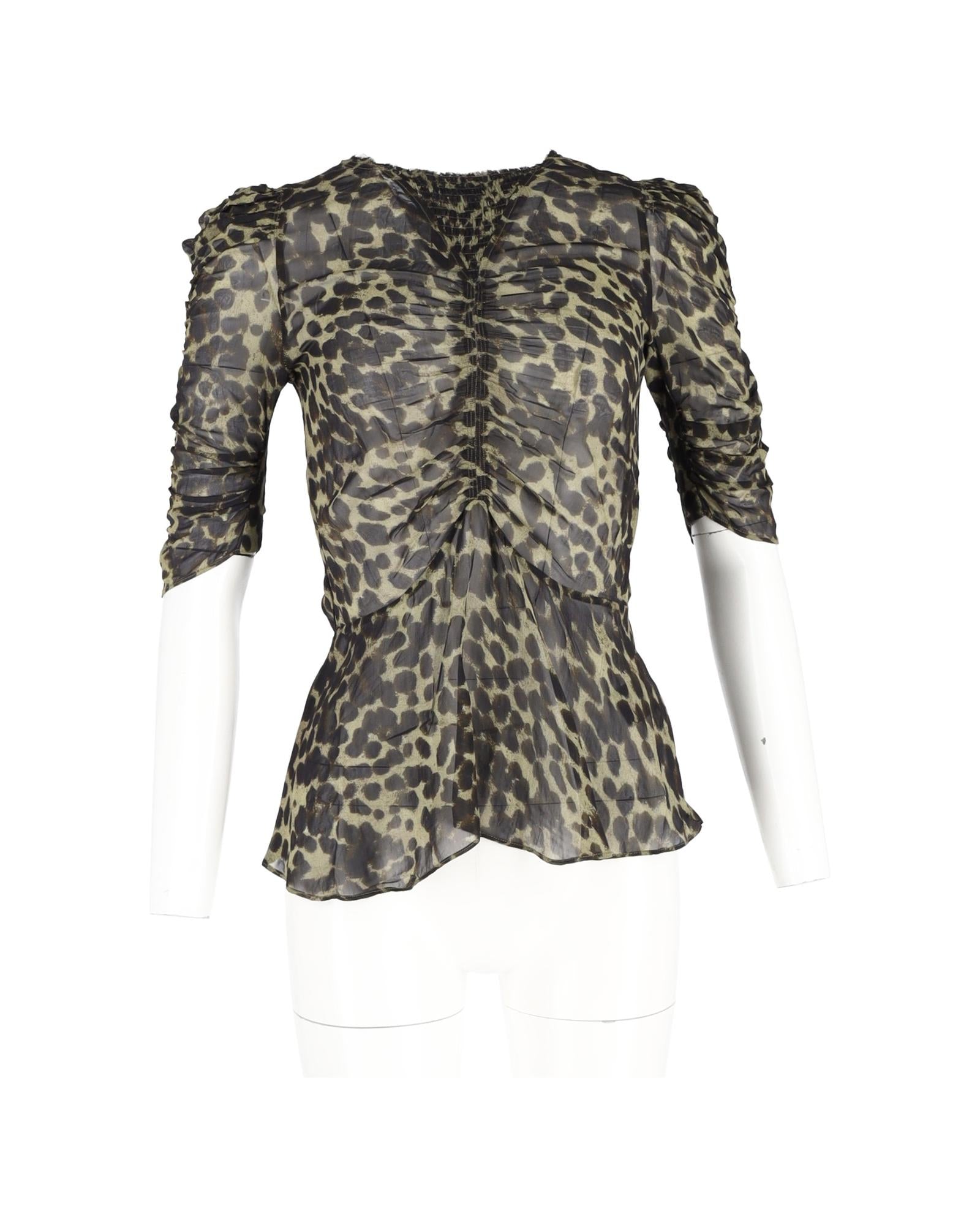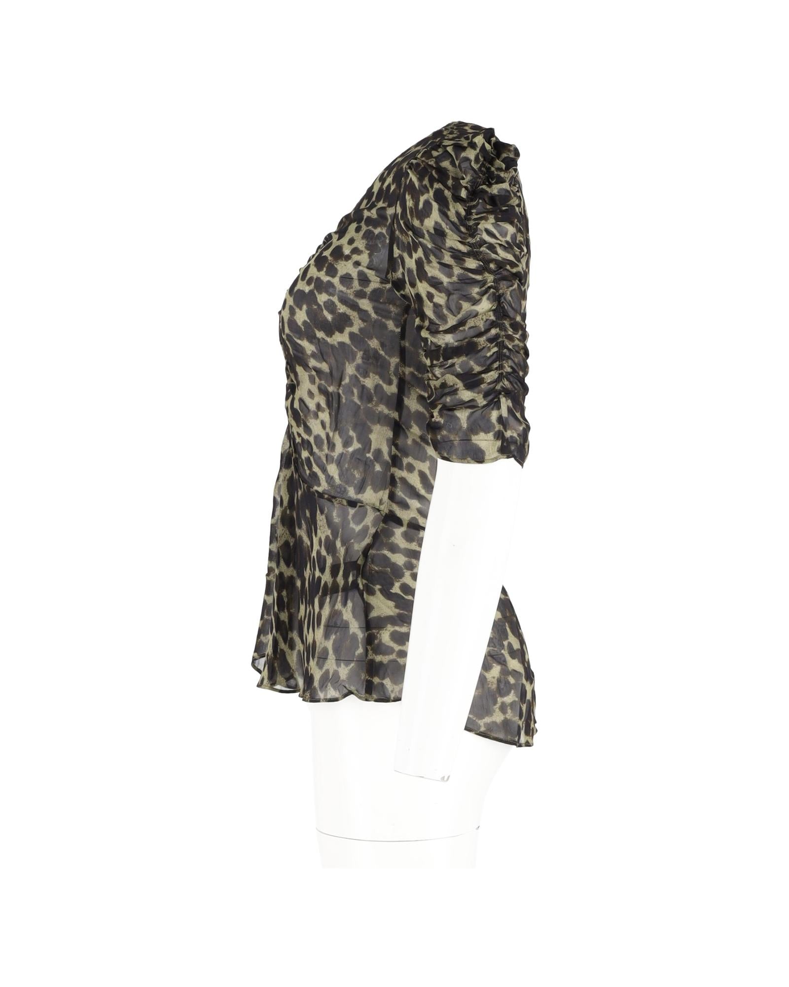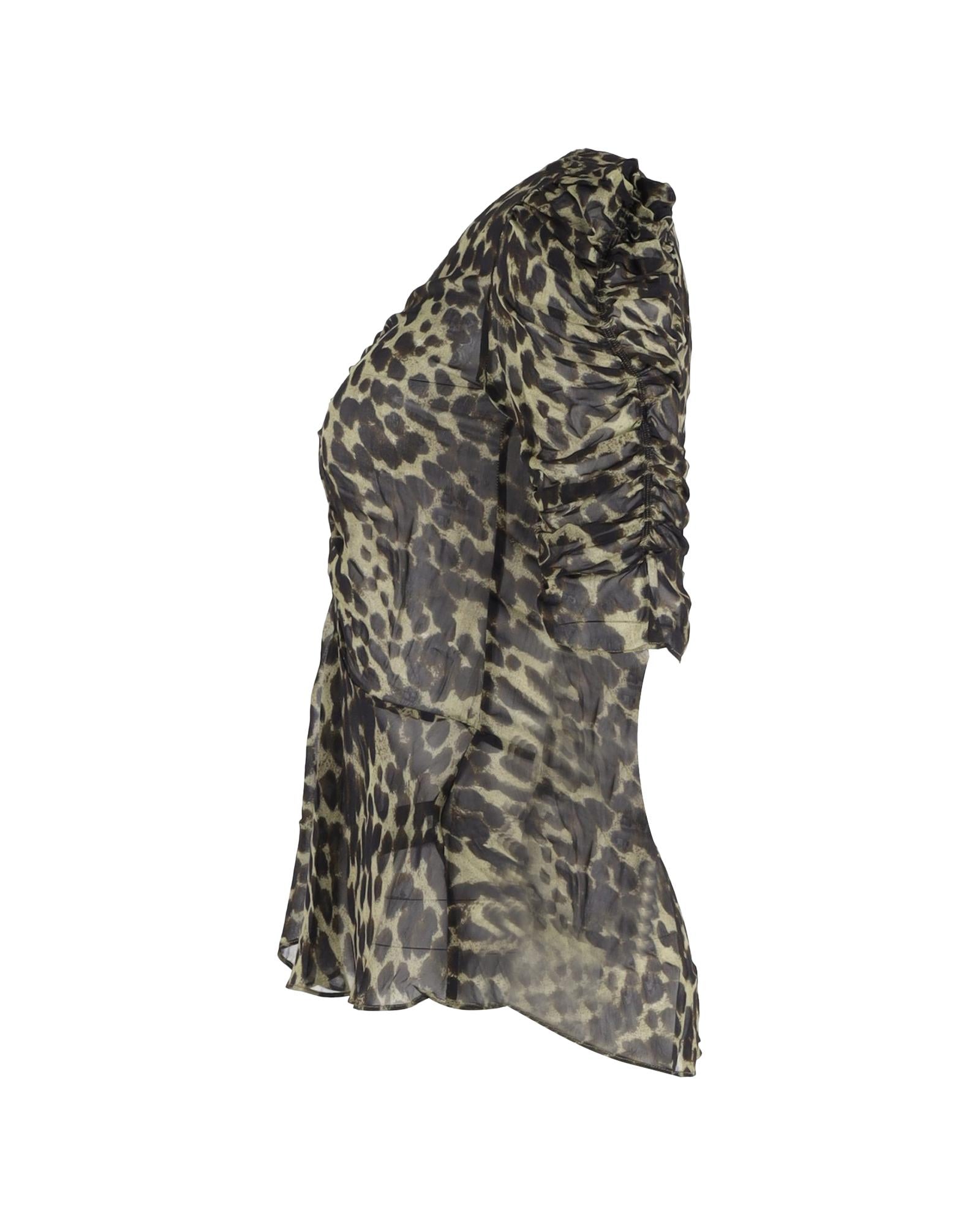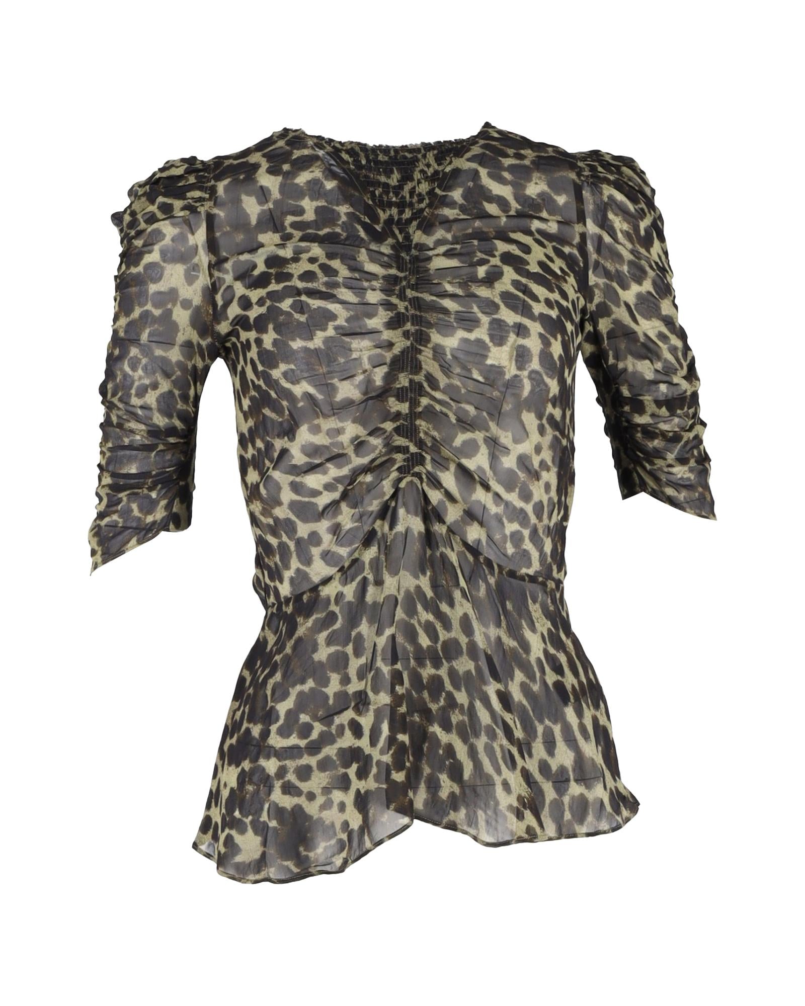 - Isabel Marant Caja Ruched Blouse in Animal Print Viscose