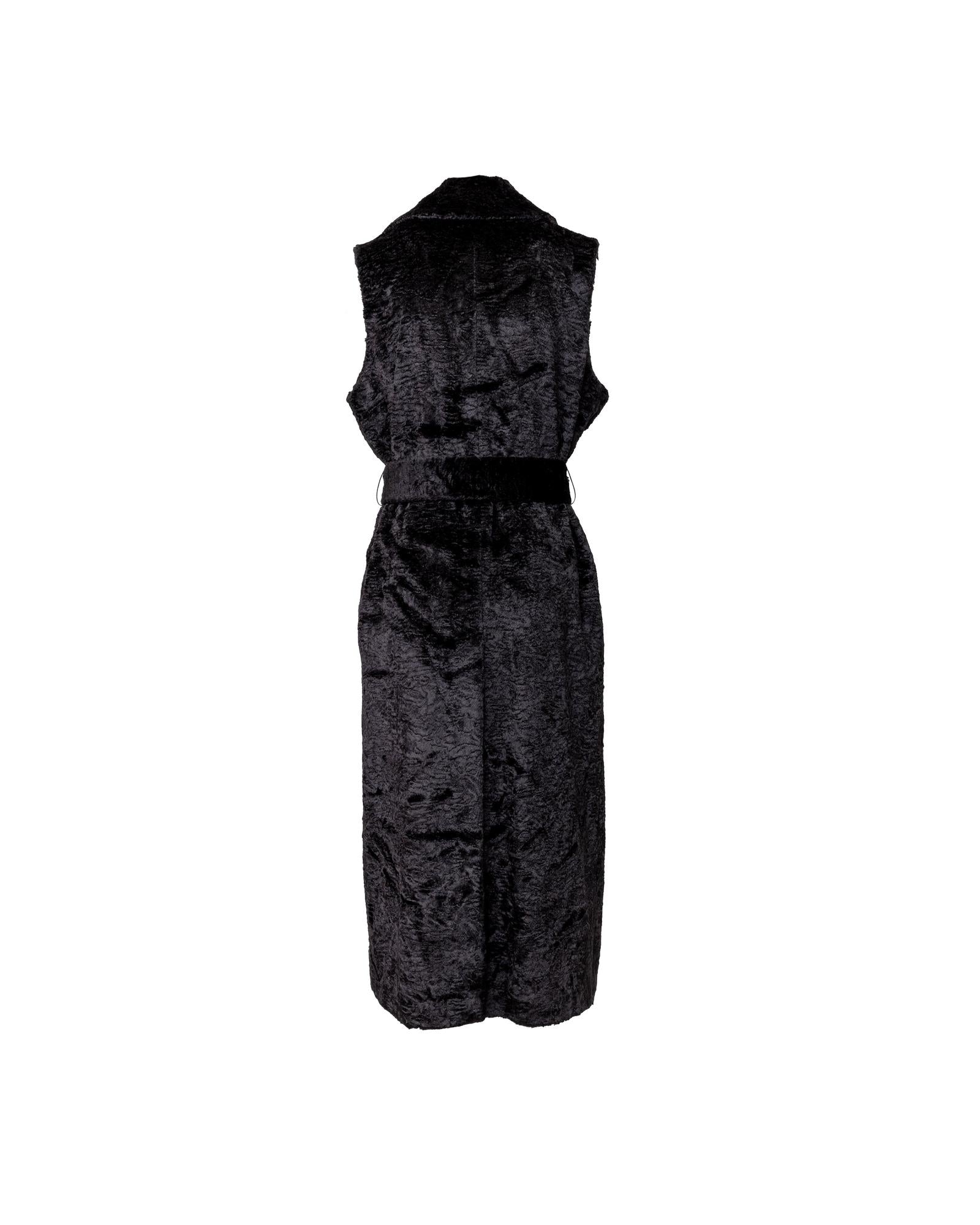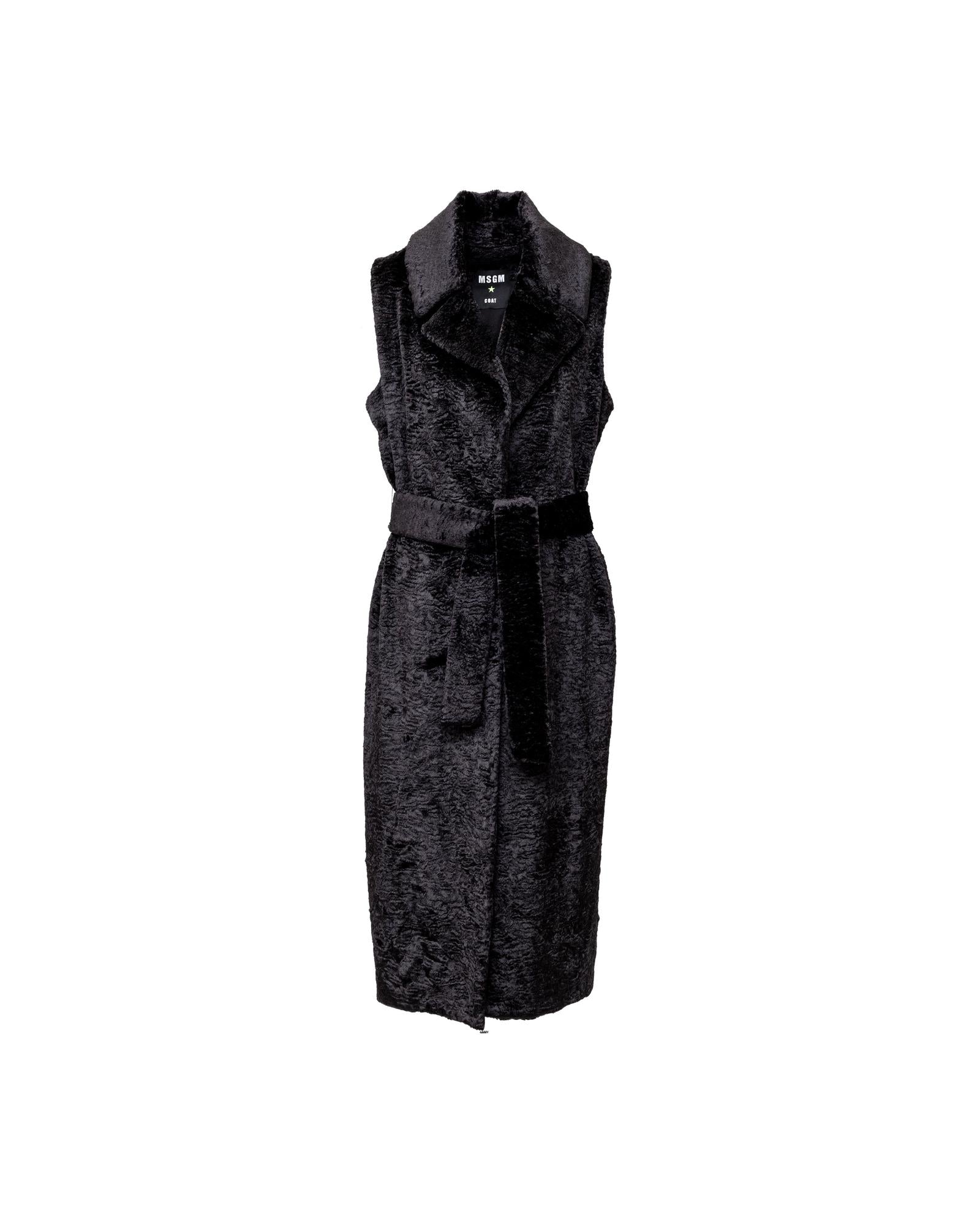 Sleeveless Teddy Fabric Coat with Belt