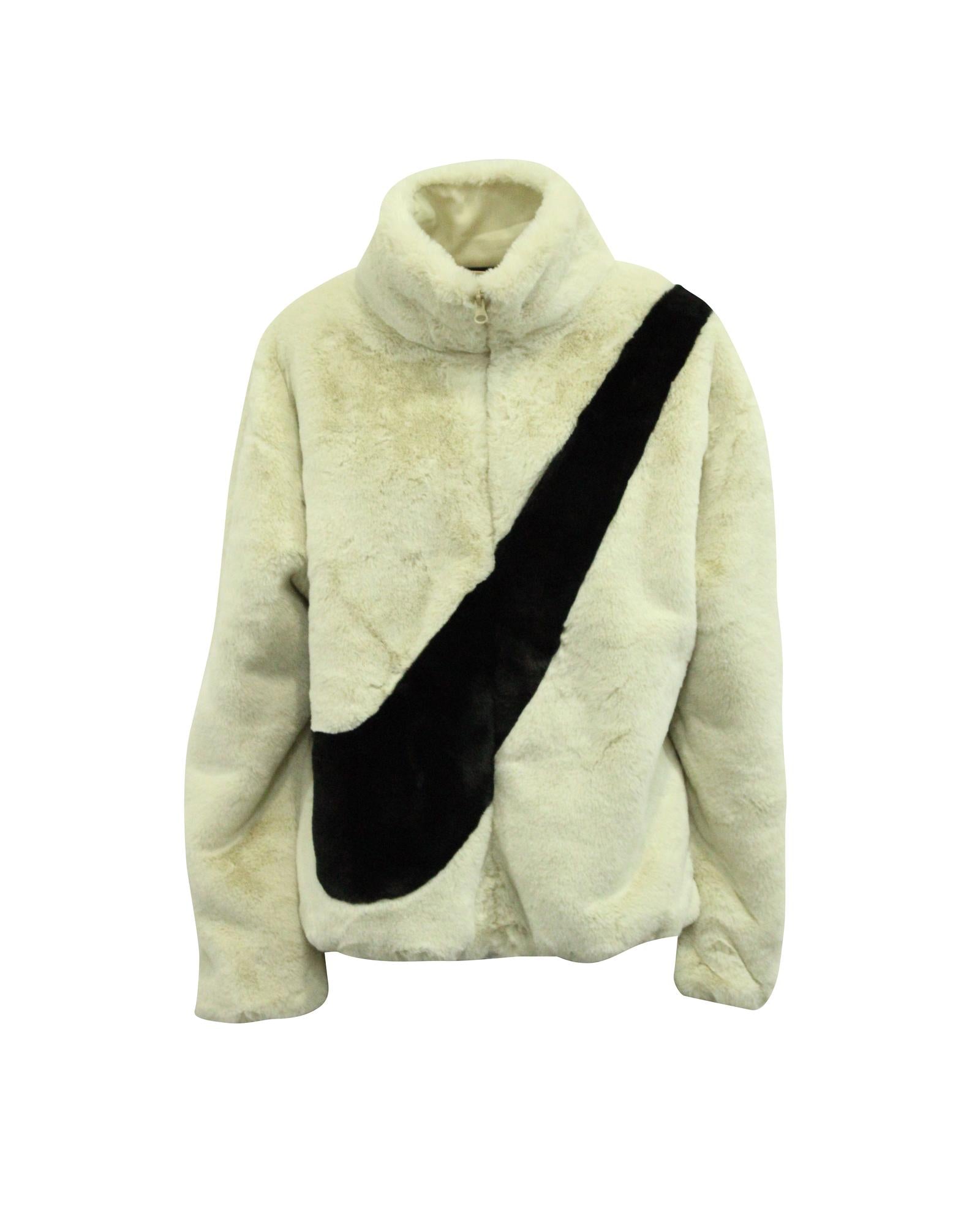 • Nike Big Swoosh Jacket in Cream Faux Fur