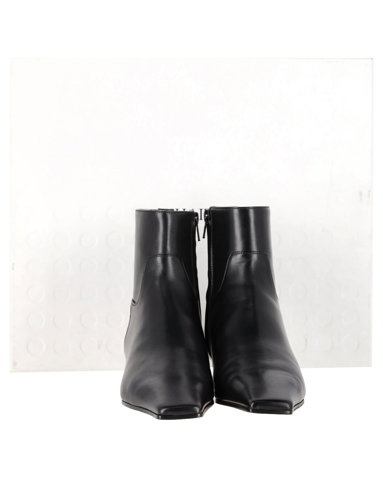 Contemporary Western-Inspired Ankle Boots in Smooth Leather