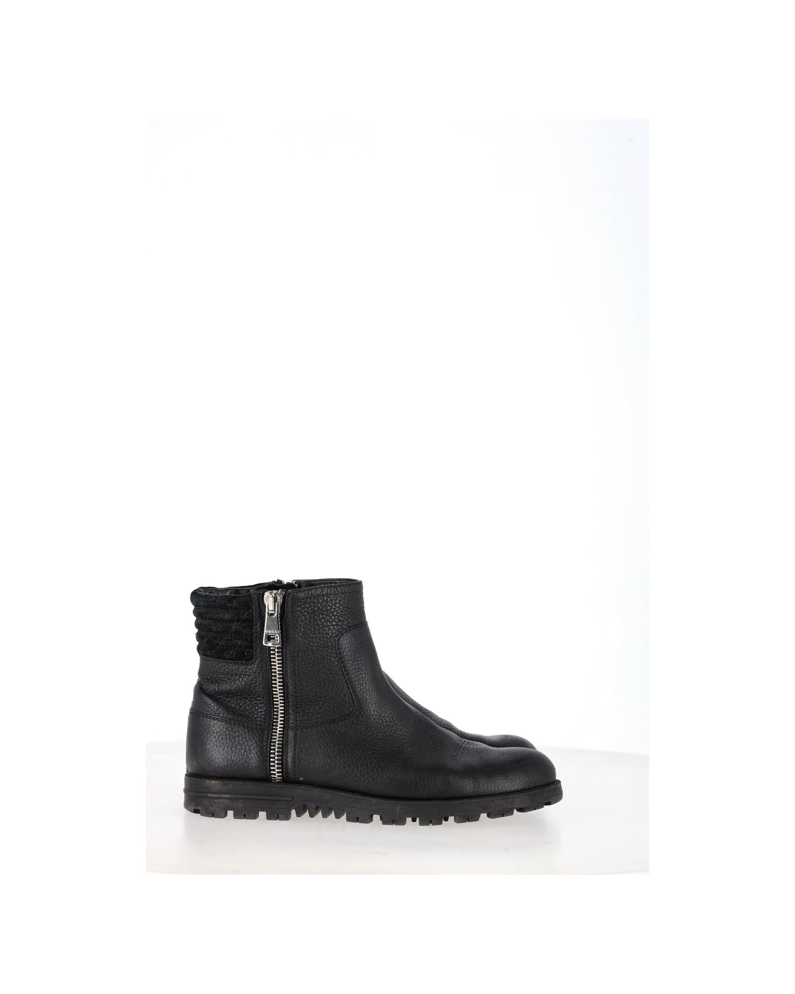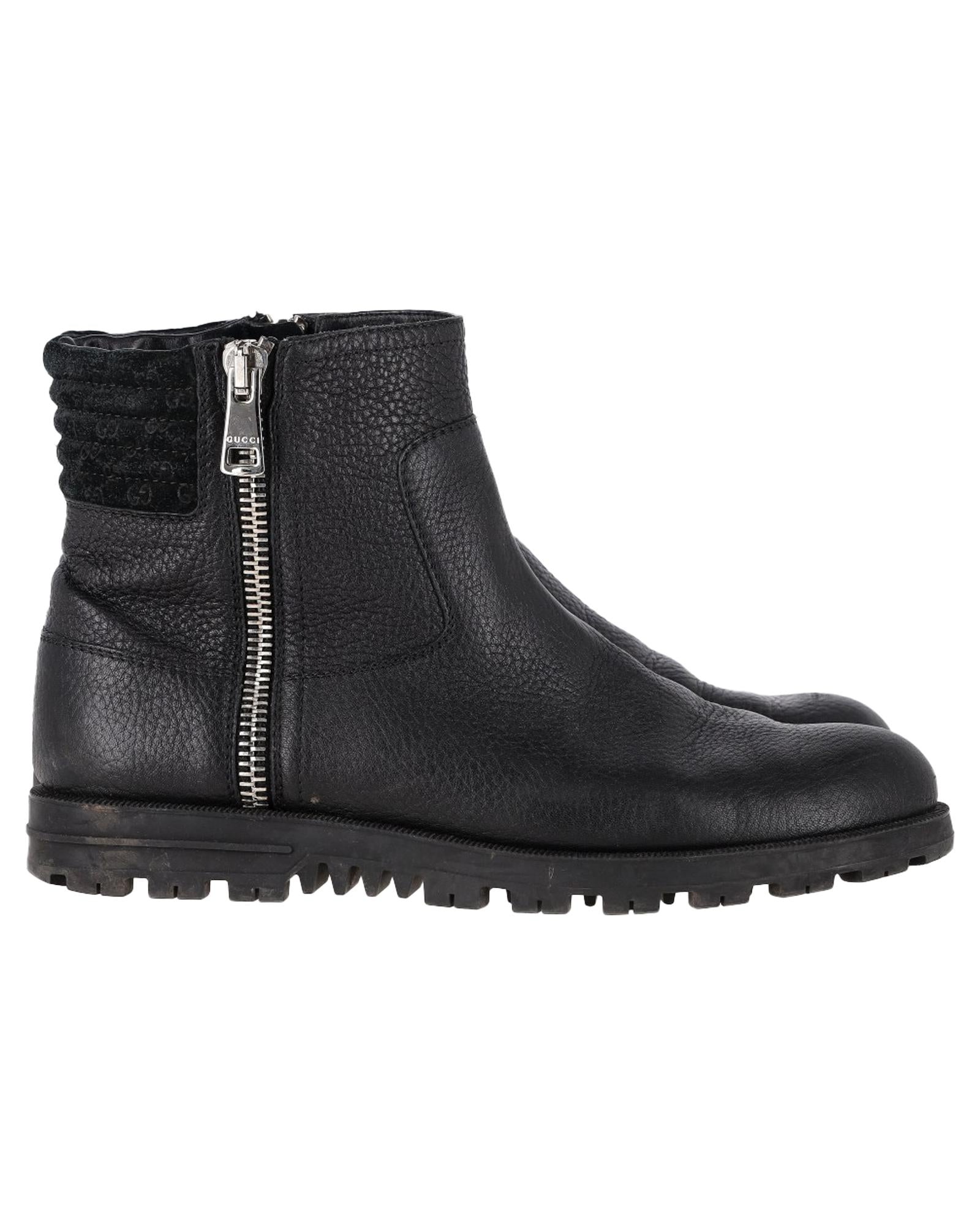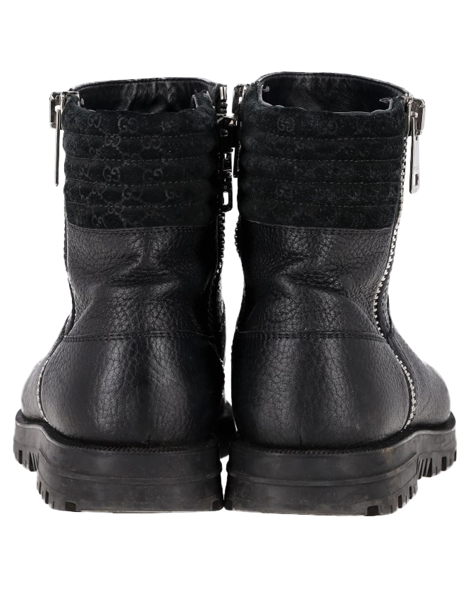 • Gucci Micro GG Zipped Ankle Boots in Black Leather